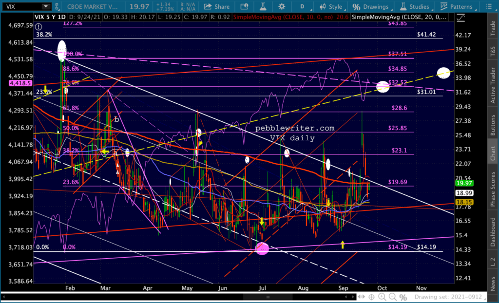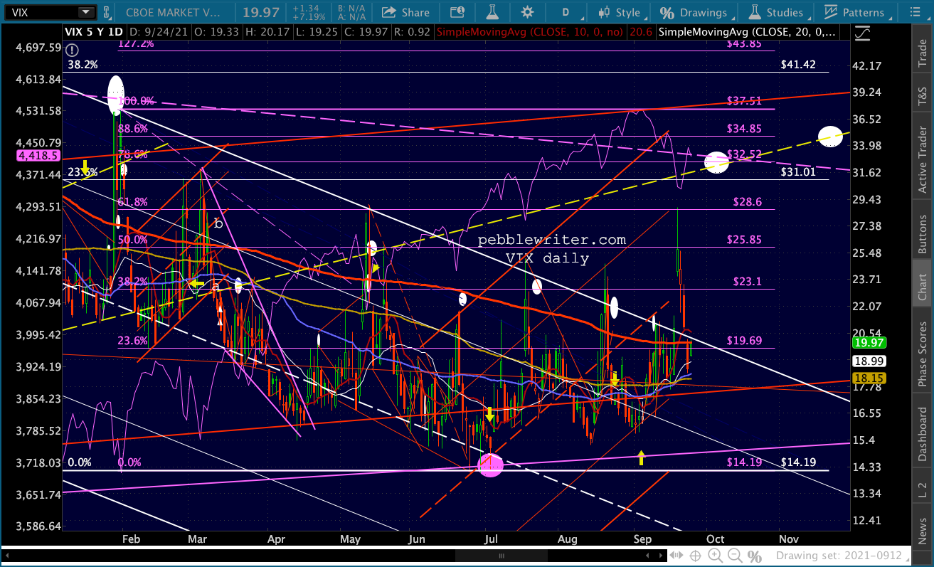 The big dog is still VIX, which is back inside its falling white channel and back below its SMA200;