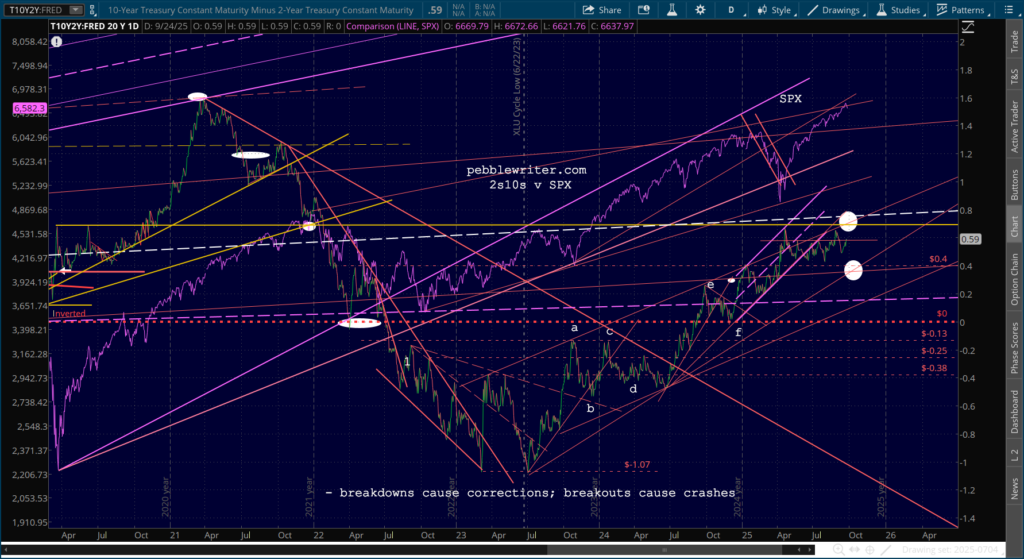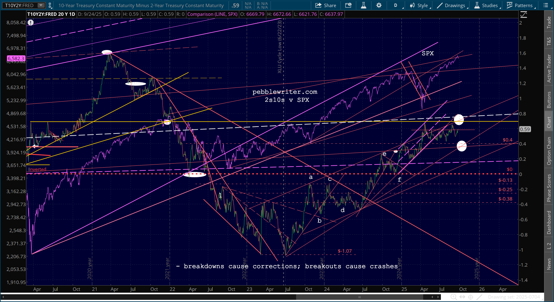 Remember, breakdowns cause corrections. Breakouts cause crashes. At this point, us technical types are wondering whether TPTB will be able to prevent one.