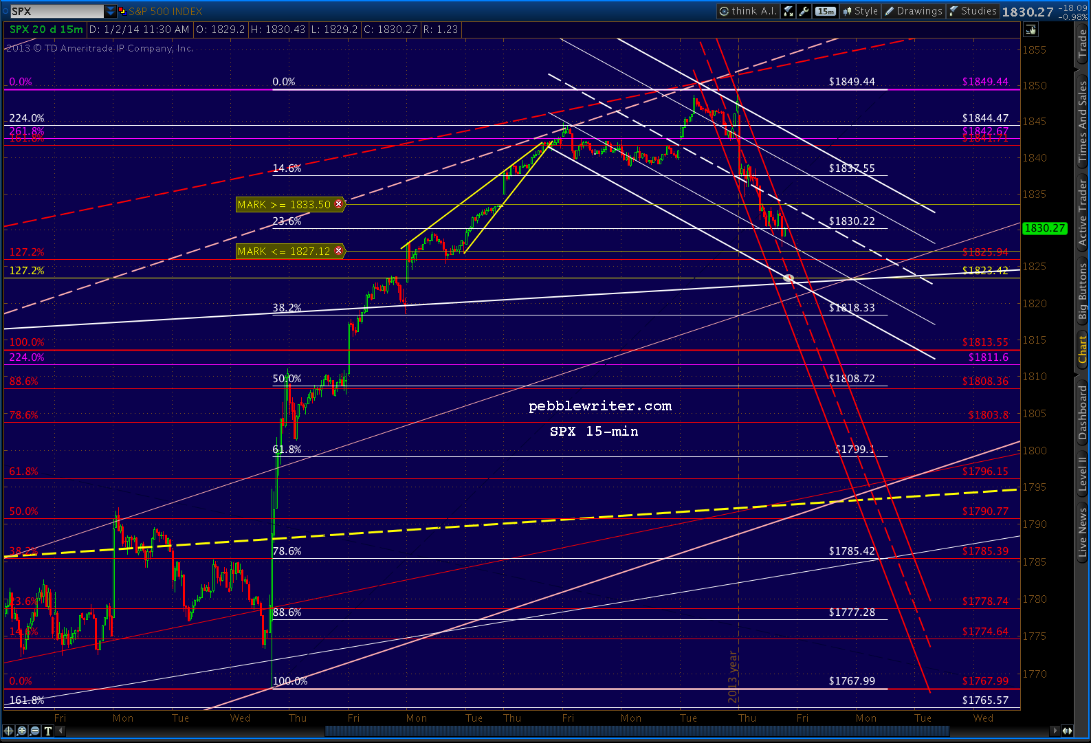 I like SPX’s original target of 1823, which could be construed by the bulls as a backtest of a broken Fib line.
