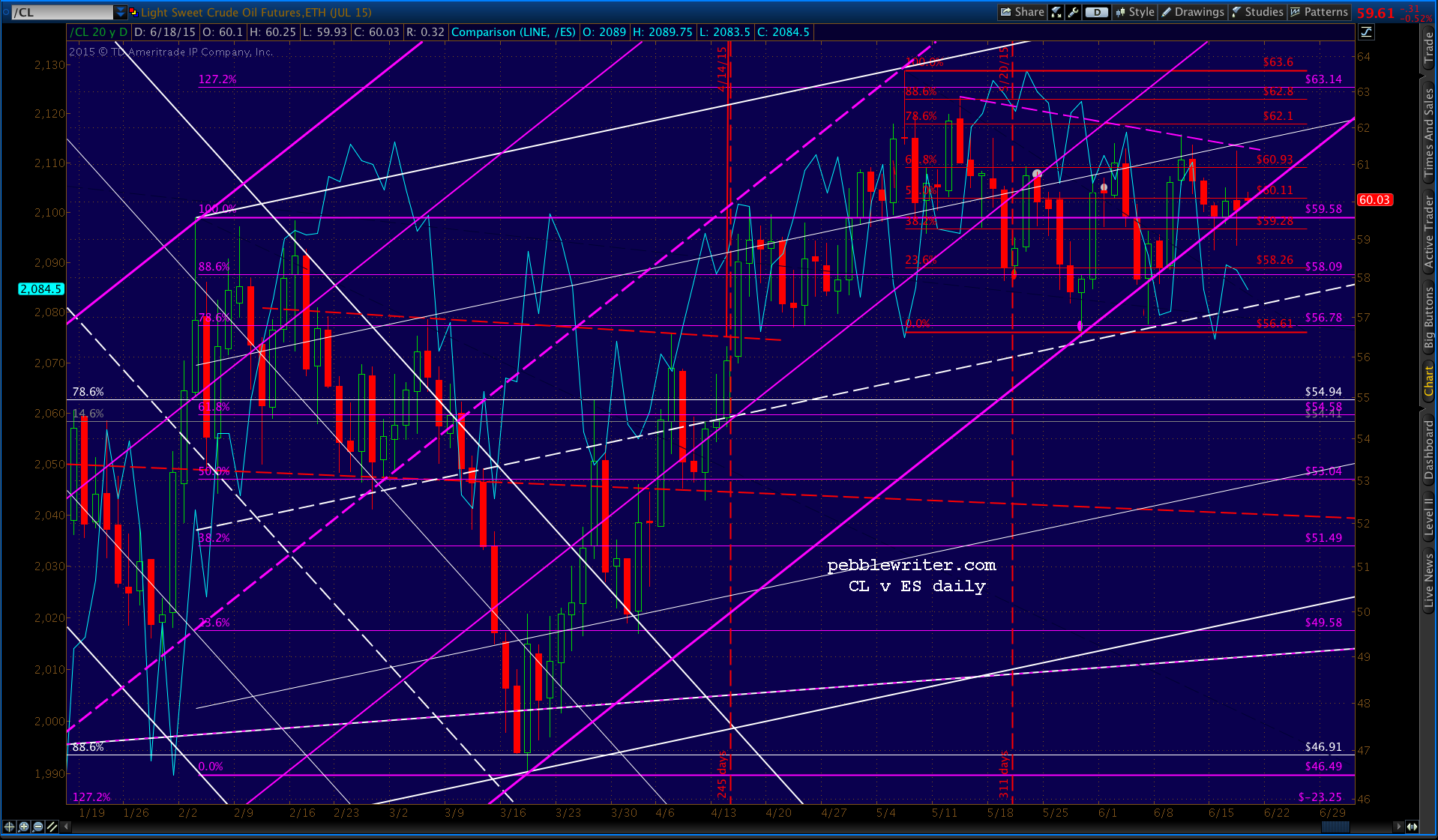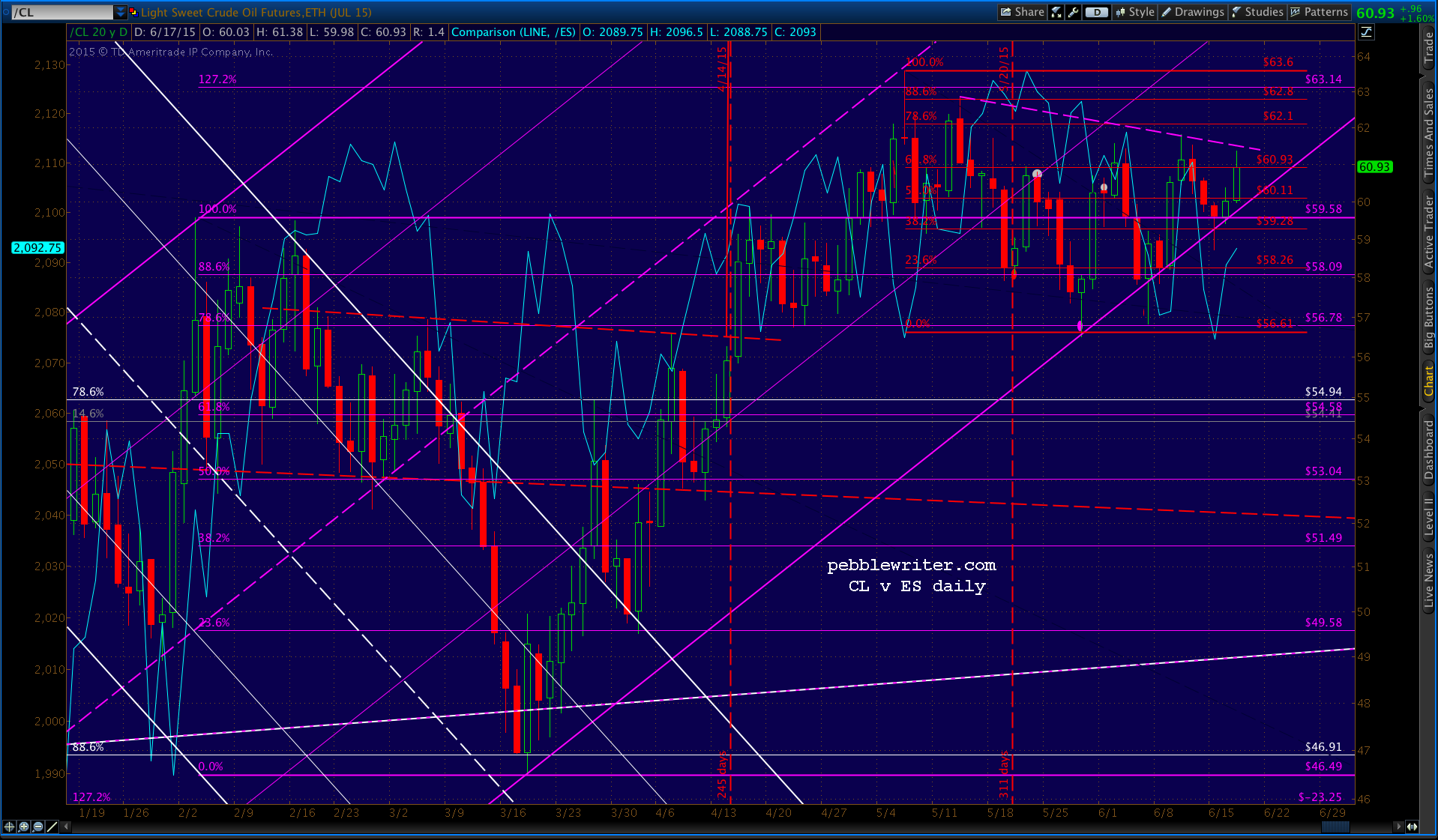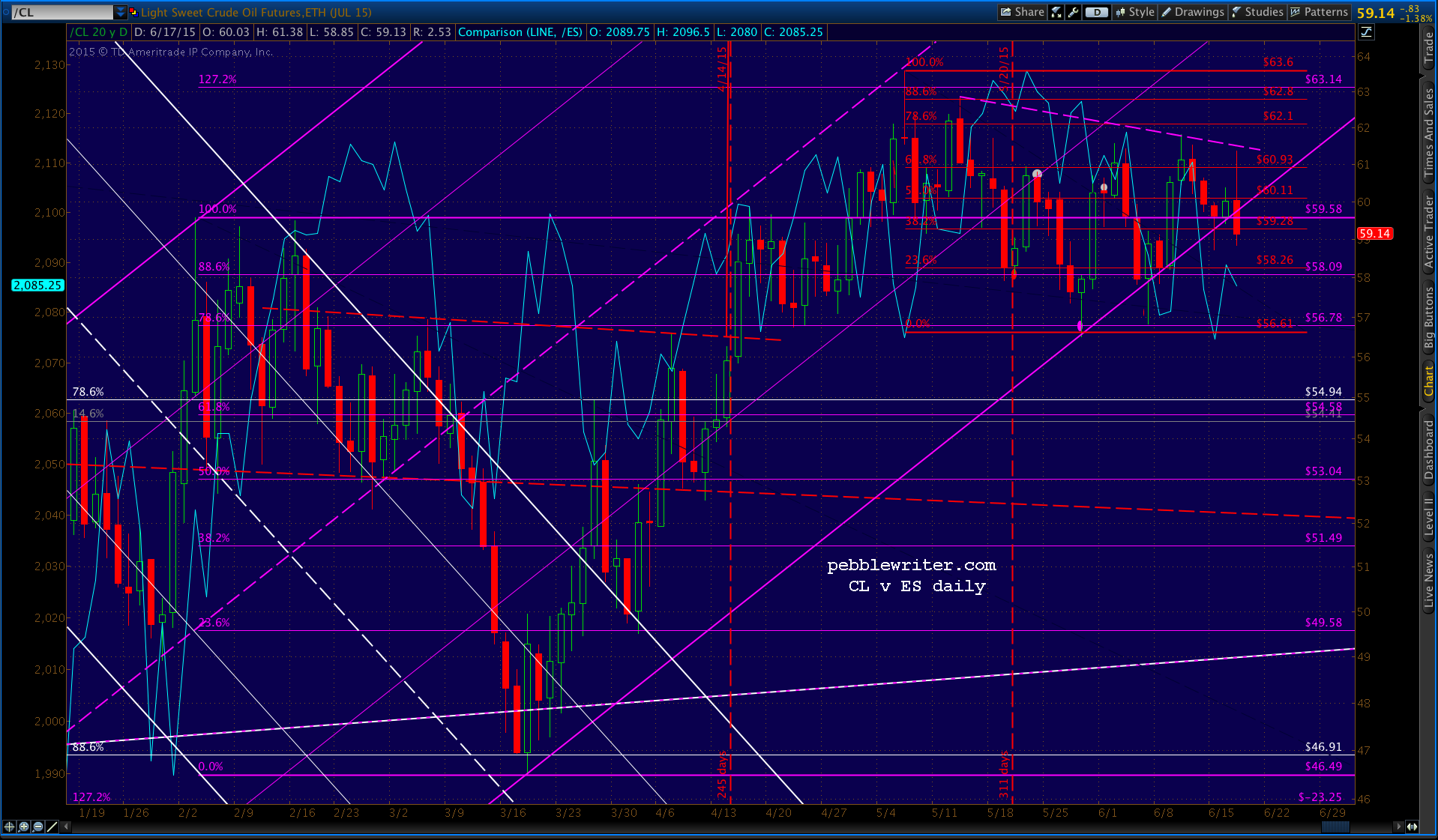 CL is looking weak, but could easily snap back above the purple channel bottom.