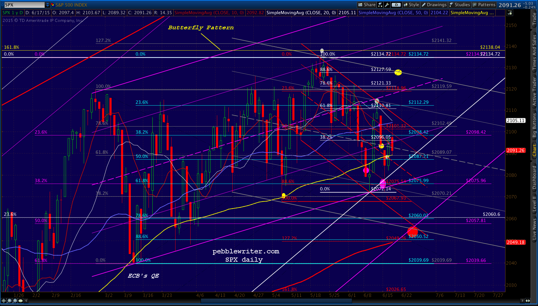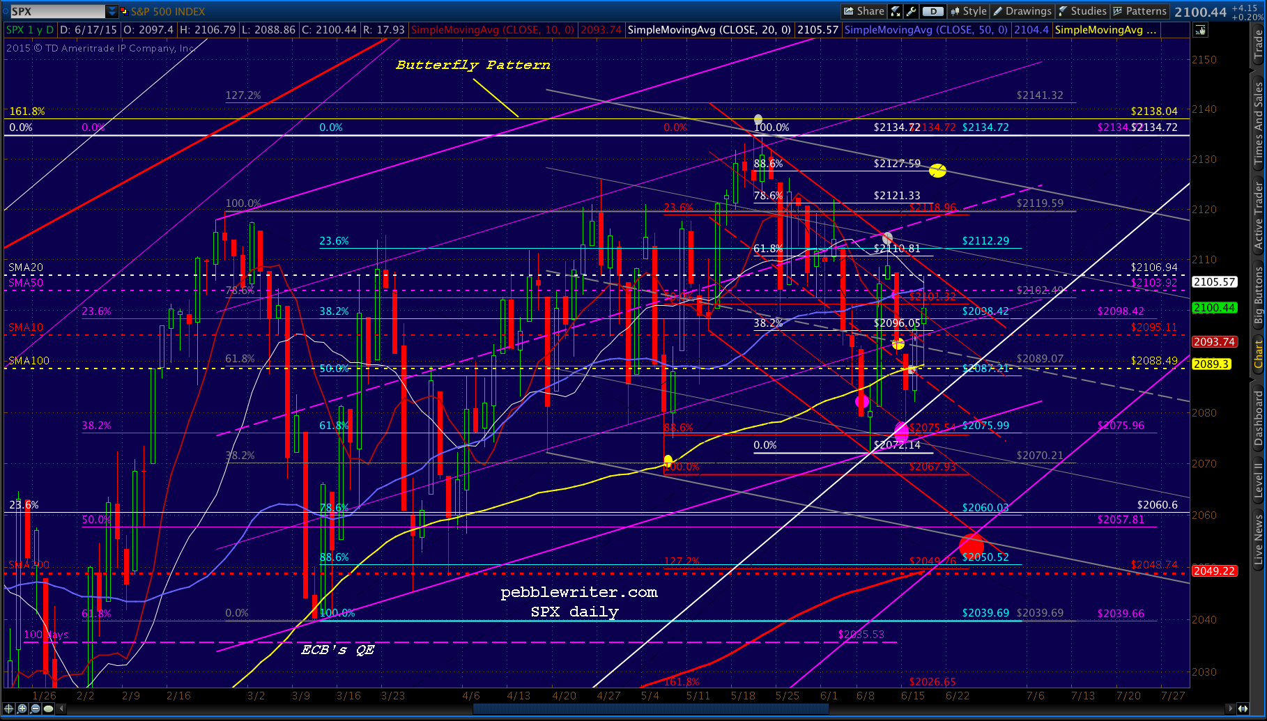 A short-term shorting opportunity here at 2103.64 as SPX just nudged up against the SMA50 and still no breakout on ES. Tight stops are advised.