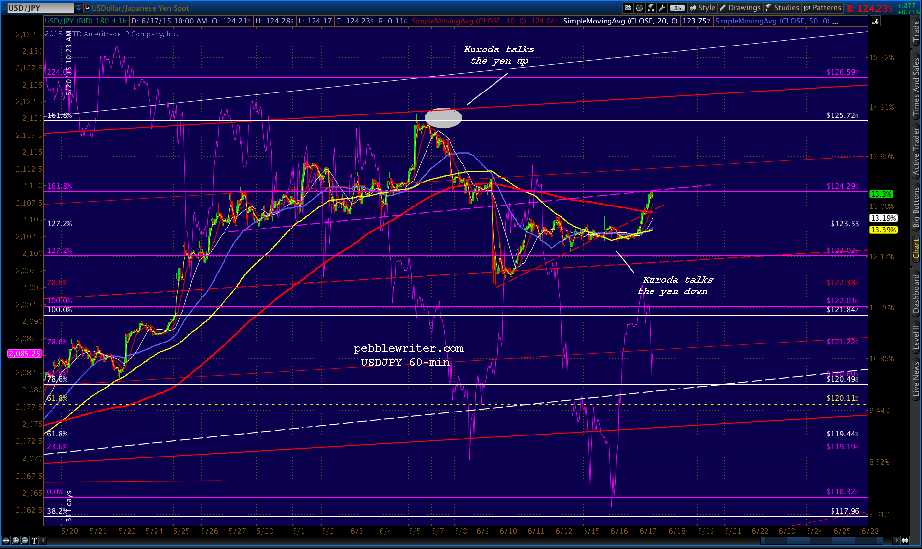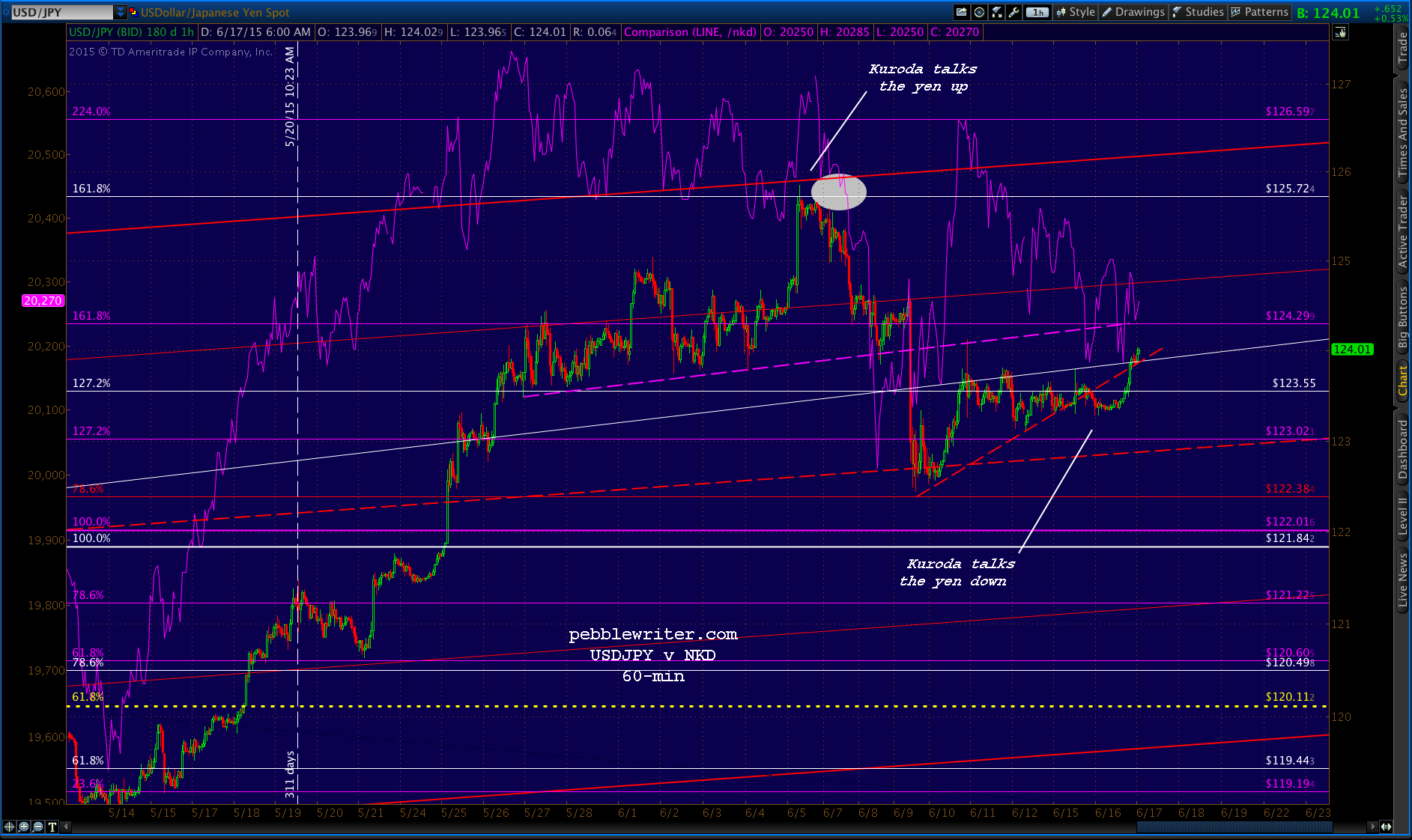 And, USDJPY has snuck back up to the broken purple TL and the 1.618 Fib.