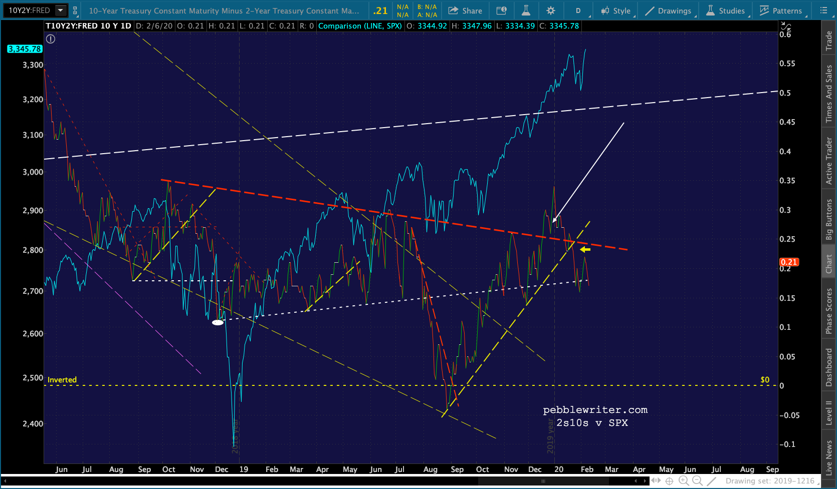 …and the 2s10s, which is still bearishly inclined…