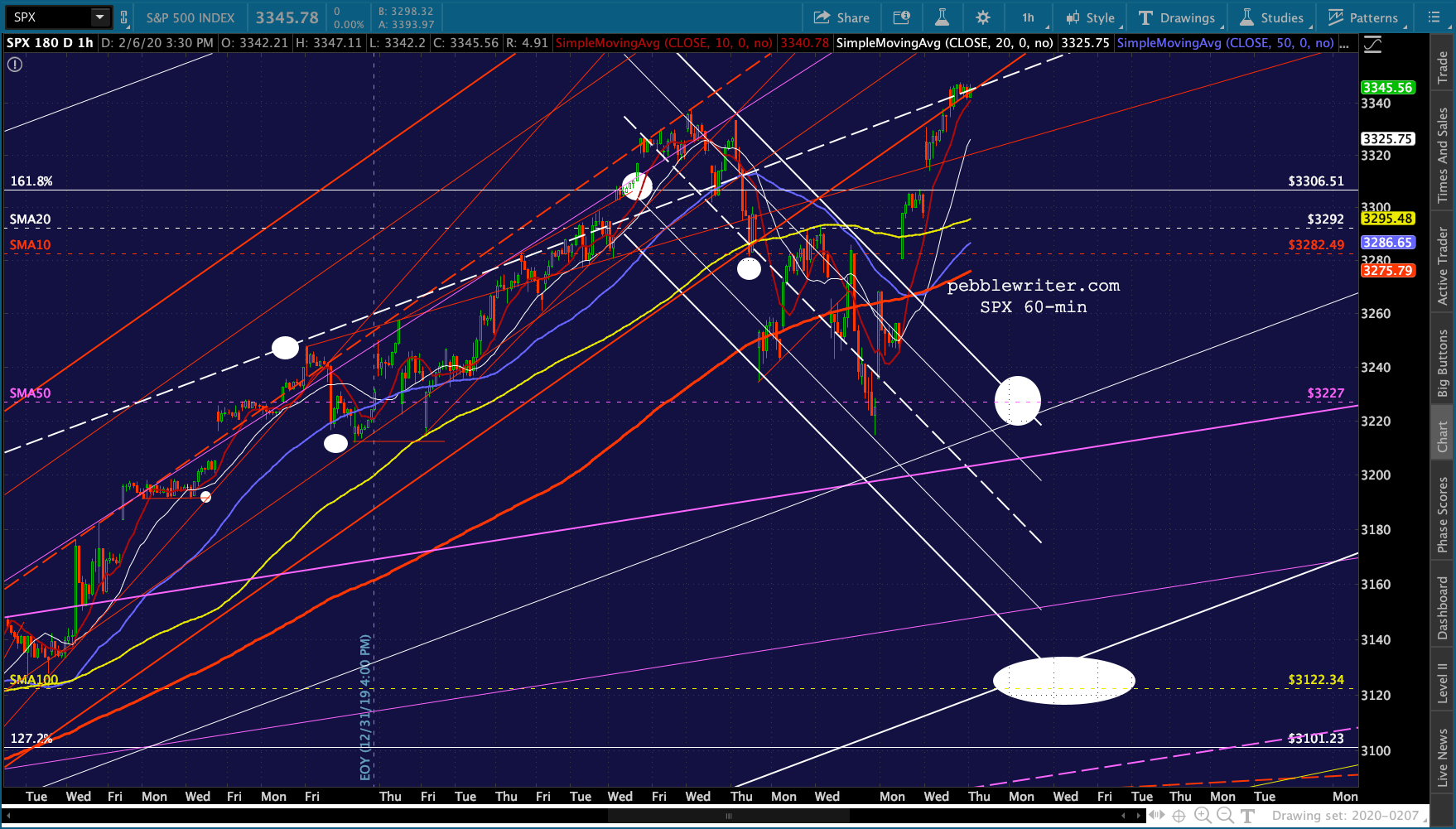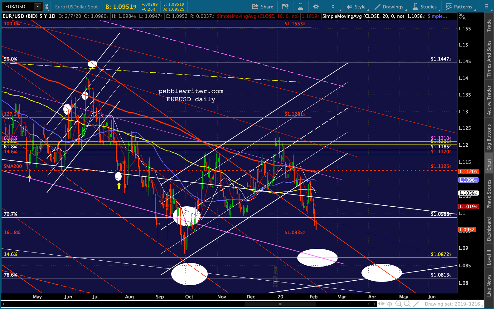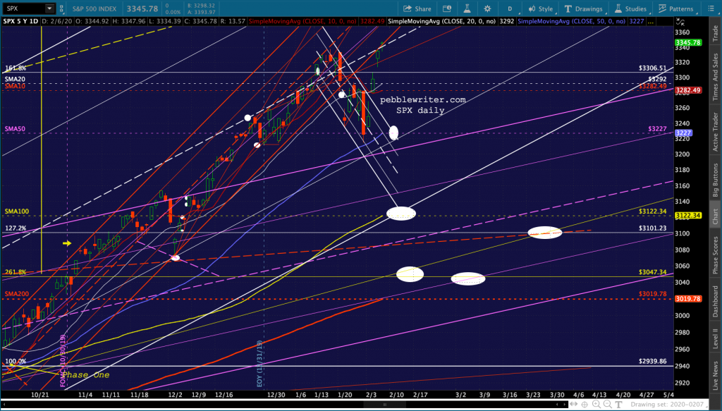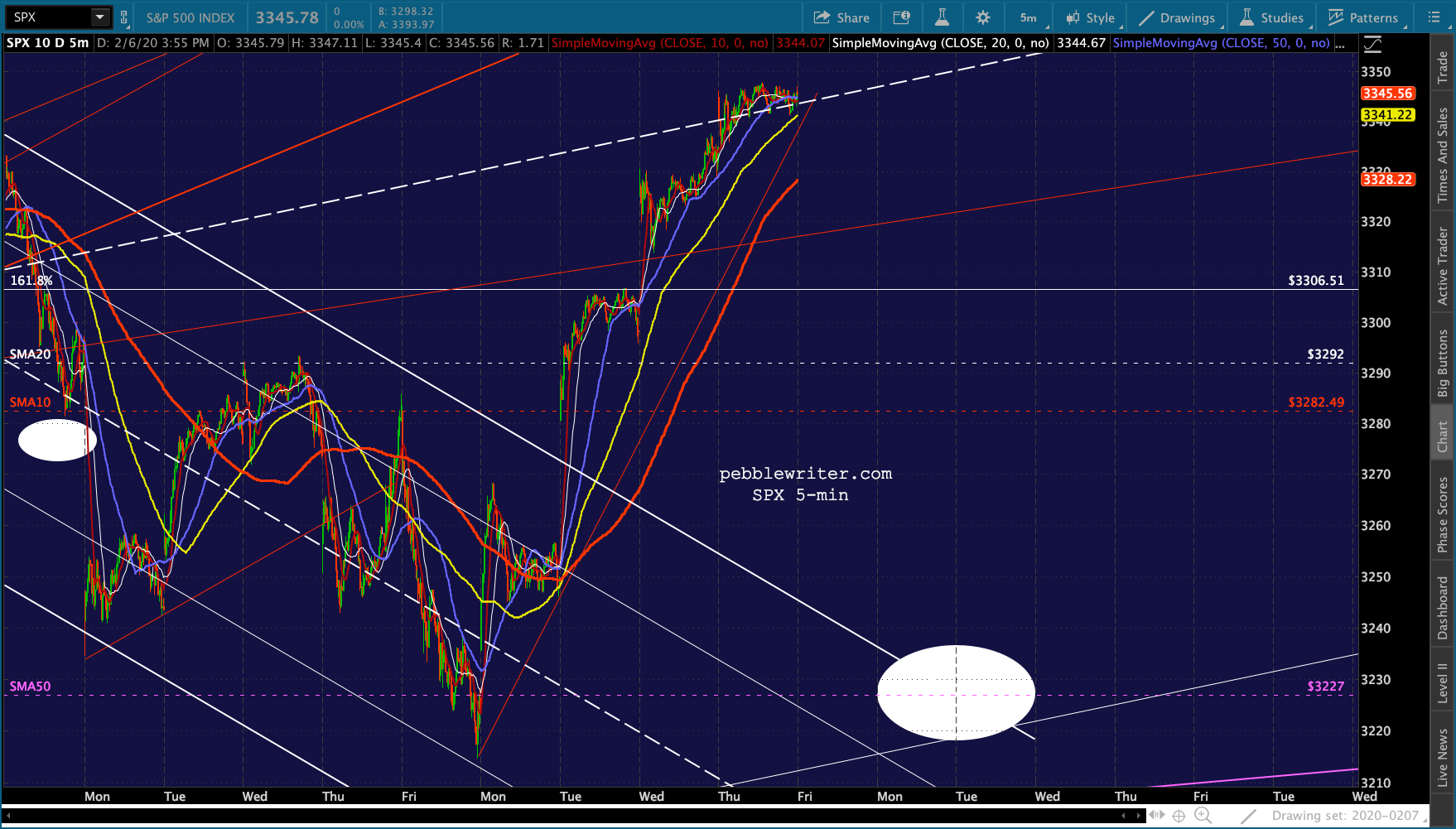 Note that it has still not broken its own trend line. But, like ES, the SMA10 is still below the SMA20.