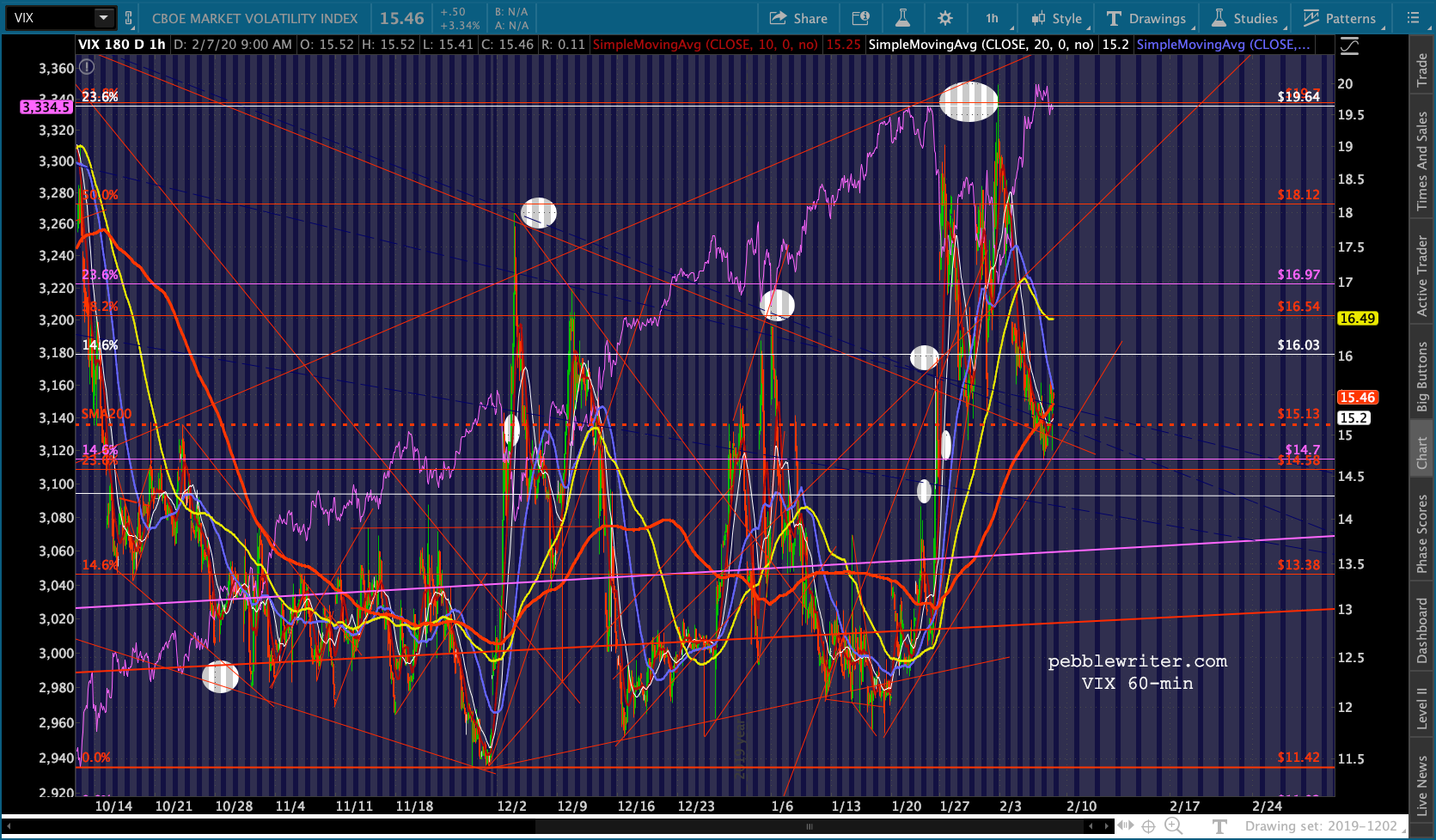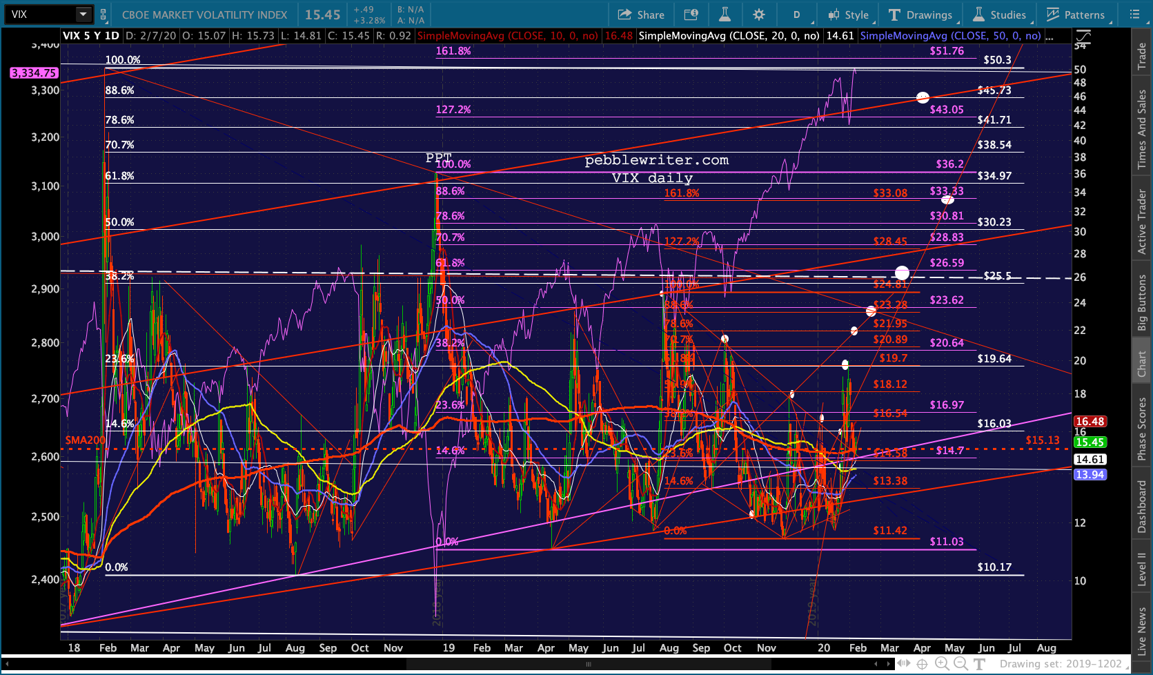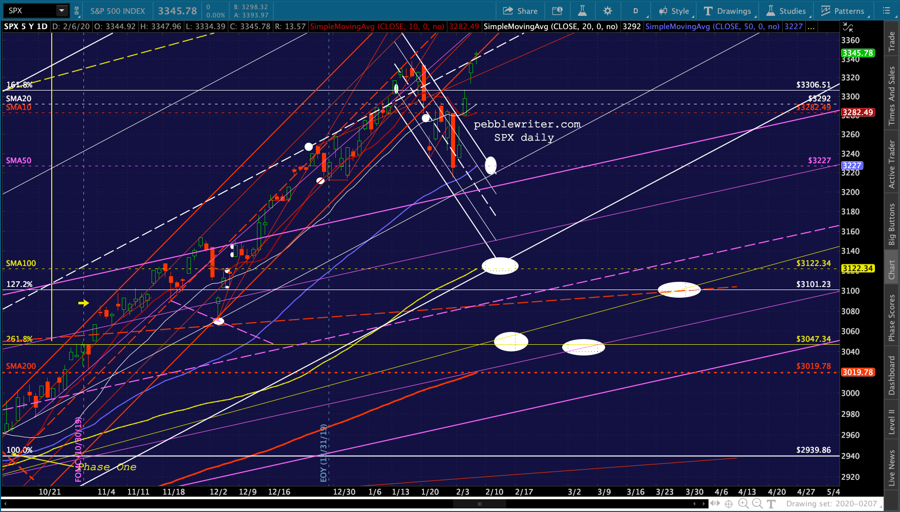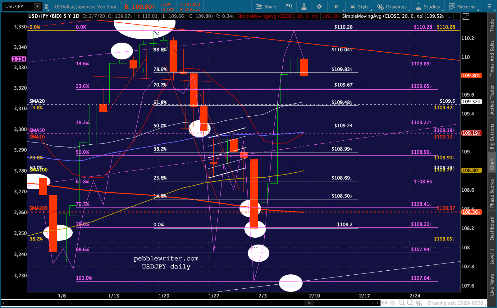 Note that it has still not broken its own trend line. But, like ES, the SMA10 is still below the SMA20.