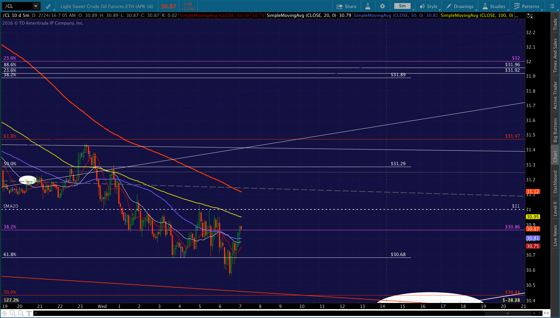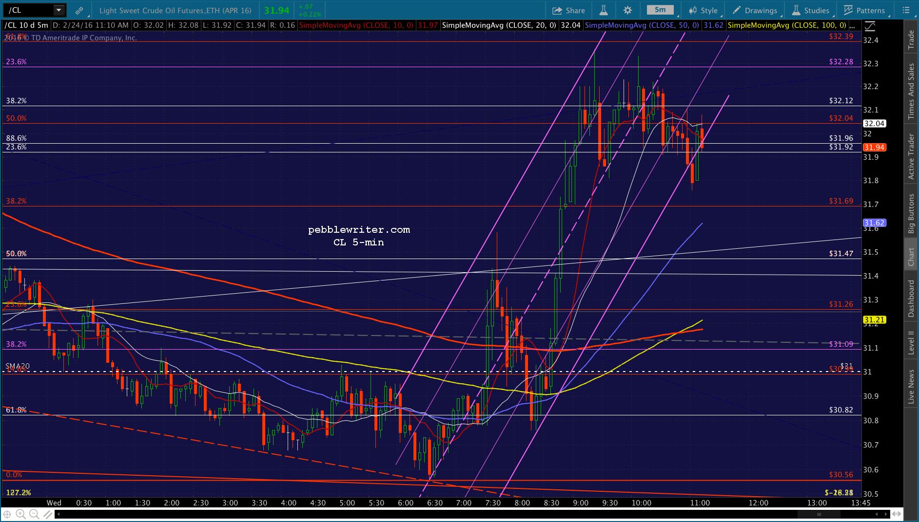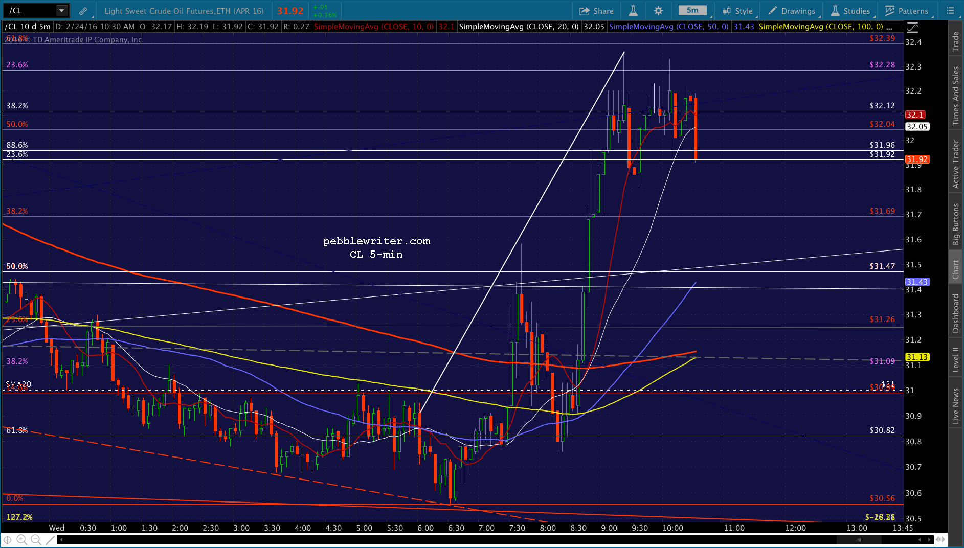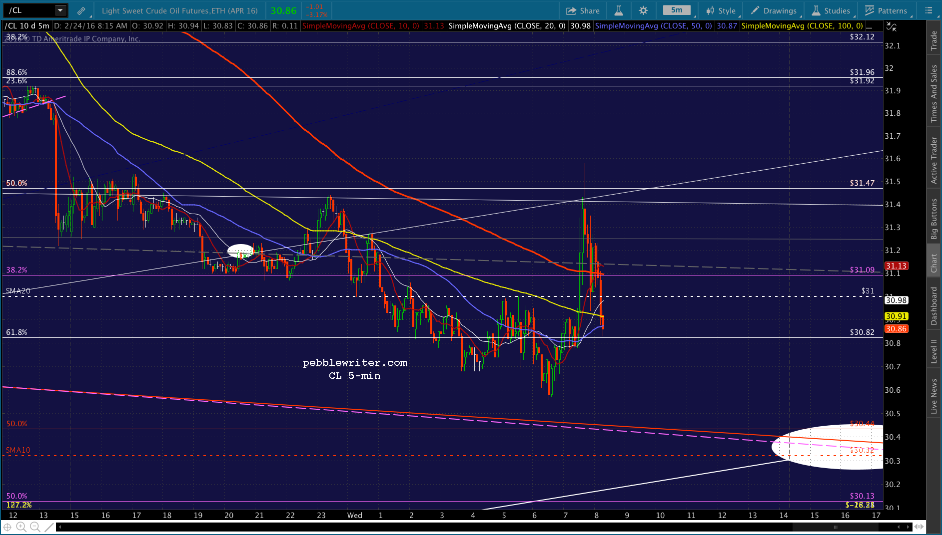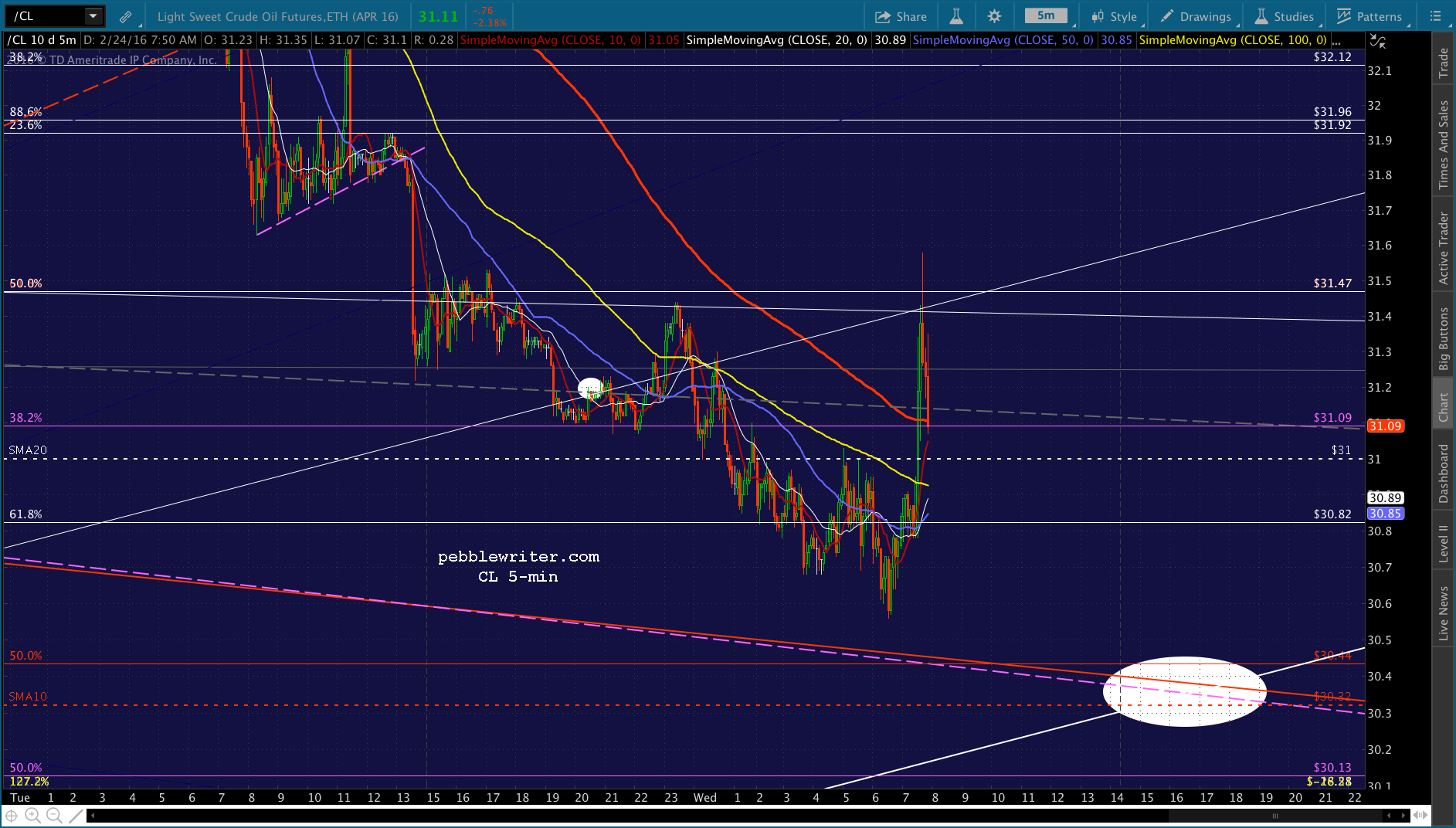 The real question, though, is CL — which has just about reached its red .618 retrace of the drop from yesterday morning.
