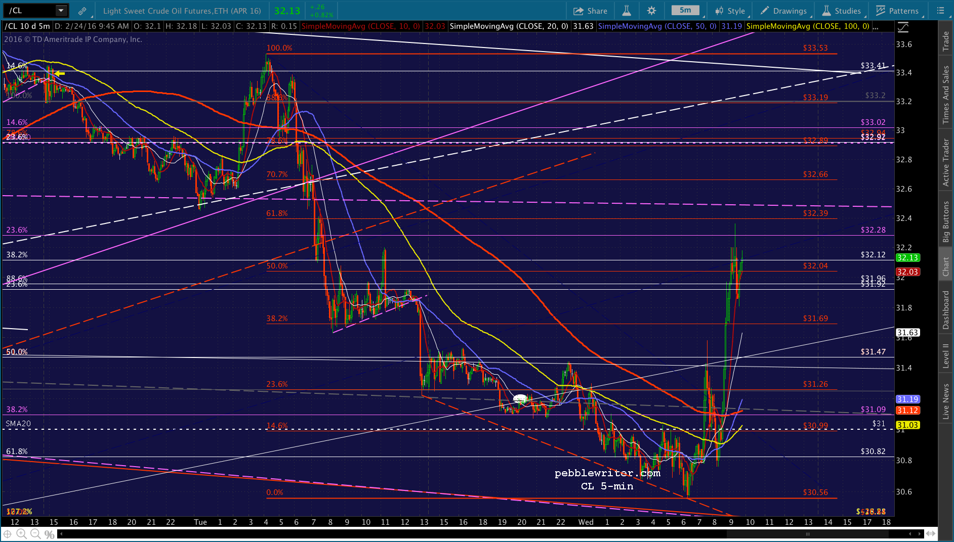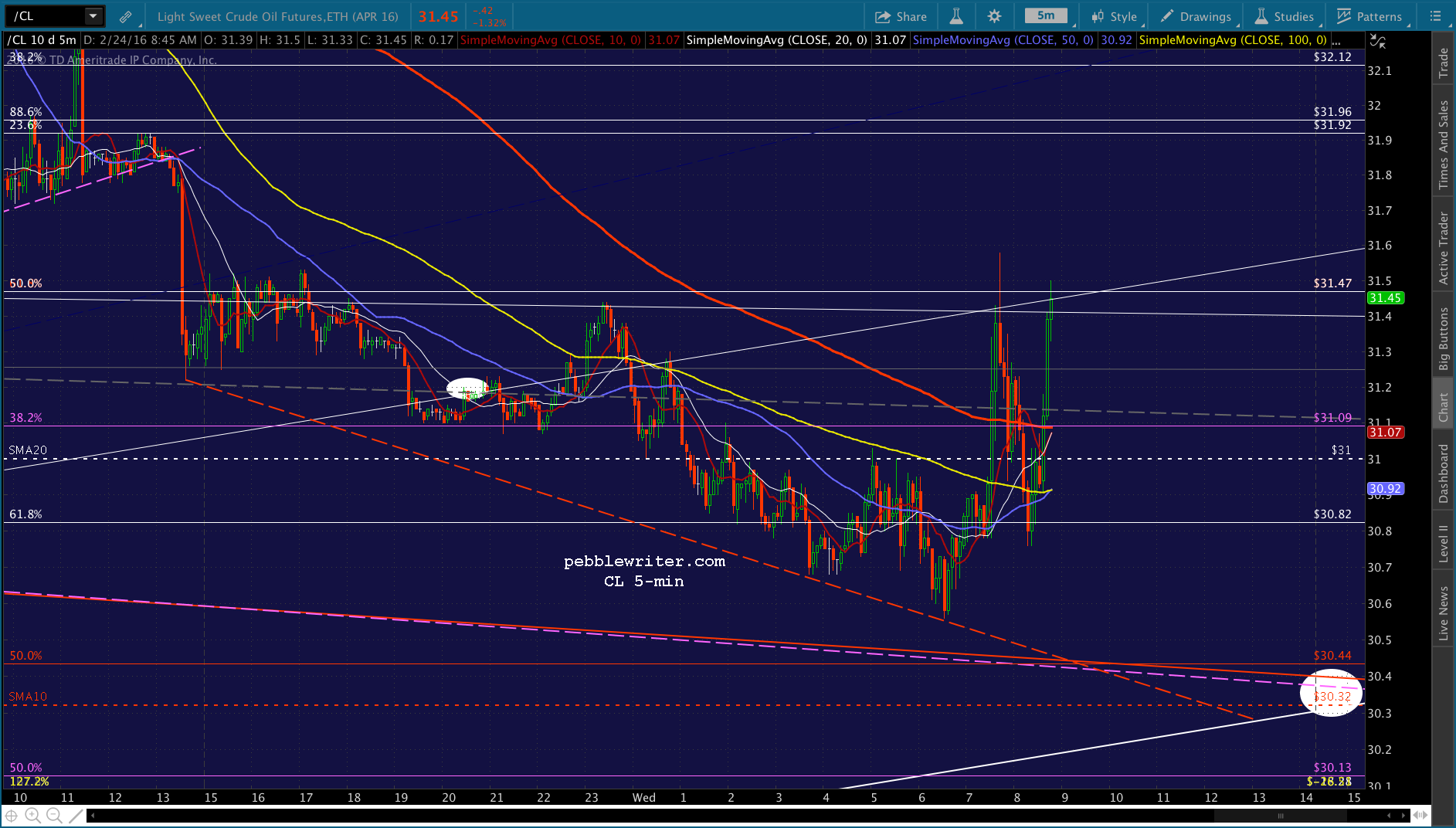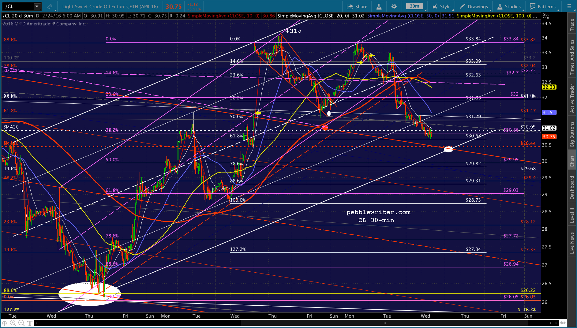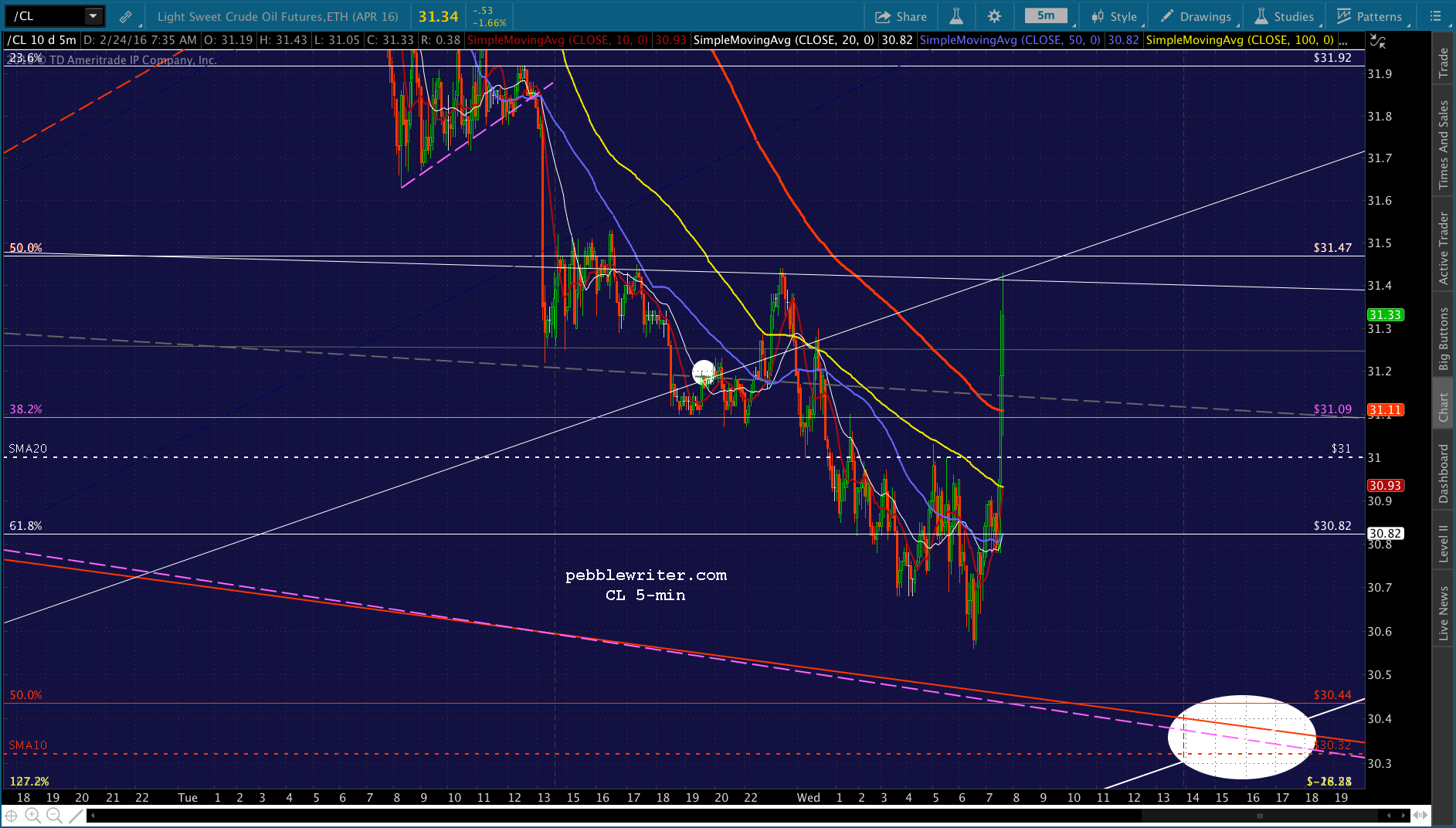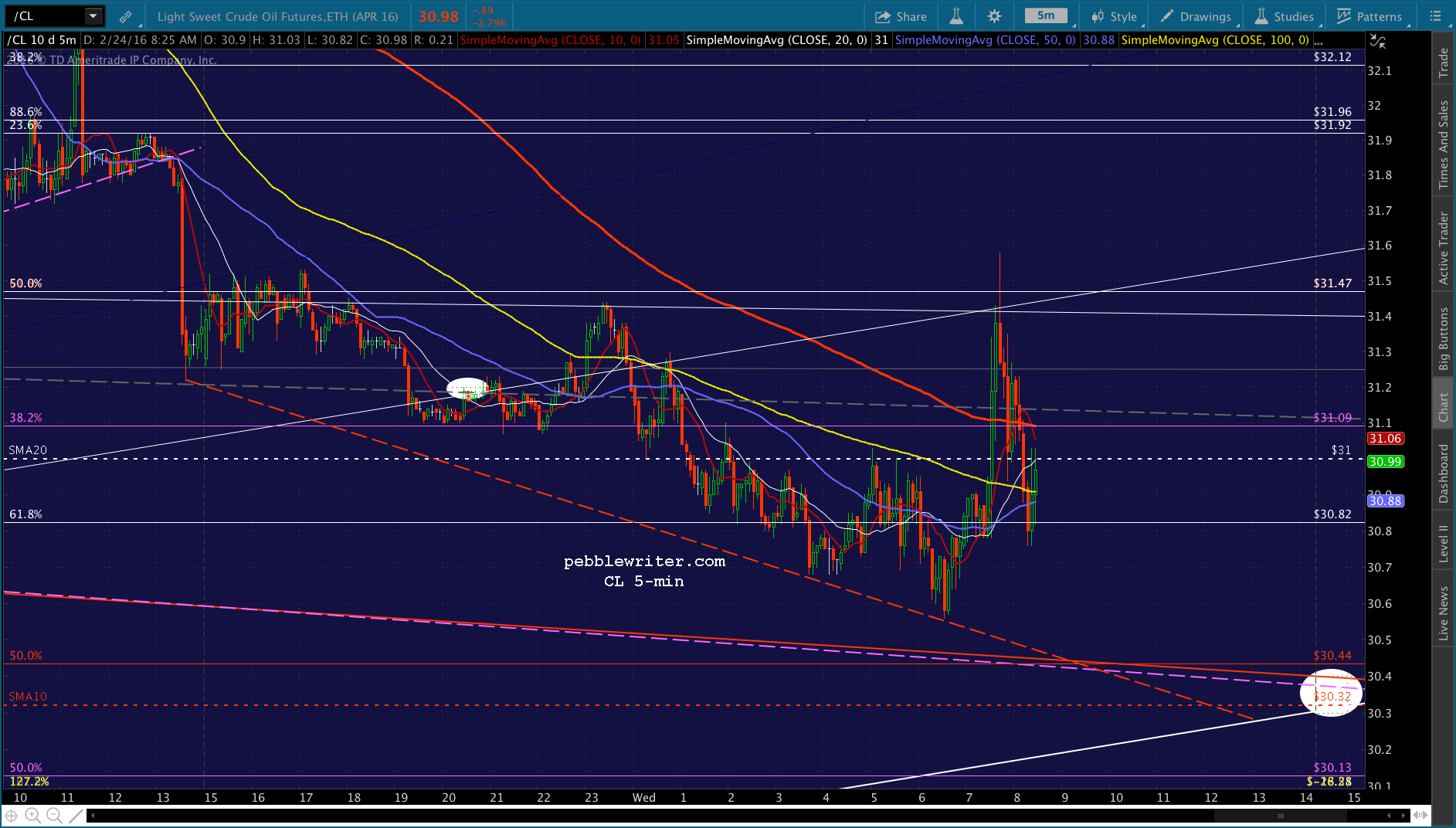 The real question, though, is CL — which has just about reached its red .618 retrace of the drop from yesterday morning.