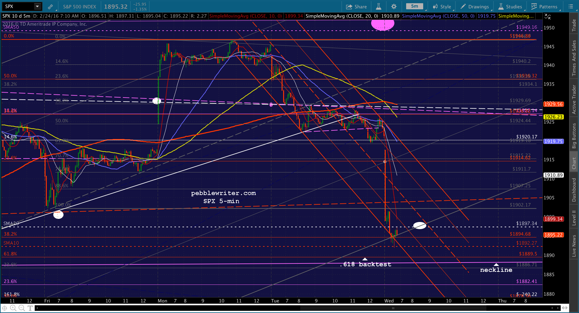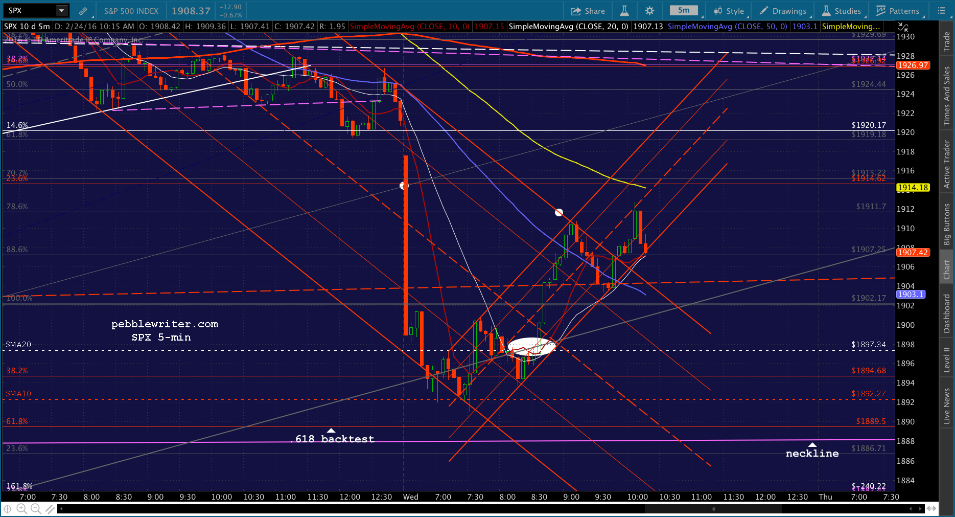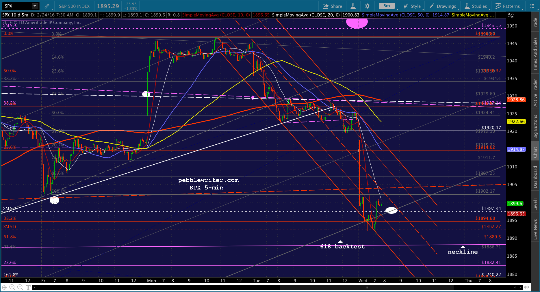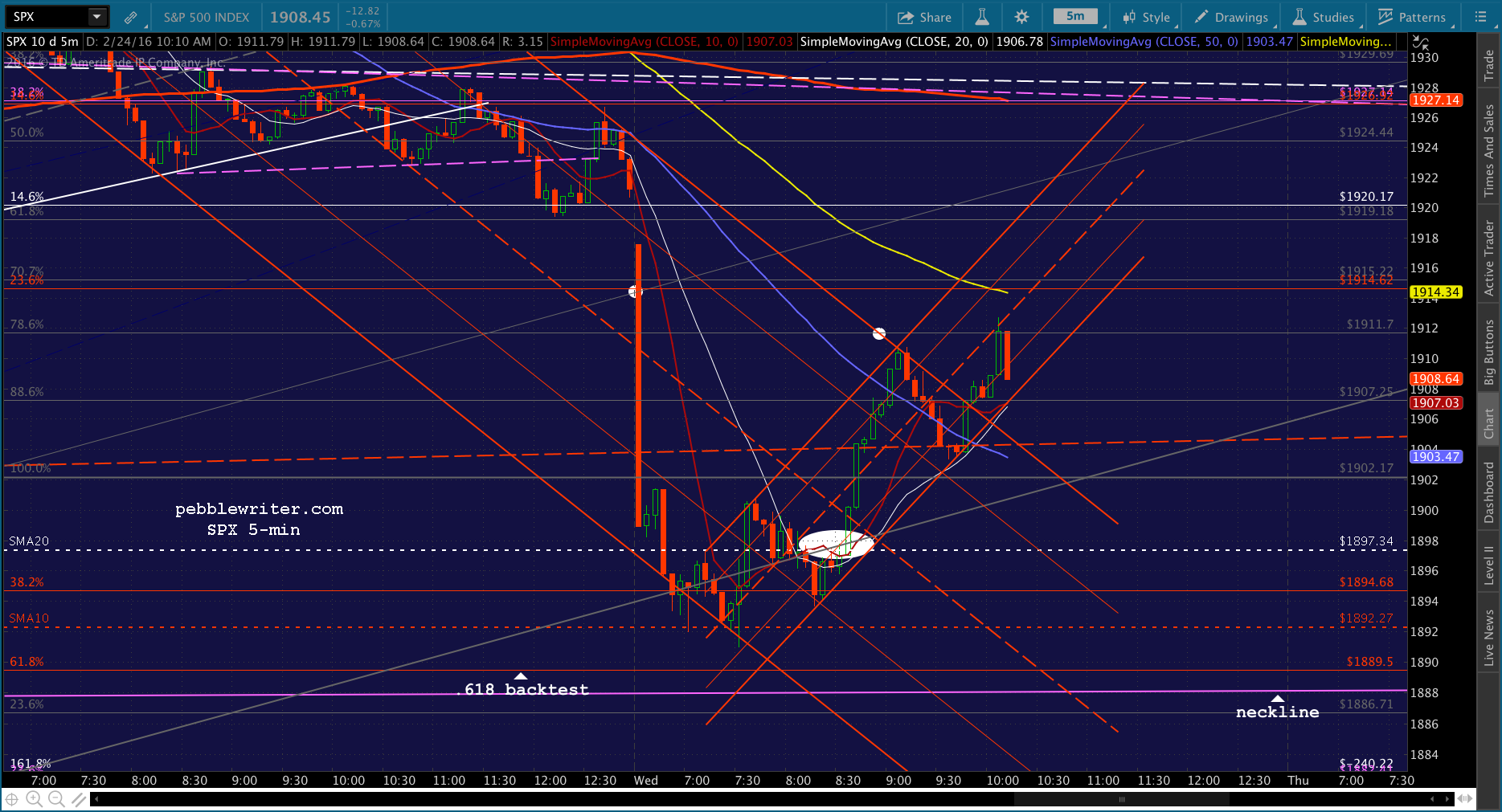 SPX just tagged the red midline. Shorting here for 1915 and then a push to red SMA5 200.