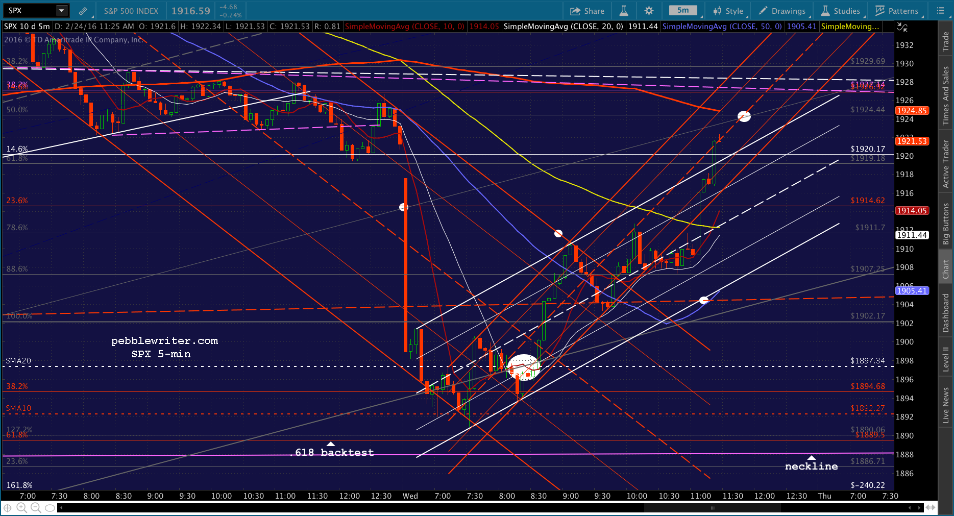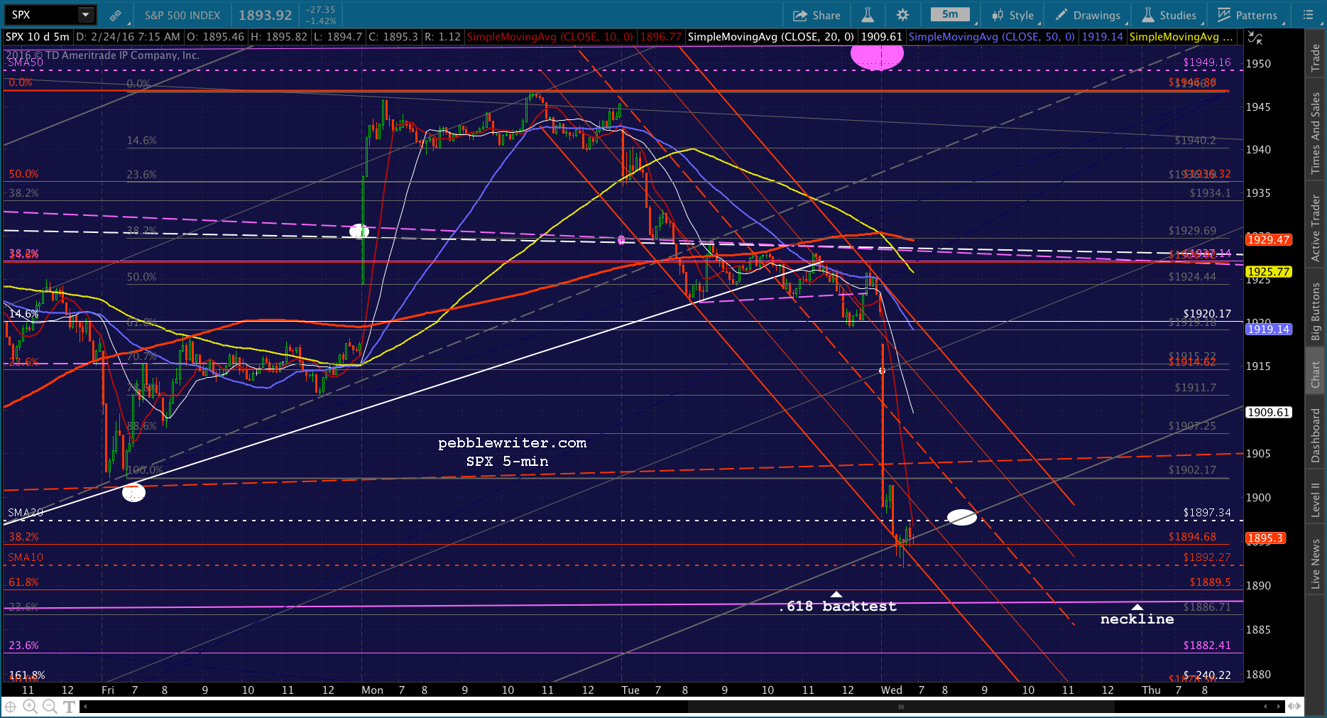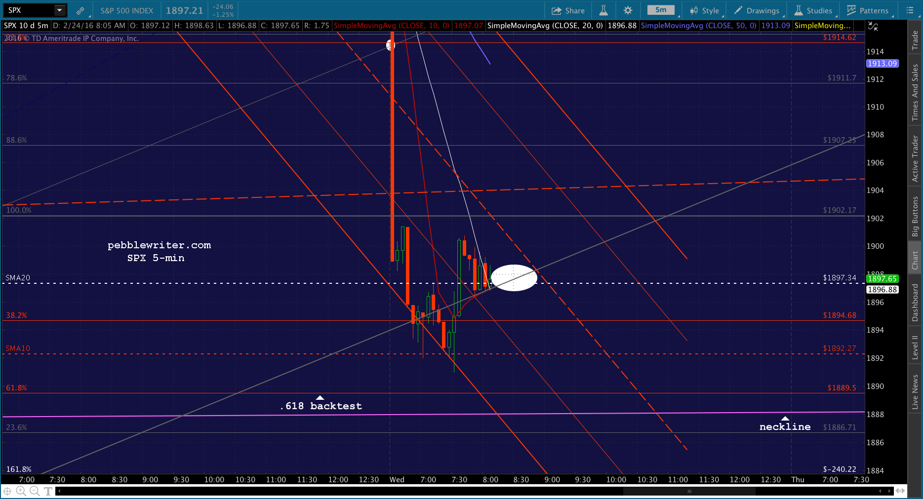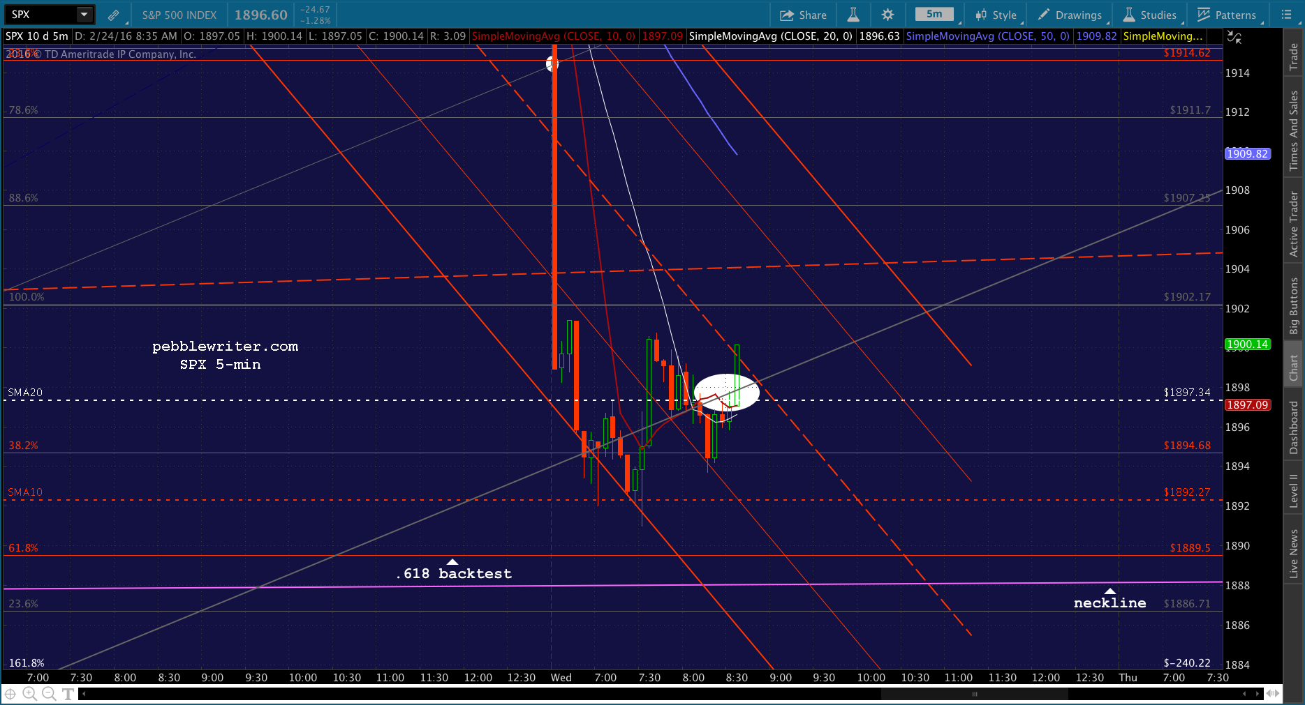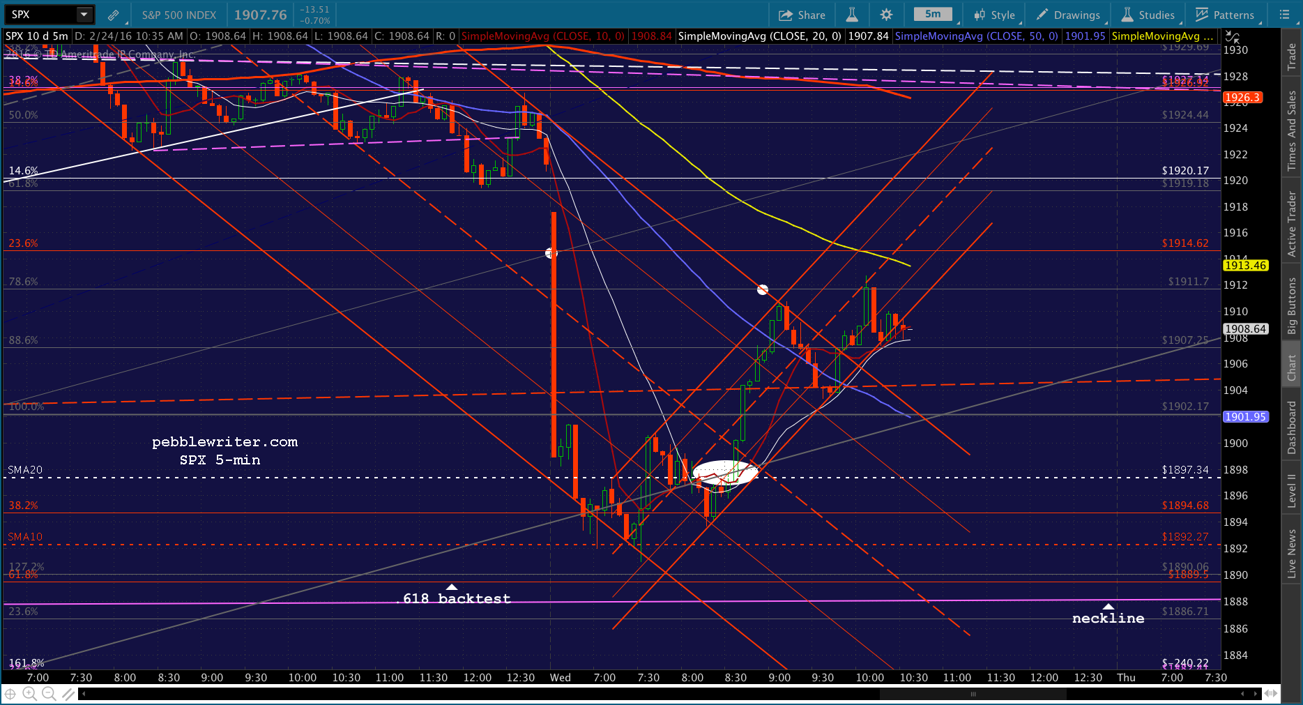 SPX just tagged the red midline. Shorting here for 1915 and then a push to red SMA5 200.
