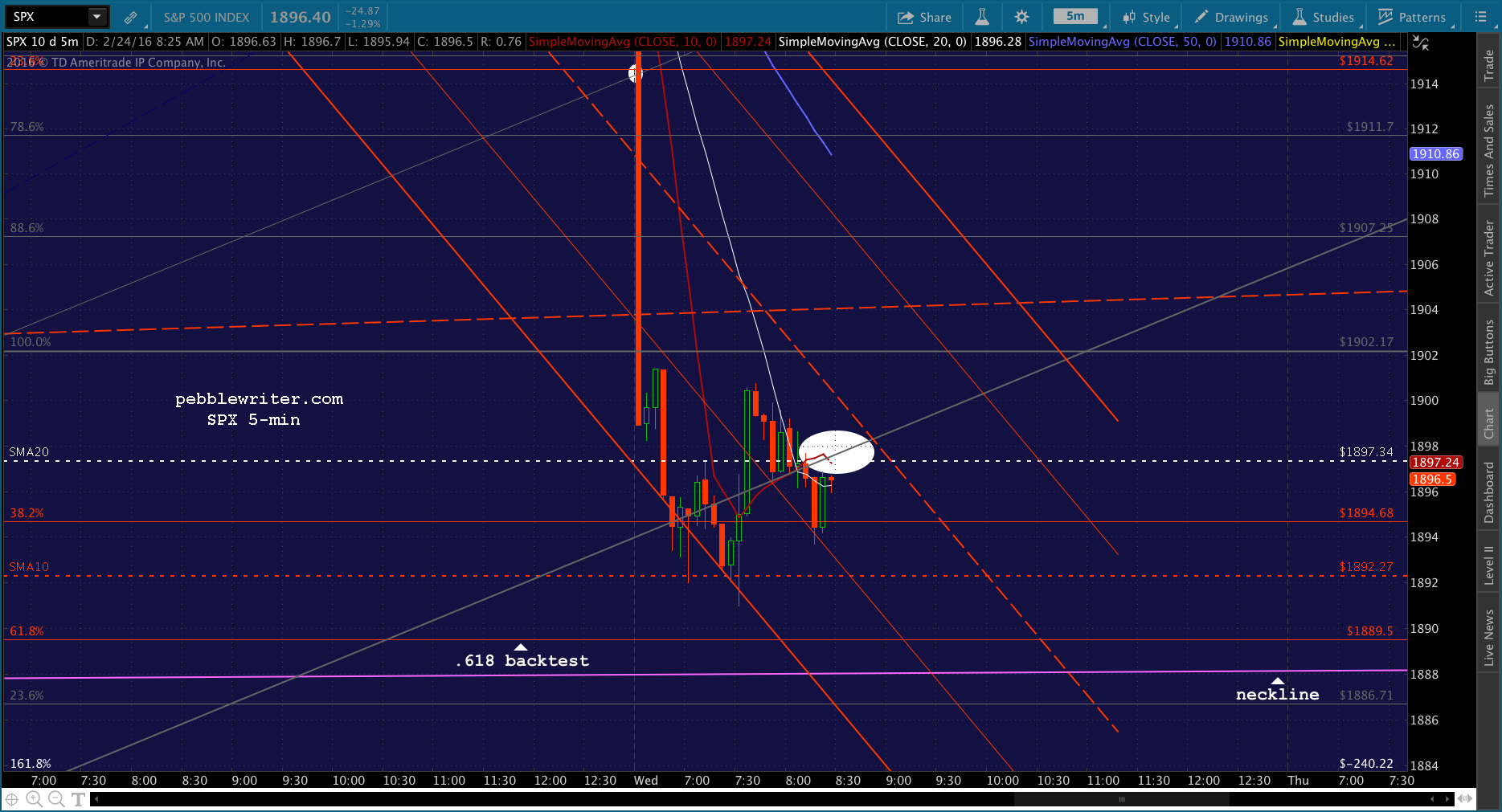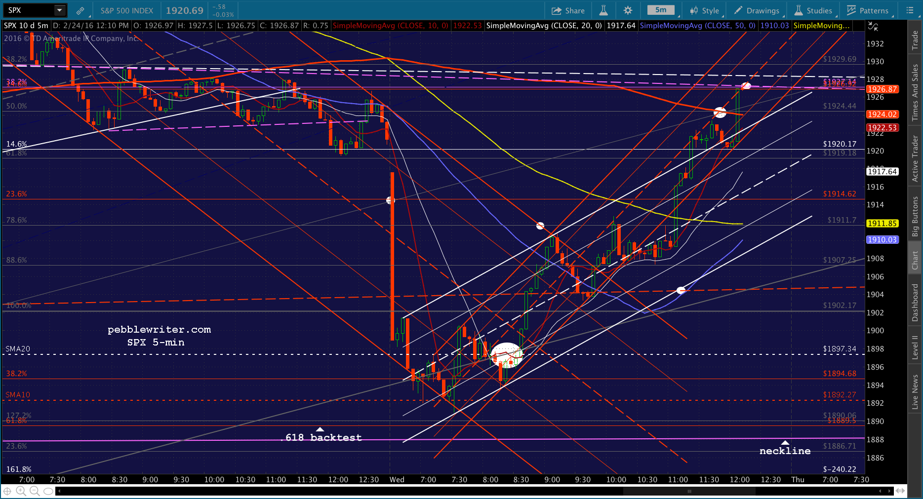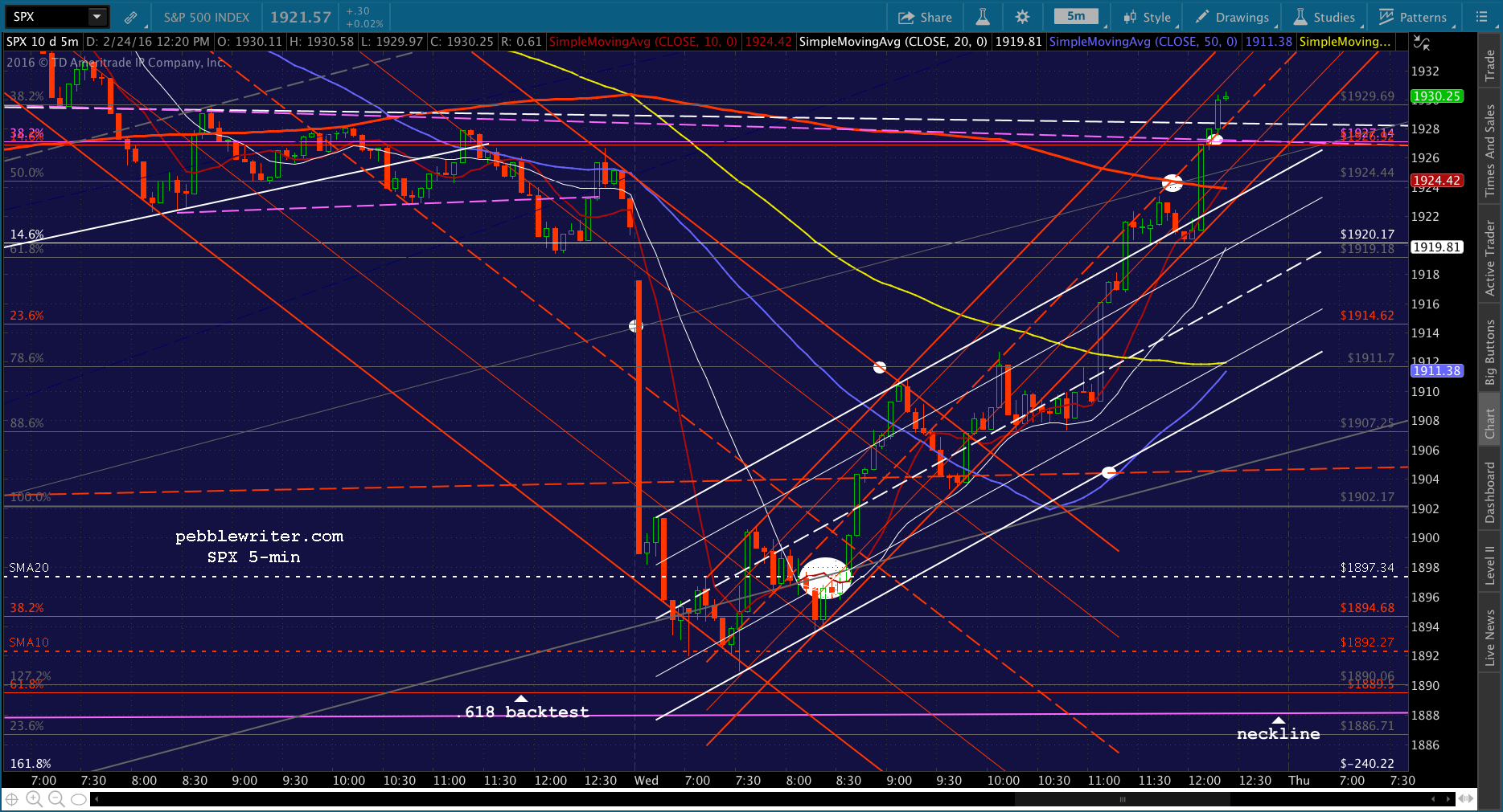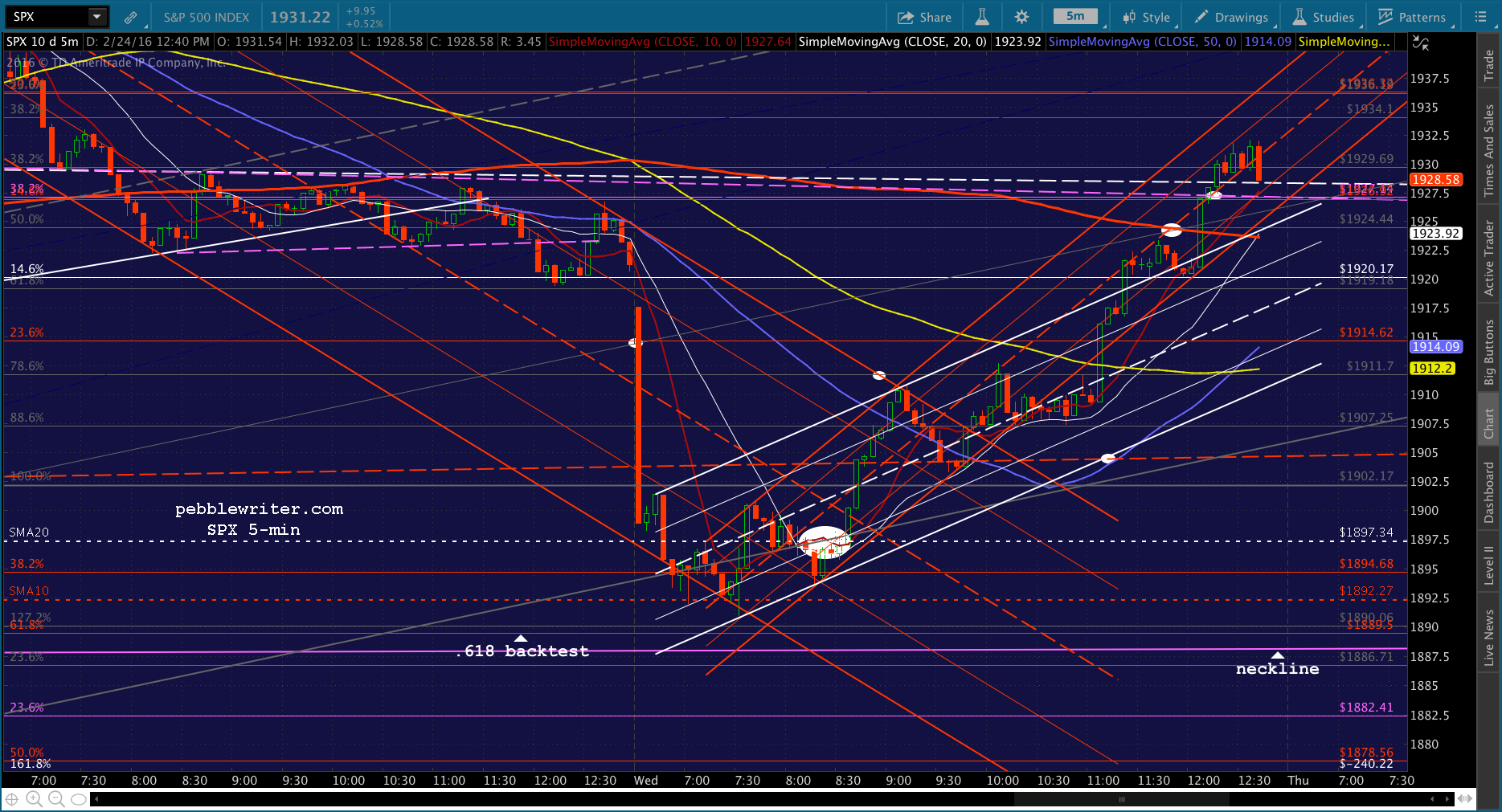 SPX just tagged the red midline. Shorting here for 1915 and then a push to red SMA5 200.
