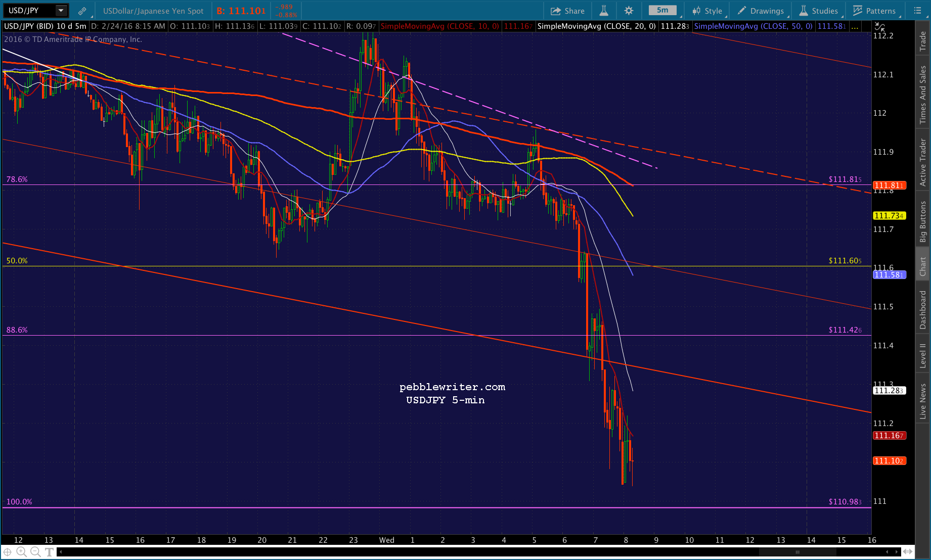 USDJPY pushing to new lows, looks determined to test 110.98.