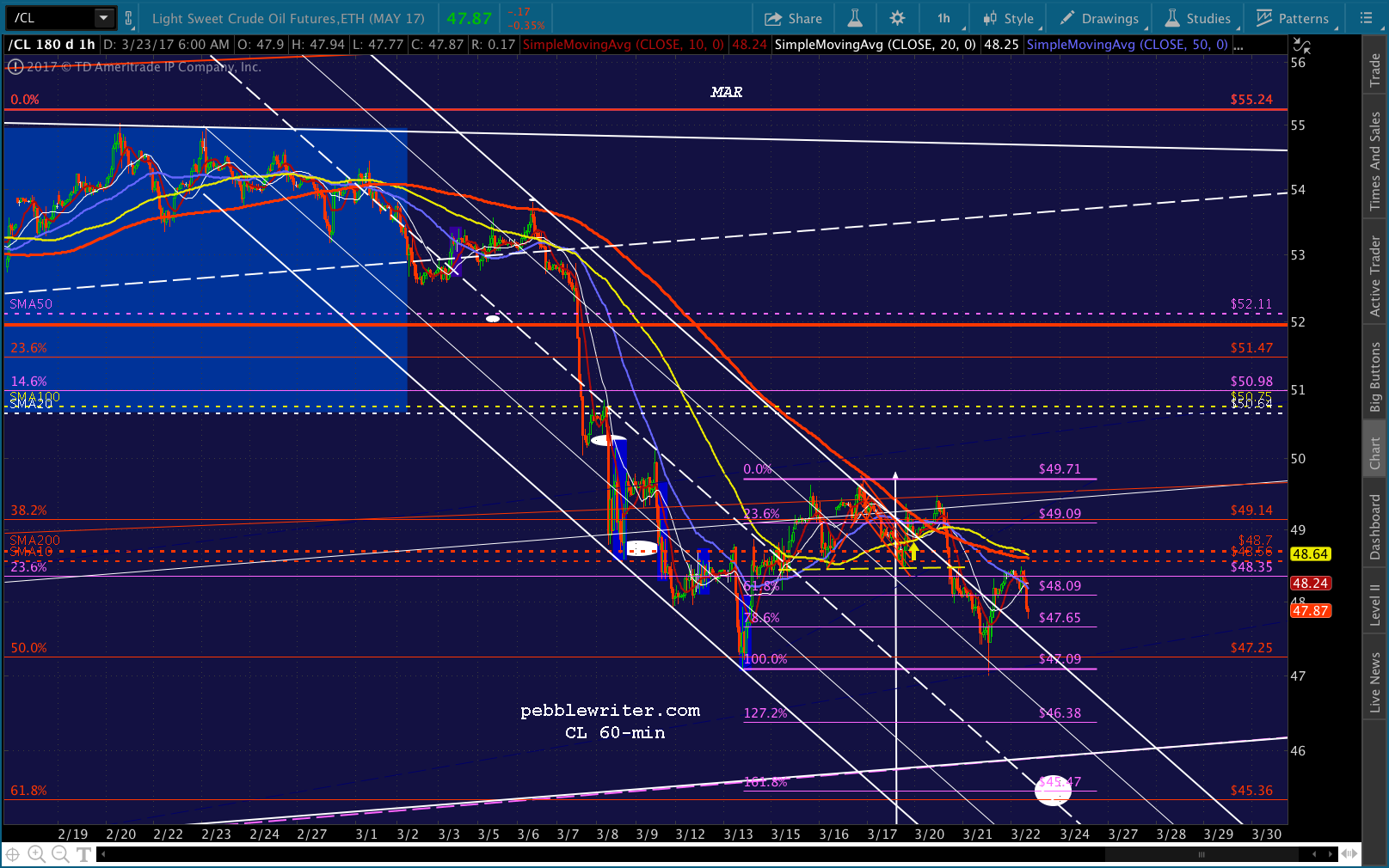 Given where ES is, it could be the end of a wave 4 as we’re back to the Mar 9 lows. And, it’s that theory that kind of resonates for me. I’m still looking for CL to dip down to 45.36. But, it would do some damage to stocks.