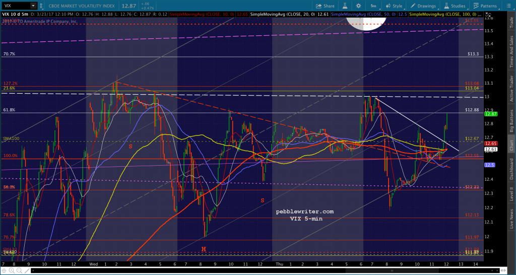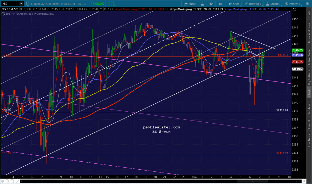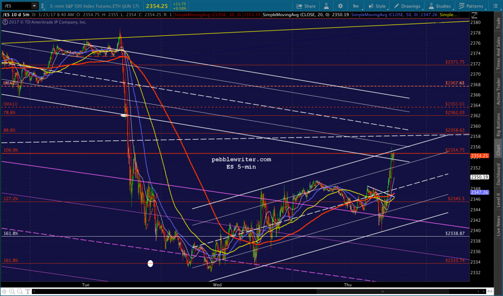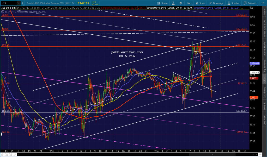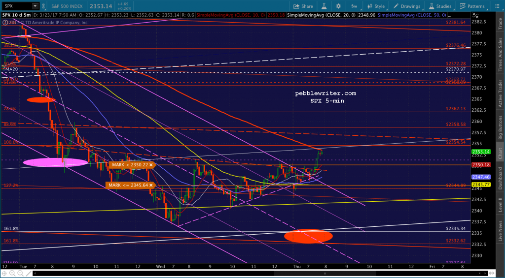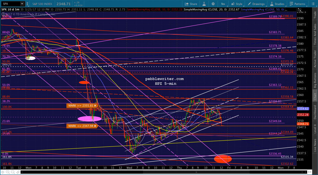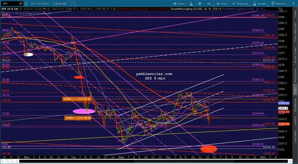 If you want to be real conspiratorial about it, consider the fact that to reach 2335, now, SPX would be backtesting the falling white channel at the end of the day. TPTB could even blame it on the AHCA falling apart or some such rubbish.