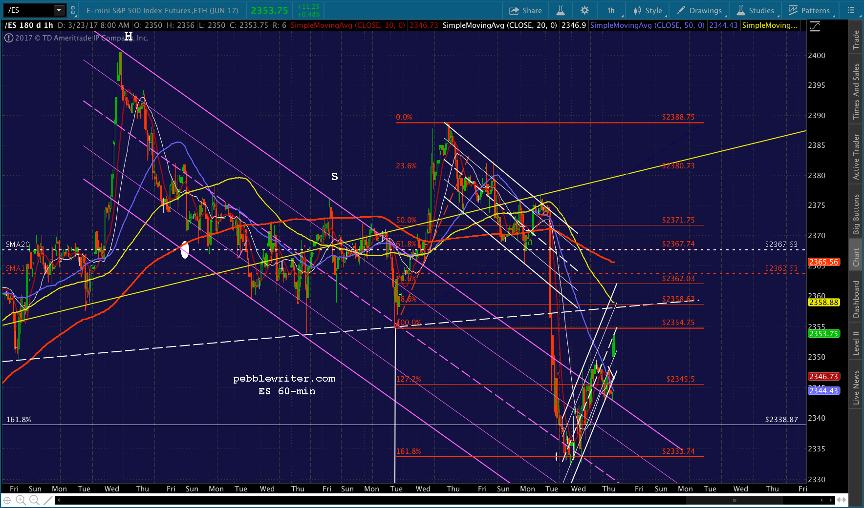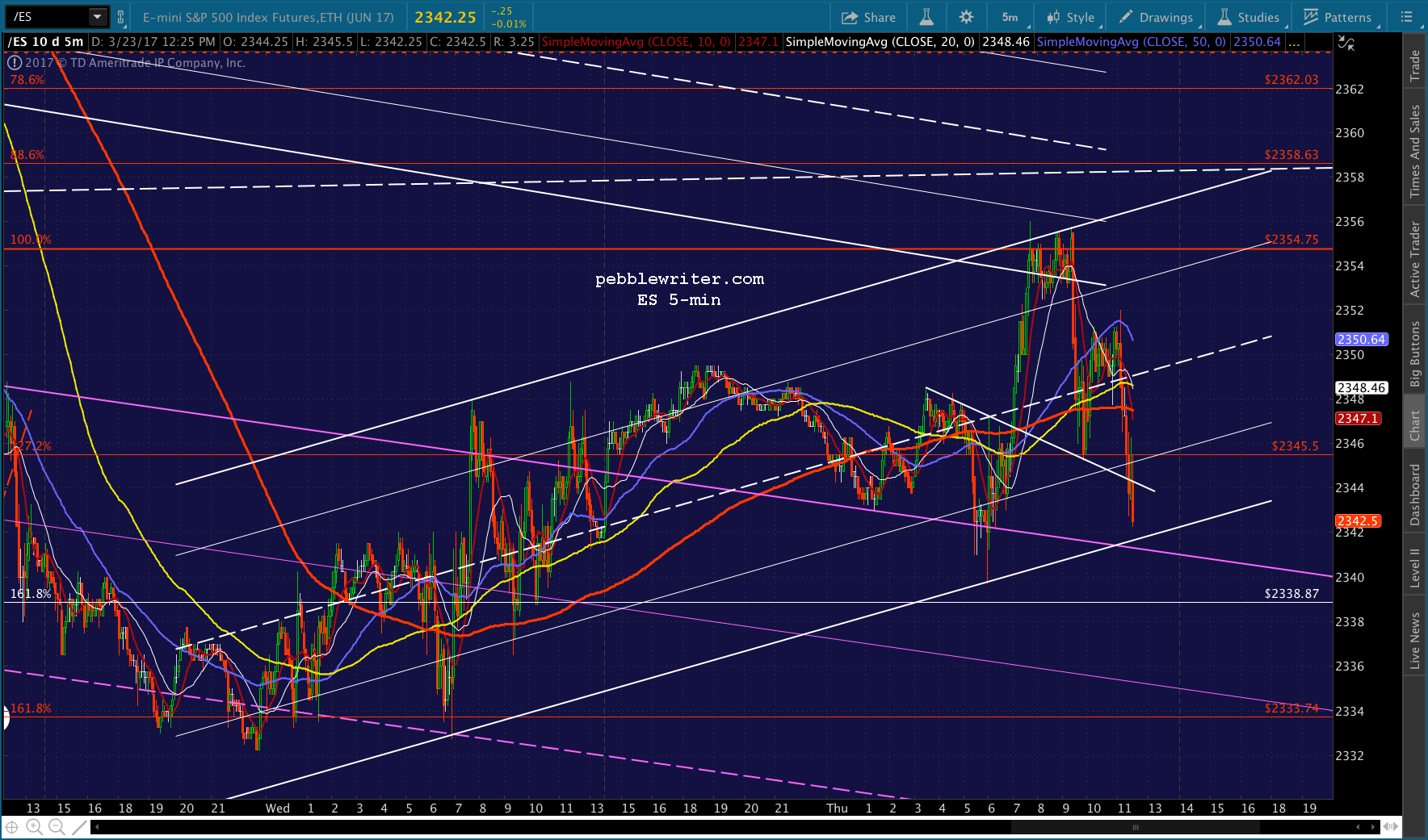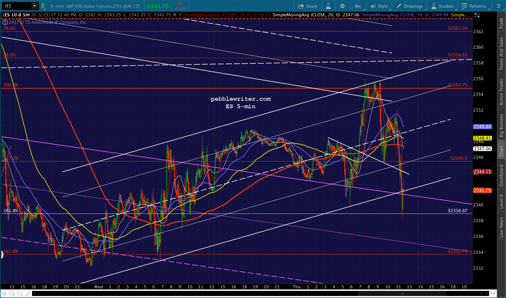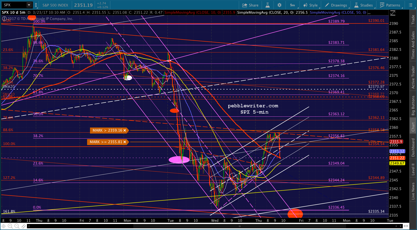 If you want to be real conspiratorial about it, consider the fact that to reach 2335, now, SPX would be backtesting the falling white channel at the end of the day. TPTB could even blame it on the AHCA falling apart or some such rubbish.