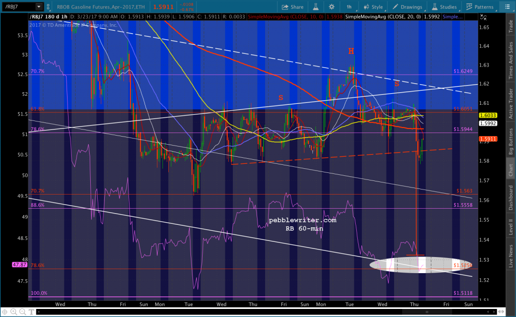 Note that little H&S Pattern pointing to 1.53ish — the white channel bottom. RB bounced back above the red neckline, meaning it wasn’t meant to be — at least, yet.