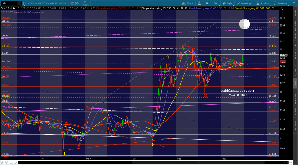 If 2335 is going to happen today, SPX should reverse here at the SMA5 20 and white midline. FWIW, Spicey is on the boob tube, and doesn’t seem to have anything good to say about the AHCA negotiations thus far. Various Representatives have confirmed there is no deal. Back to short with tight stops.