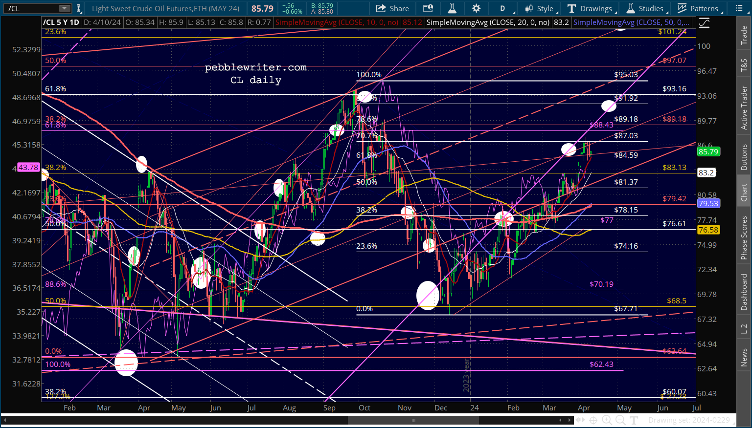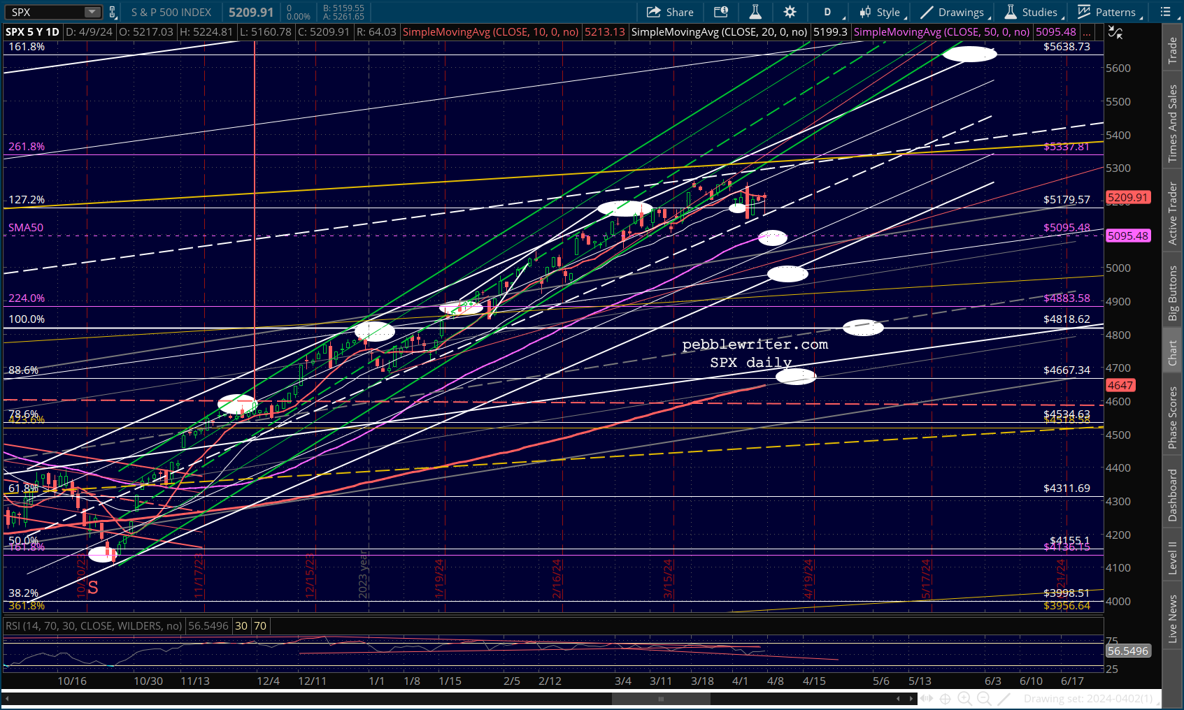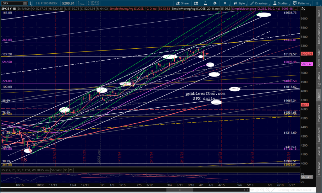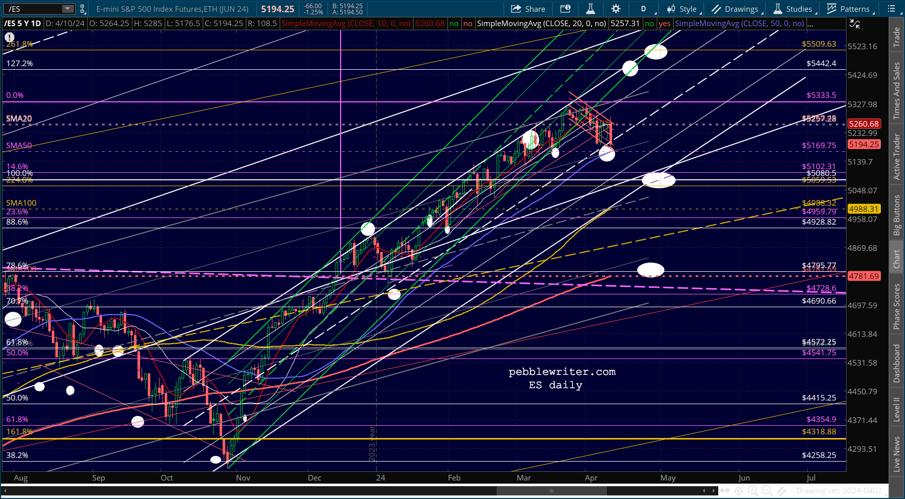 A bounce at SPX 5095 (ES 5170) would test not only the SMA50 but the rising white channel midline.