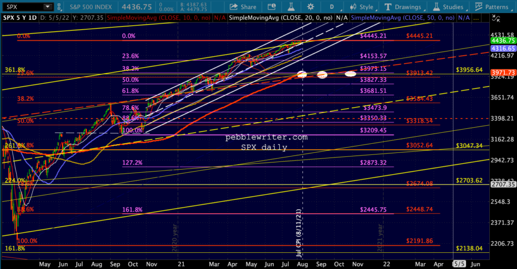 Note that our 10% correction base case is bolstered by the presence of a .618 Fib retracement in line with a TL connecting the two most significant recent dips.