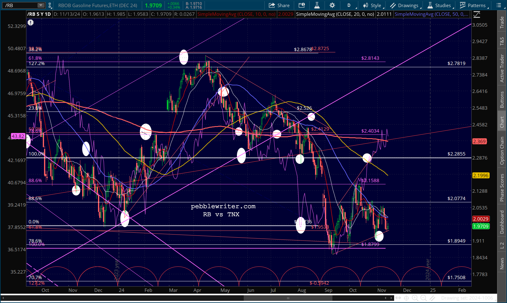 …including oil. Look for CL and RB to break down – as long as the conflict(s) in the Middle East don’t escalate (anyone’s guess.)