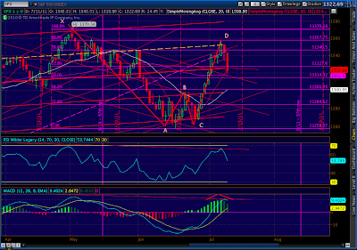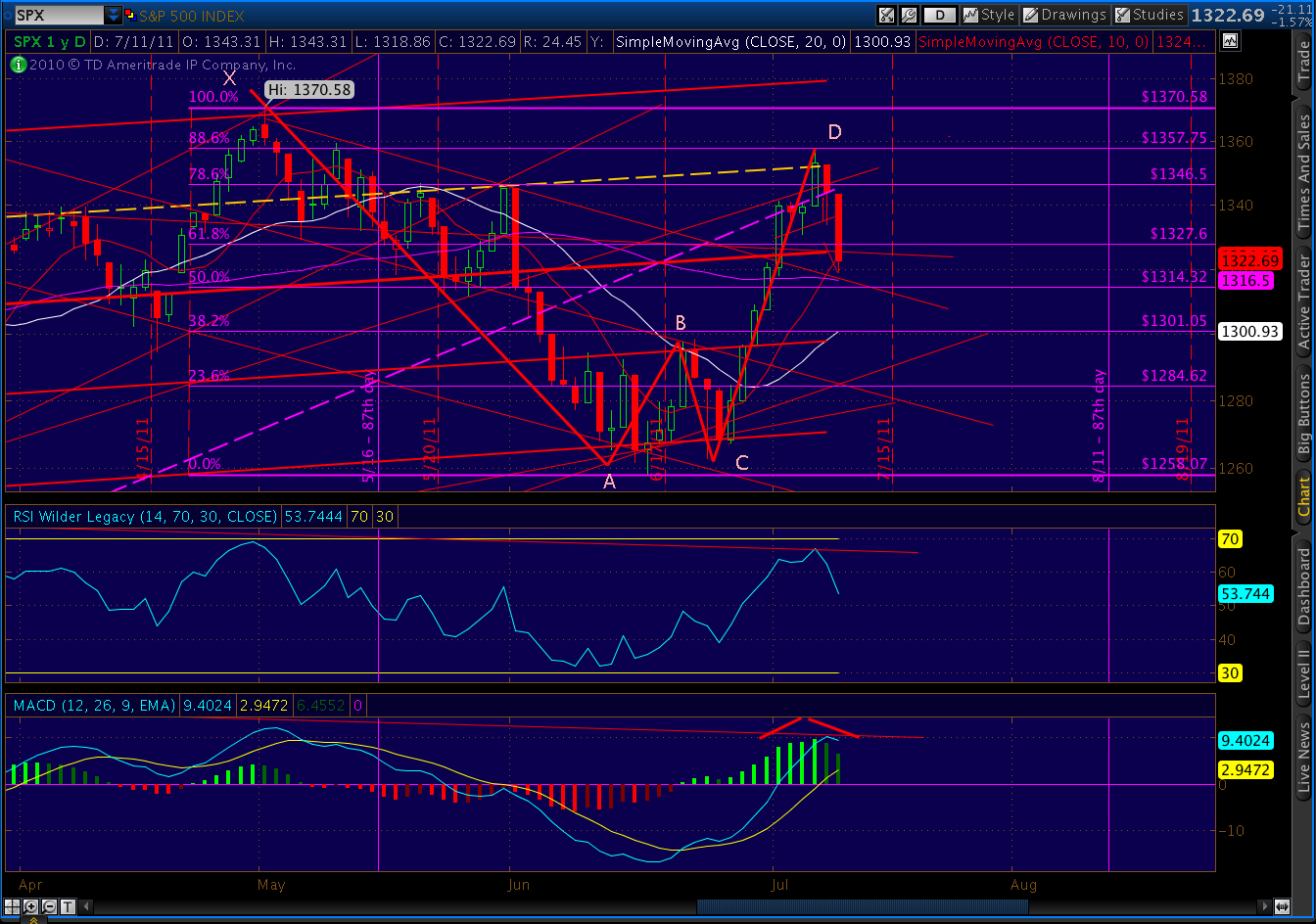 Watching the bearish Bat Pattern unfold, with Fib targets based on the DA measurement: