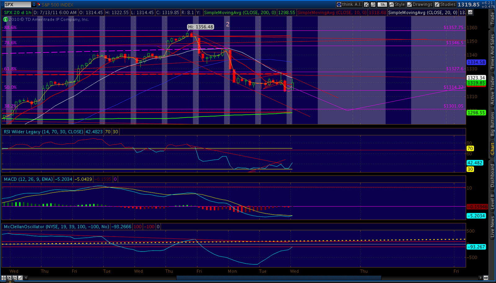 SPX appears to have peaked at 1331.48. Will load more shorts here.