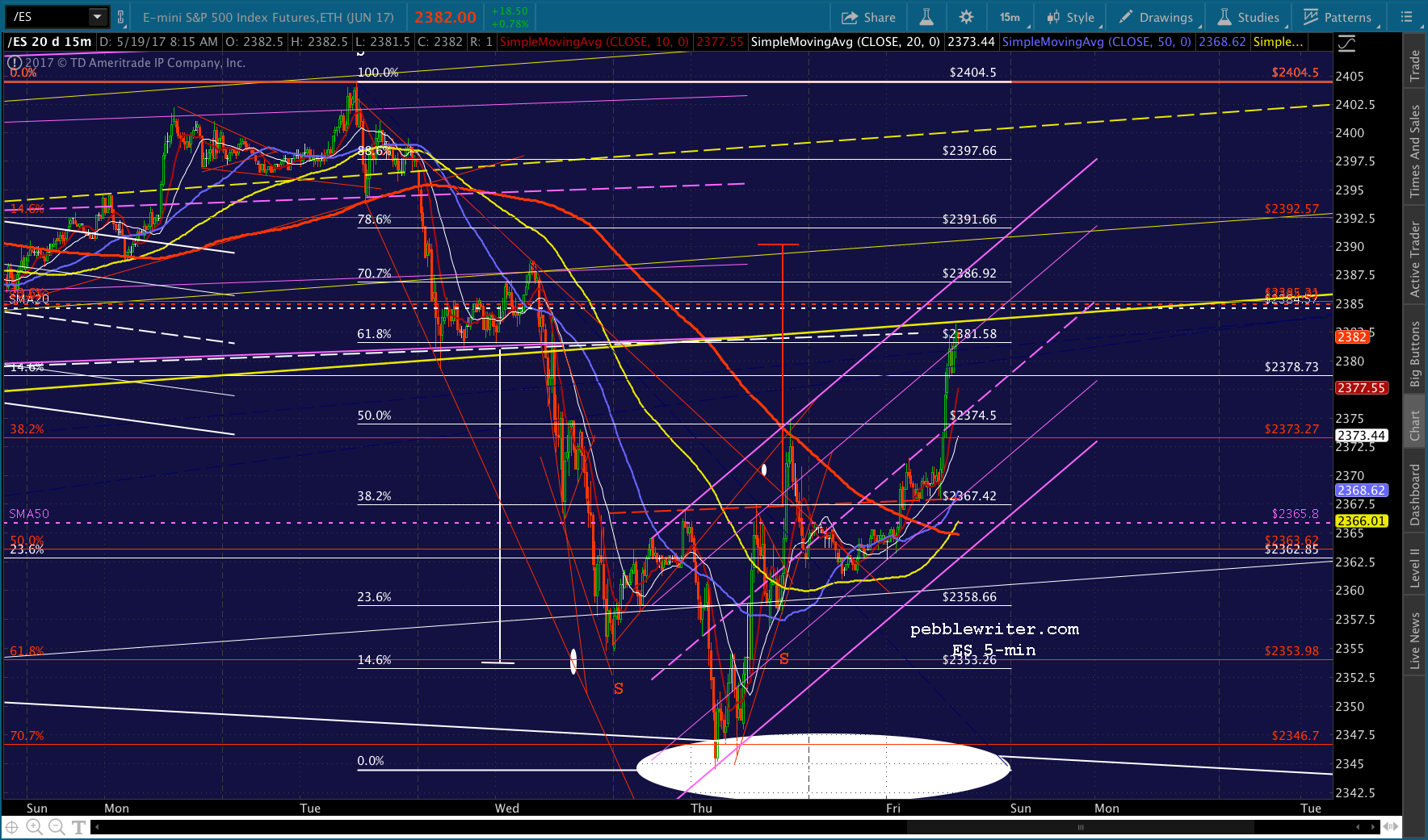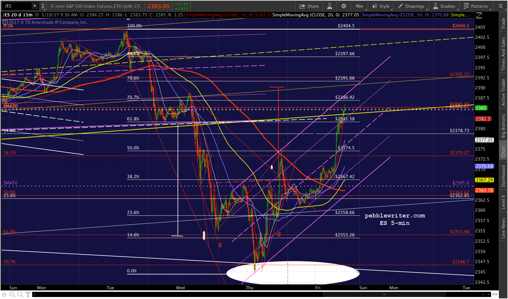 This might just be one of those wonderful algo moments when it keeps increasing a nickel every minute until the close. I’ve pulled two all-nighters this week, so I’m going to call it a day. I’d cover the short on any move through the yellow channel bottom around 2388.77.