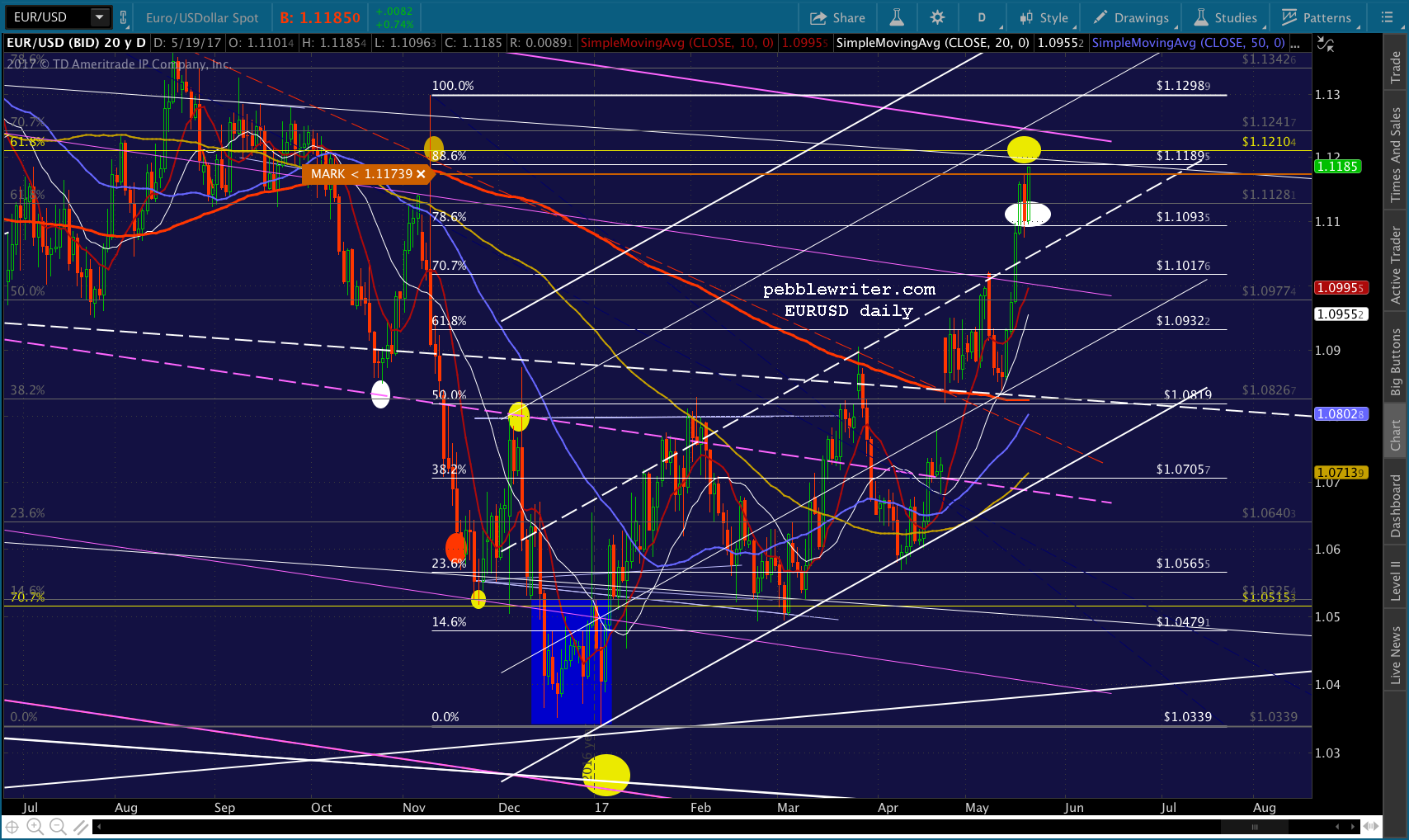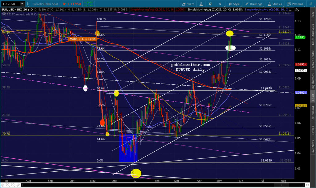 On the other hand, EURUSD is almost to our next upside target and USDJPY is nearing its next downside target. In short, the currency picture should be about to do a 180.