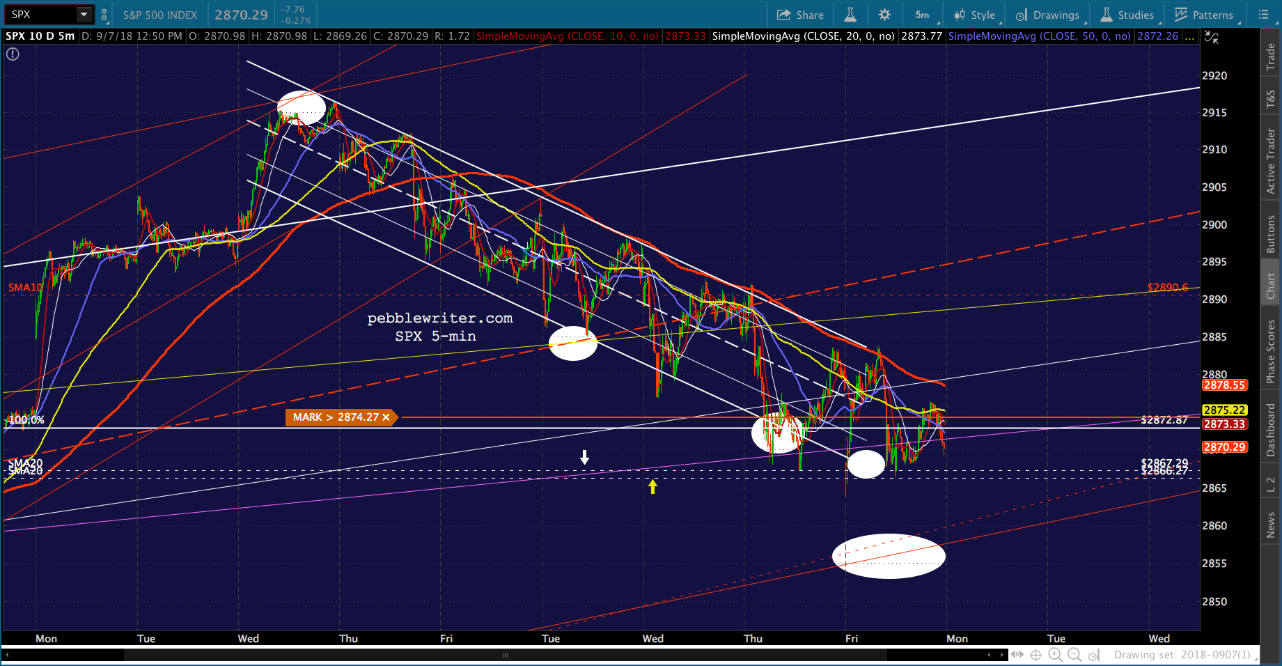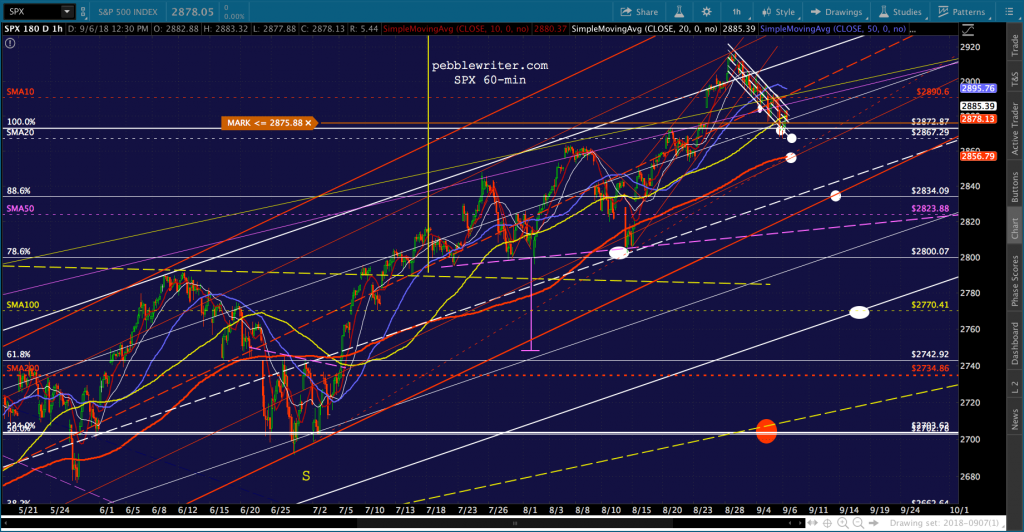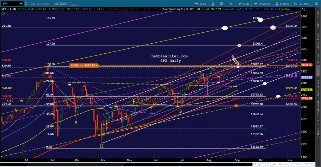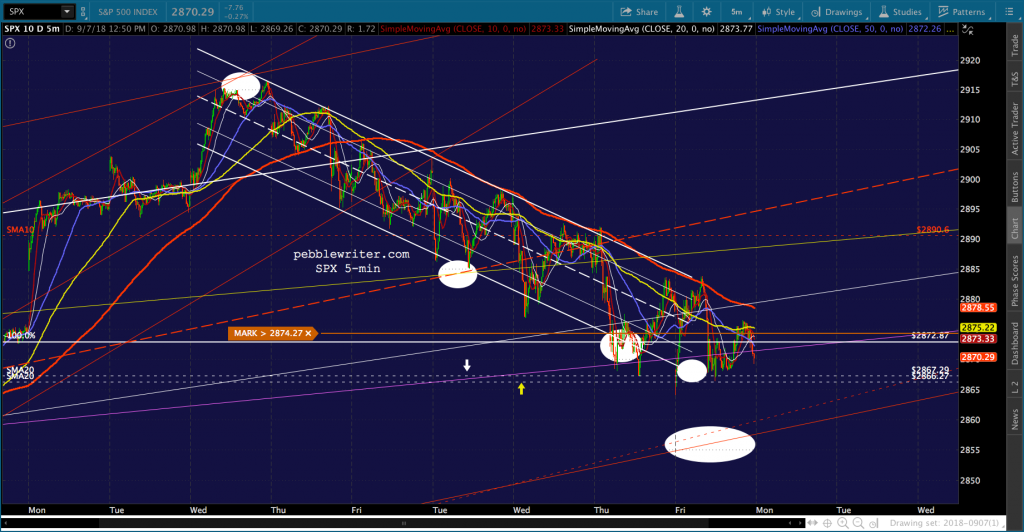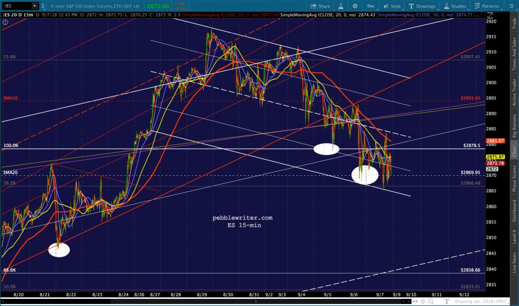 Awful news on the trade/tariff front (tariffs on the entirety of our purchases from China, really?), but TPTB are doing a decent job of propping it up. I imagine they’ll ramp it out of the falling channel over the weekend, but there’s the risk that things tank after this prop job.