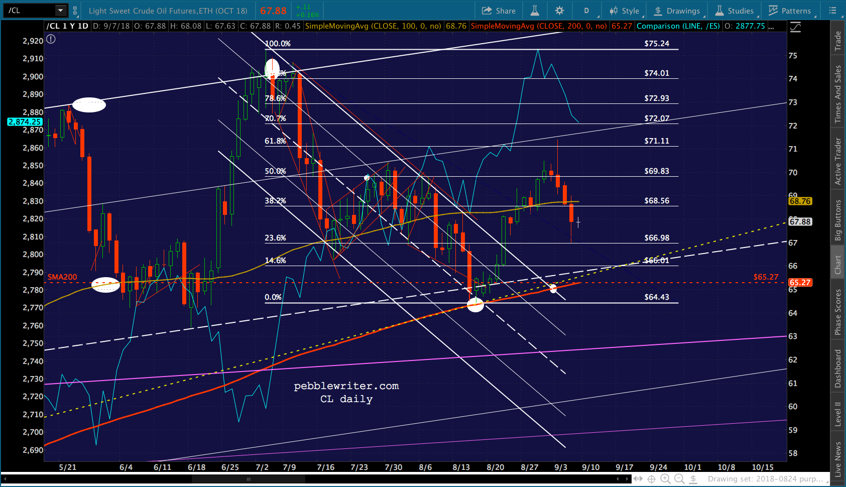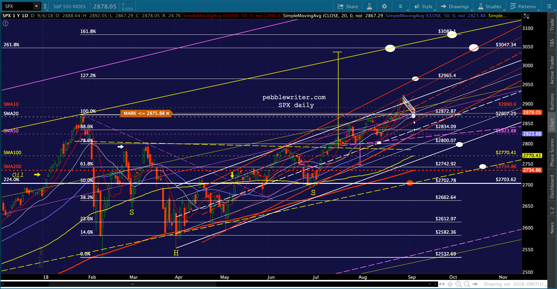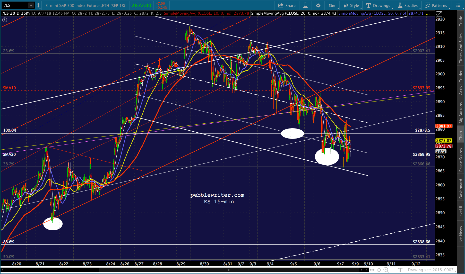 Awful news on the trade/tariff front (tariffs on the entirety of our purchases from China, really?), but TPTB are doing a decent job of propping it up. I imagine they’ll ramp it out of the falling channel over the weekend, but there’s the risk that things tank after this prop job.