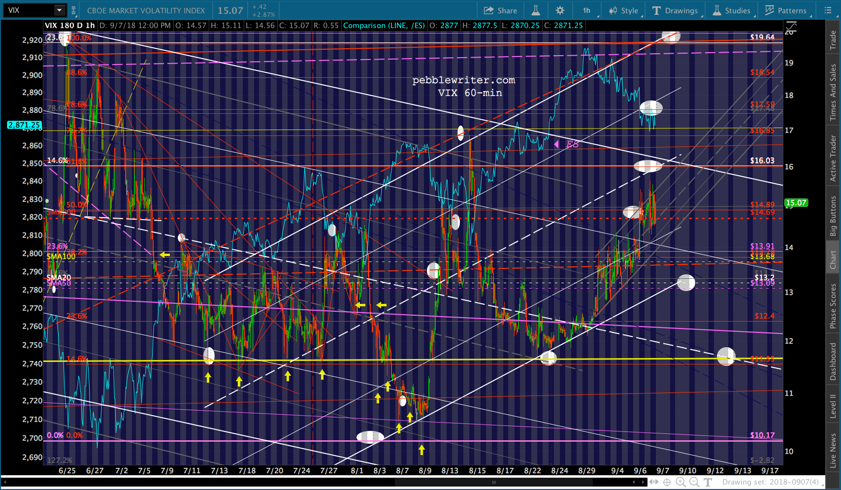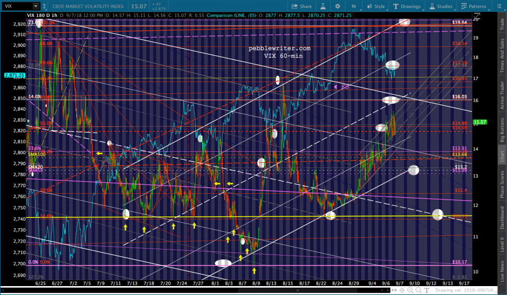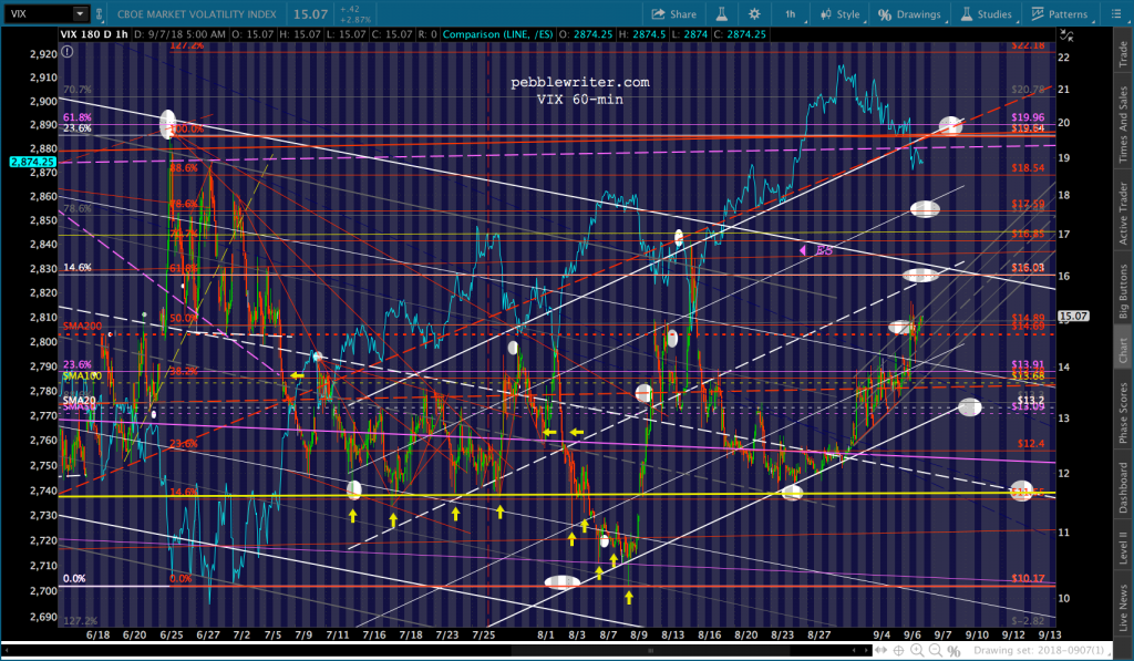 For those who took profits yesterday, I’d only consider a long VIX position with very tight stops. Odds are, TPTB will pull out the stops to hold 2872 and VIX will be back down to 11.6 in the next few sessions. Unless they don’t.