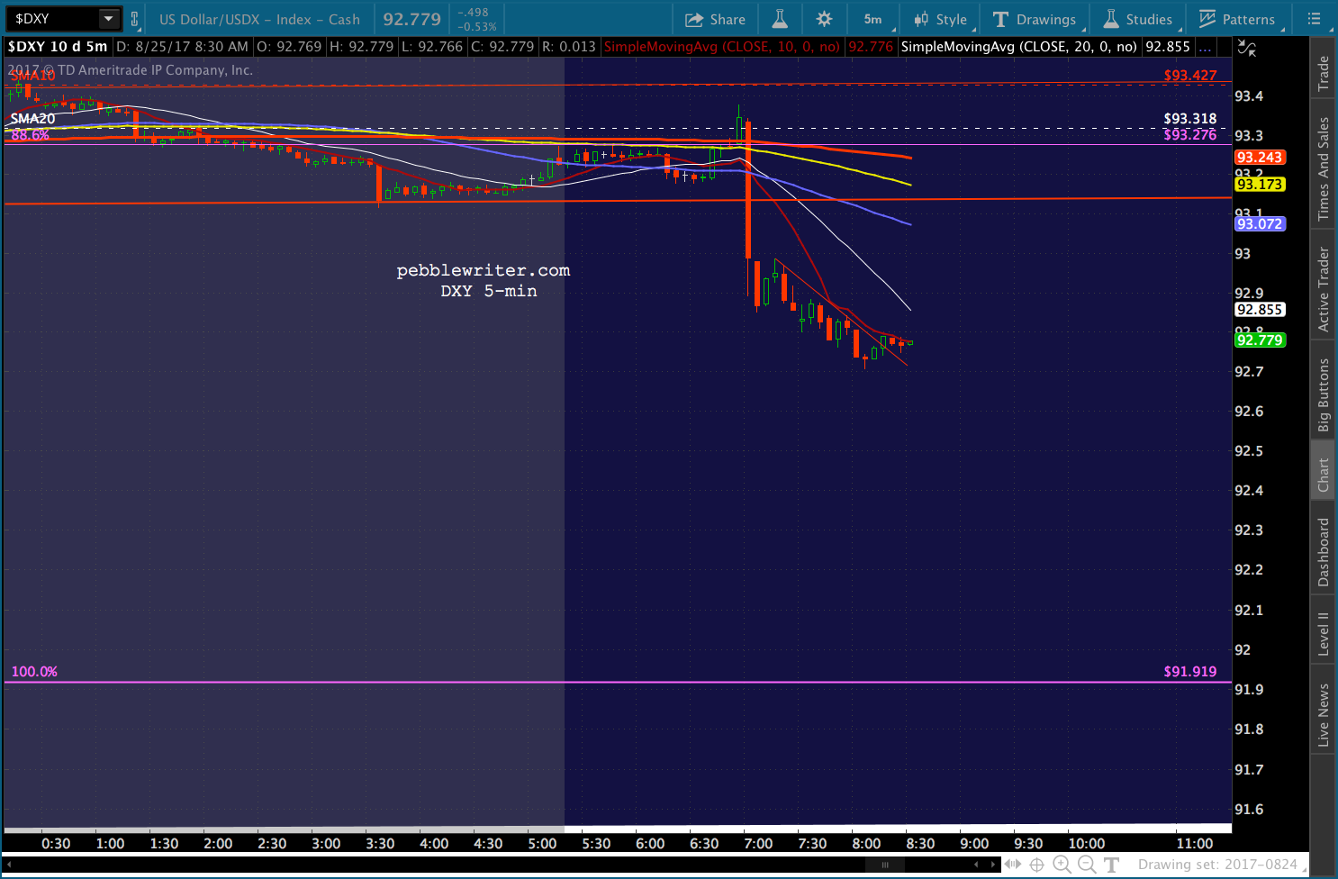 We’ll want to watch DXY for signs of slowing. Ideally, for shorts, it would remain below the SMA5 10.