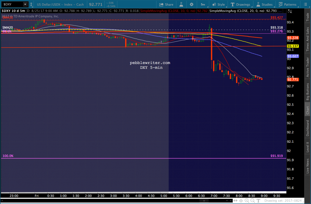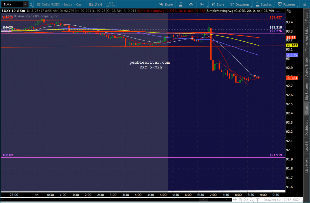 I still see CL heading lower, though it’ll be interesting to see if TPTB can force it in the face of Hurricane Harvey. DX and USDJPY have more to go.