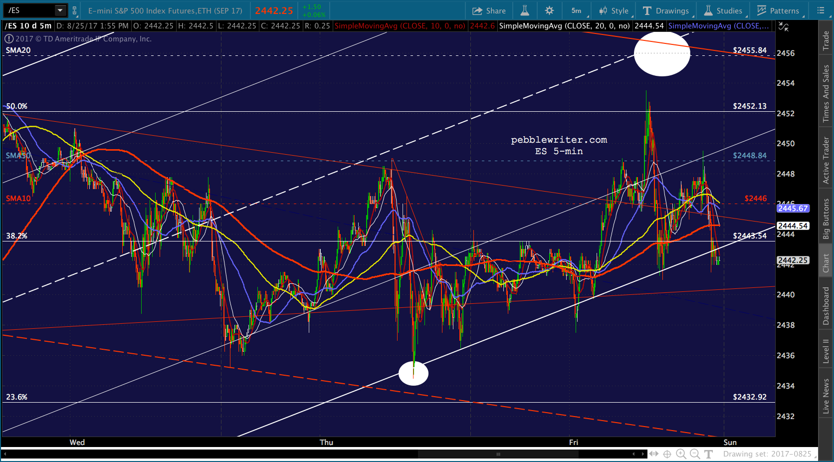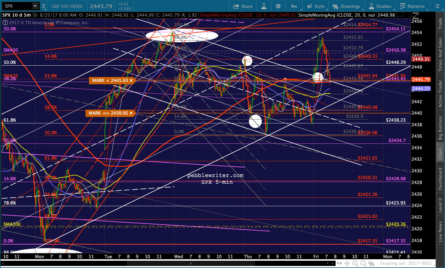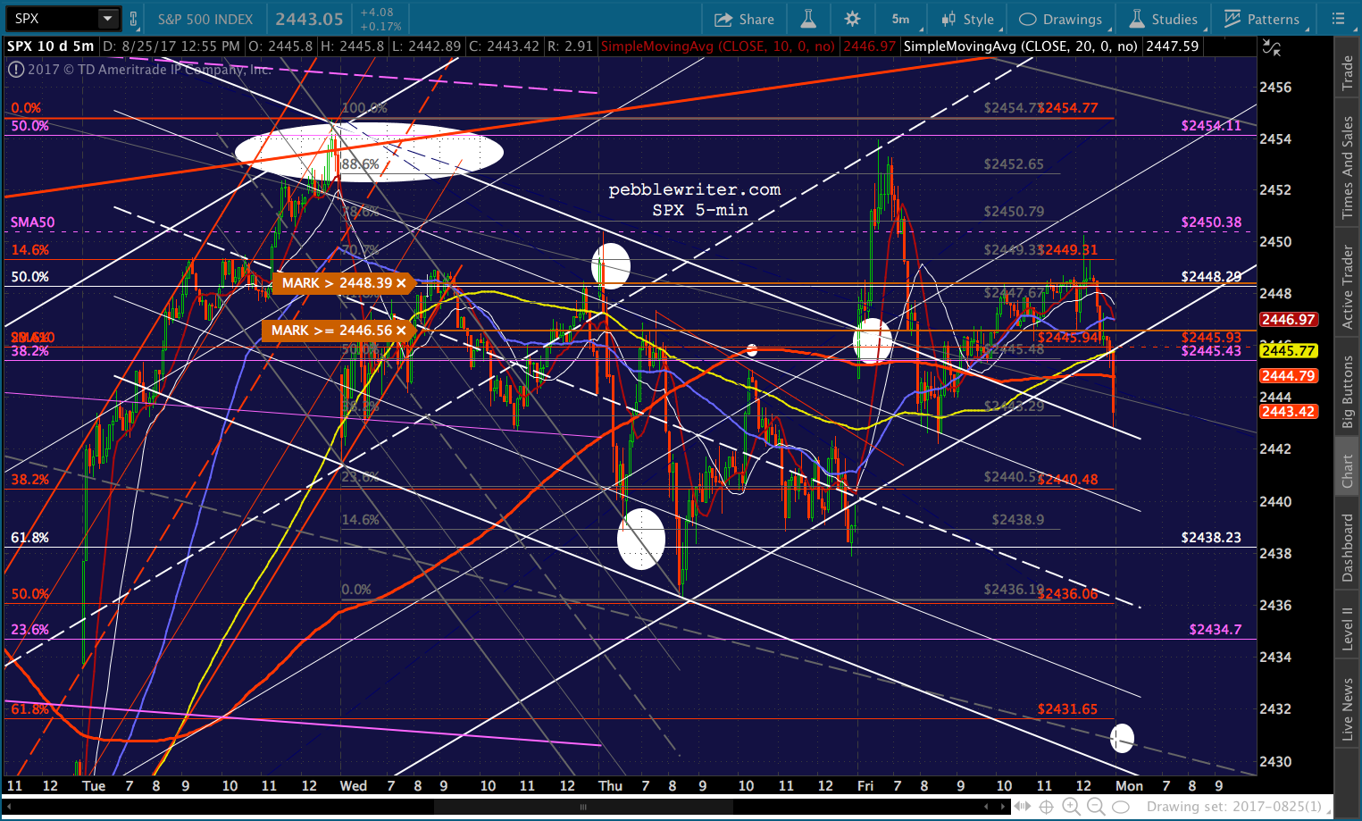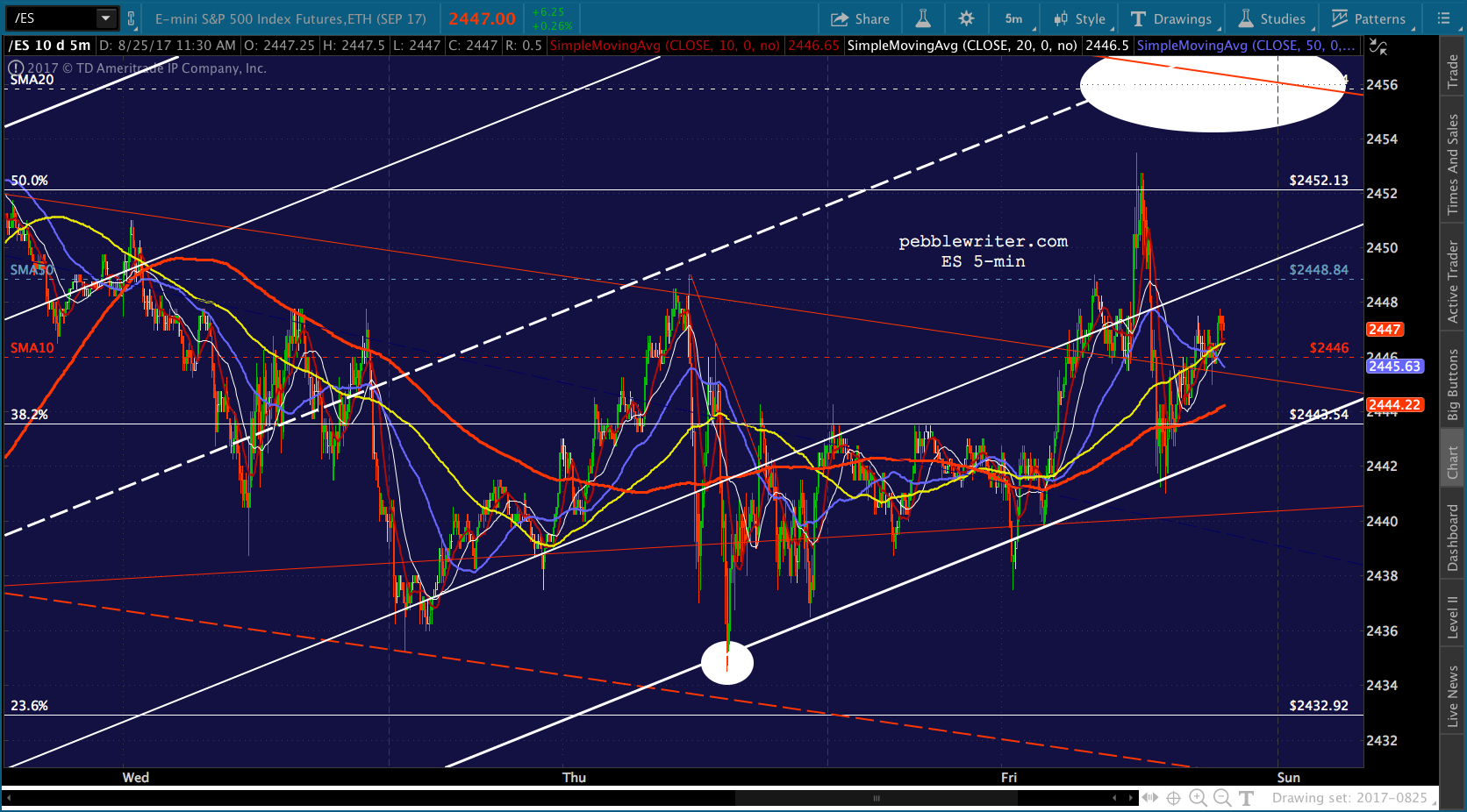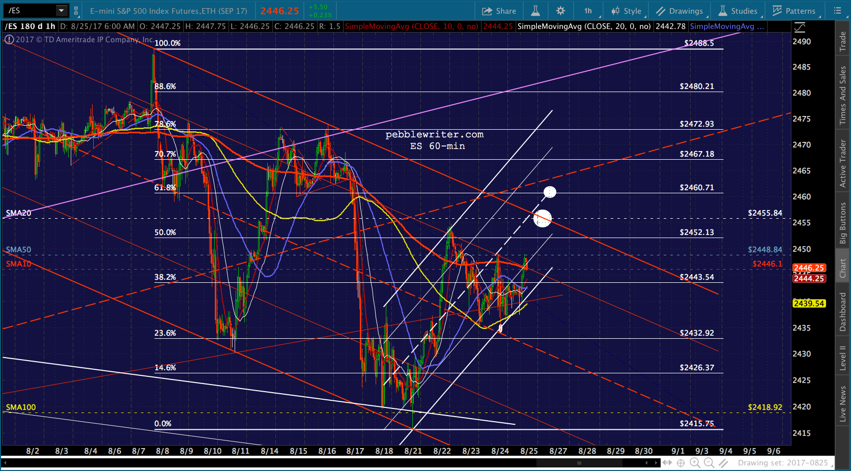 Bottom line, I’d want to be short anywhere south of the SMA10 at 2445.93. I’m going to run some errands, will be back in an hour or so.