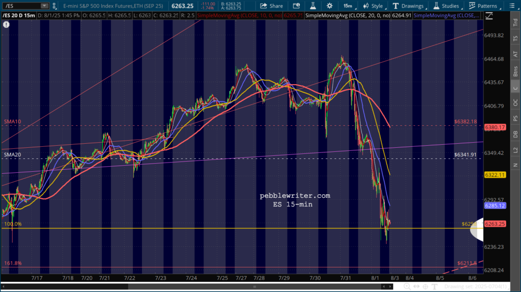 Equities didn’t take well to news of the economic slowdown nor the realization that the White House will be providing future “data” releases to McEntarfer’s replacement.