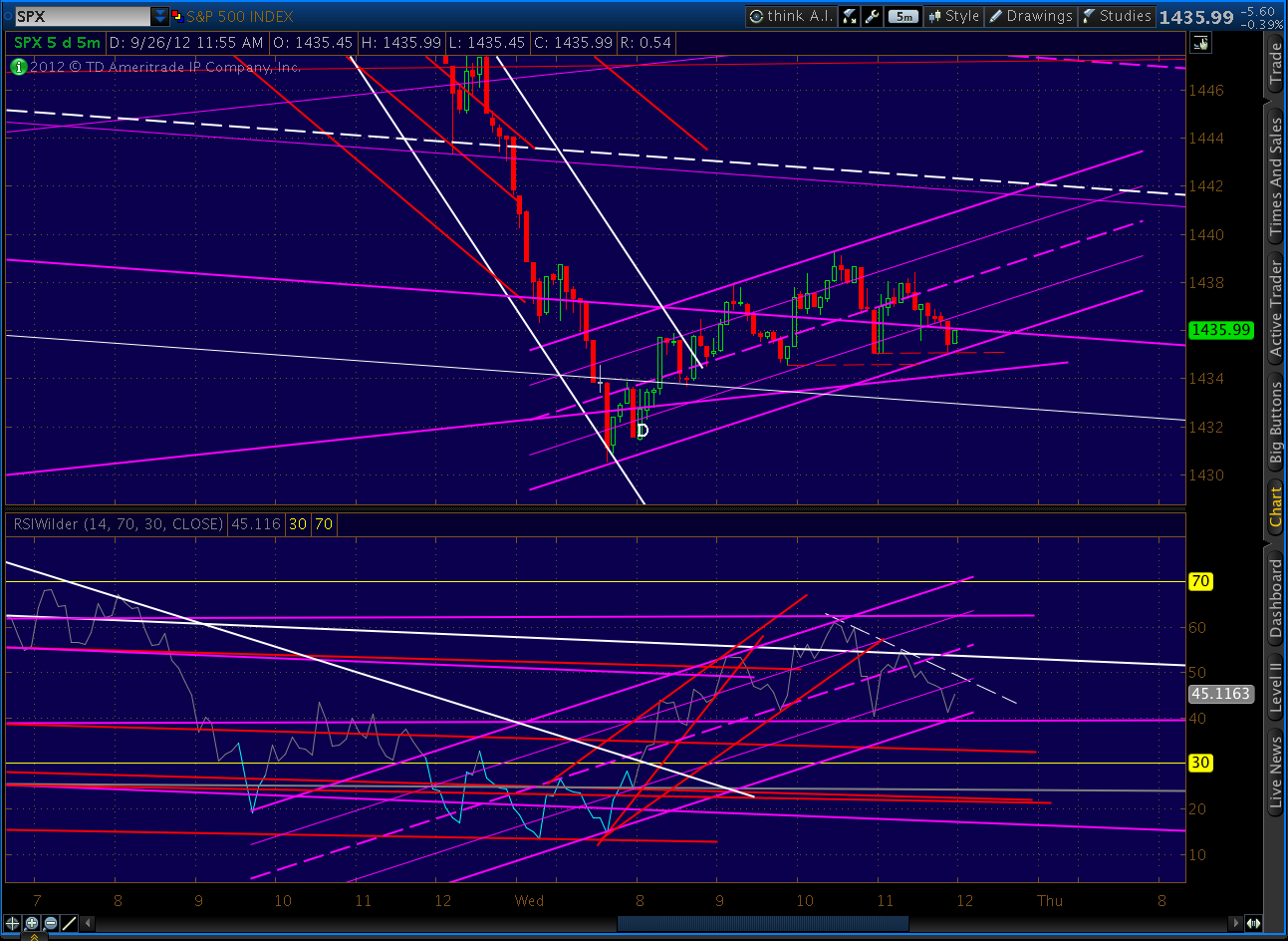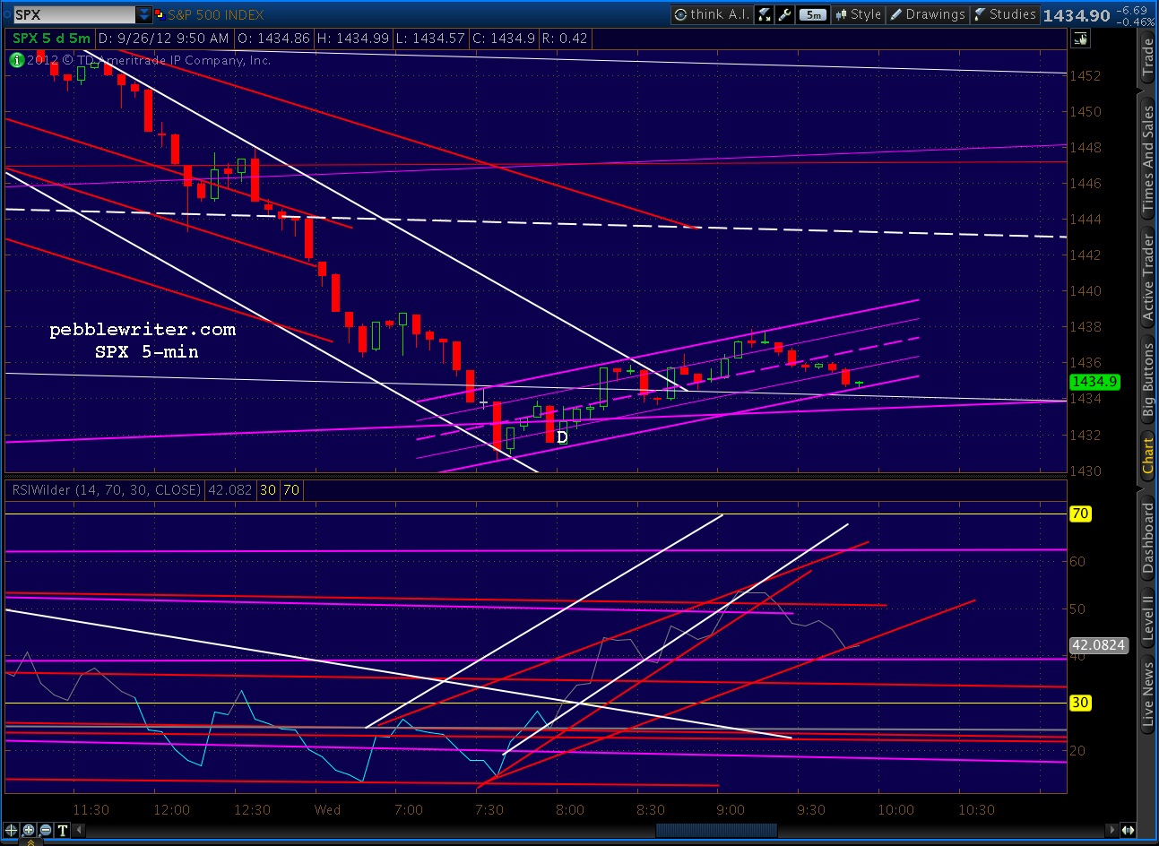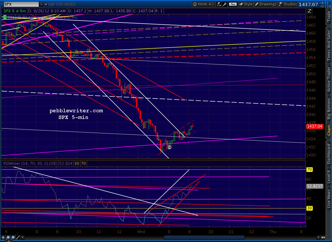 So far, so good. The red RSI RW expanded to a channel as discussed above. The resulting price channel currently targets 1440-1444 by EOD, but that’s just a place holder number for now.