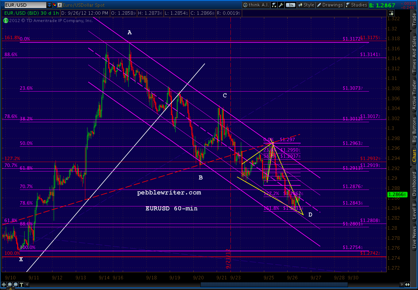 And, the same for EURUSD on the 60-min chart. Finished off a Gartley and a Crab very deep into a falling wedge right at the channel midline. Remember, the currencies are the grown-ups in the room, and are “right” much more often than equities about direction changes.