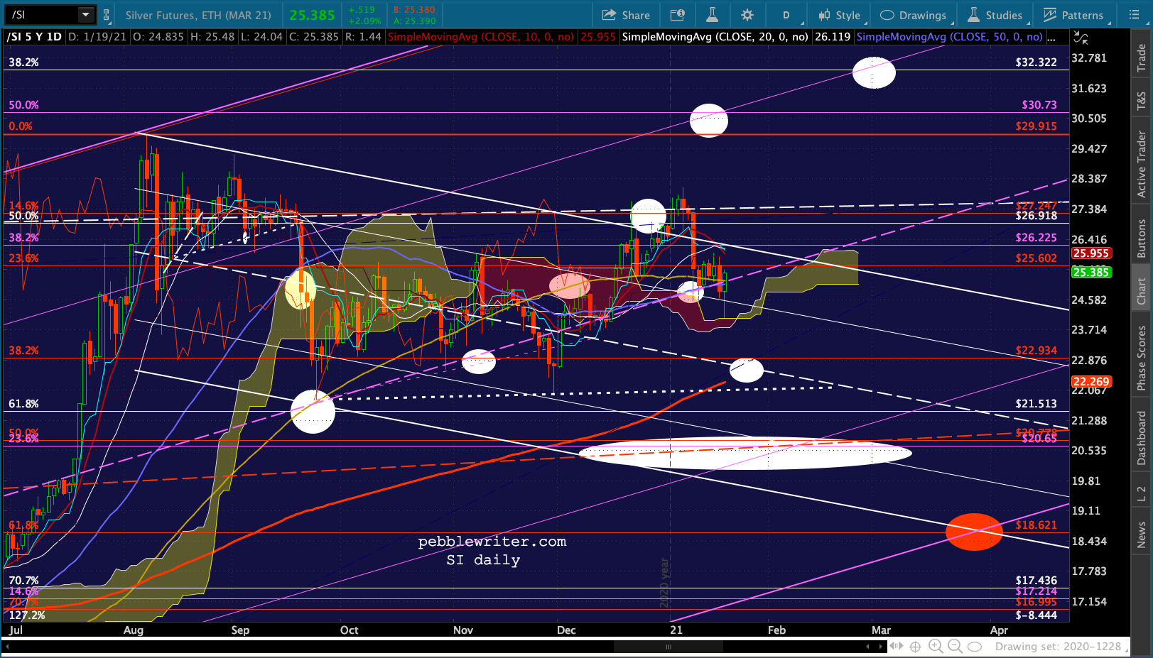 SI is holding up better, but has further downside if it can’t remain above its cloud.