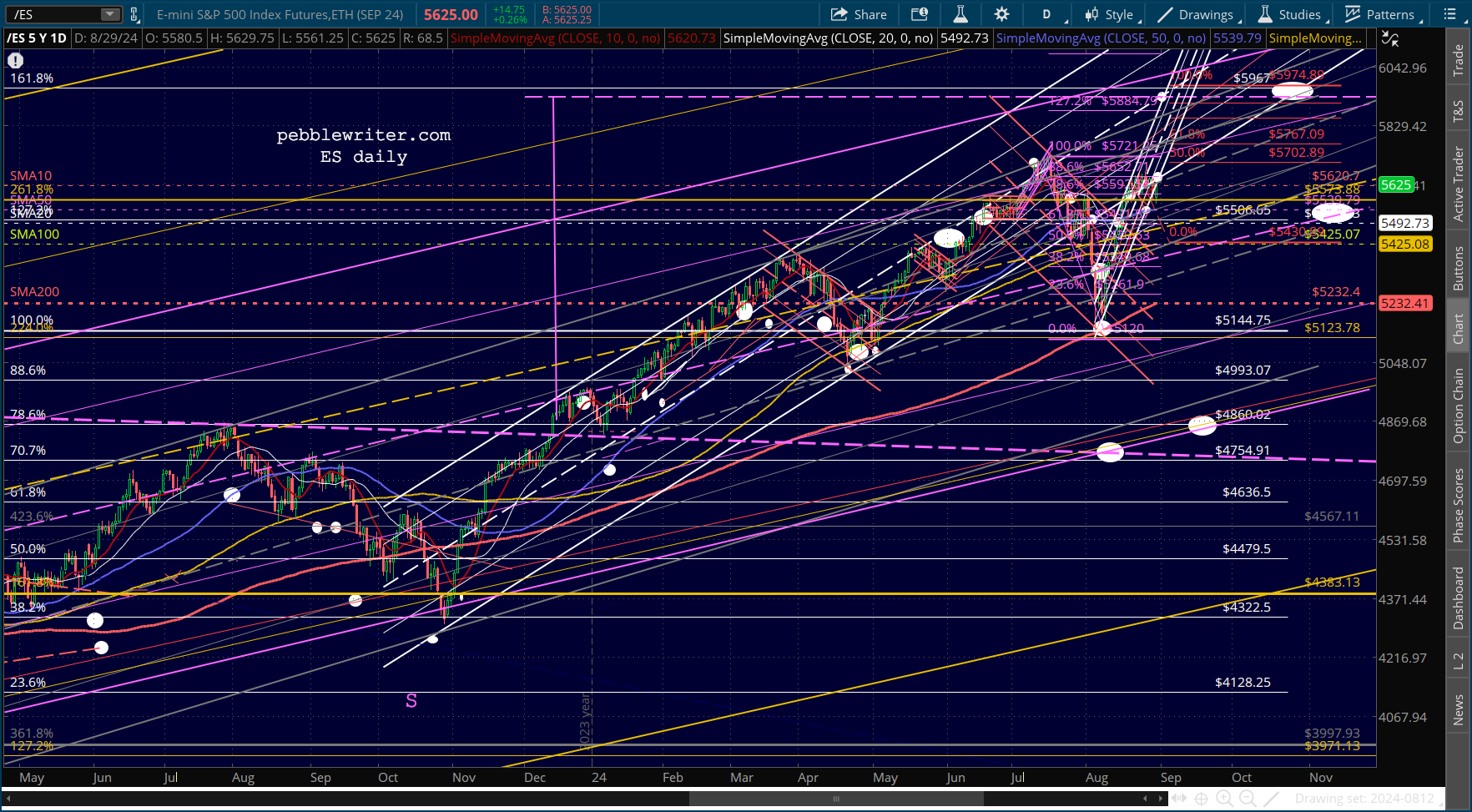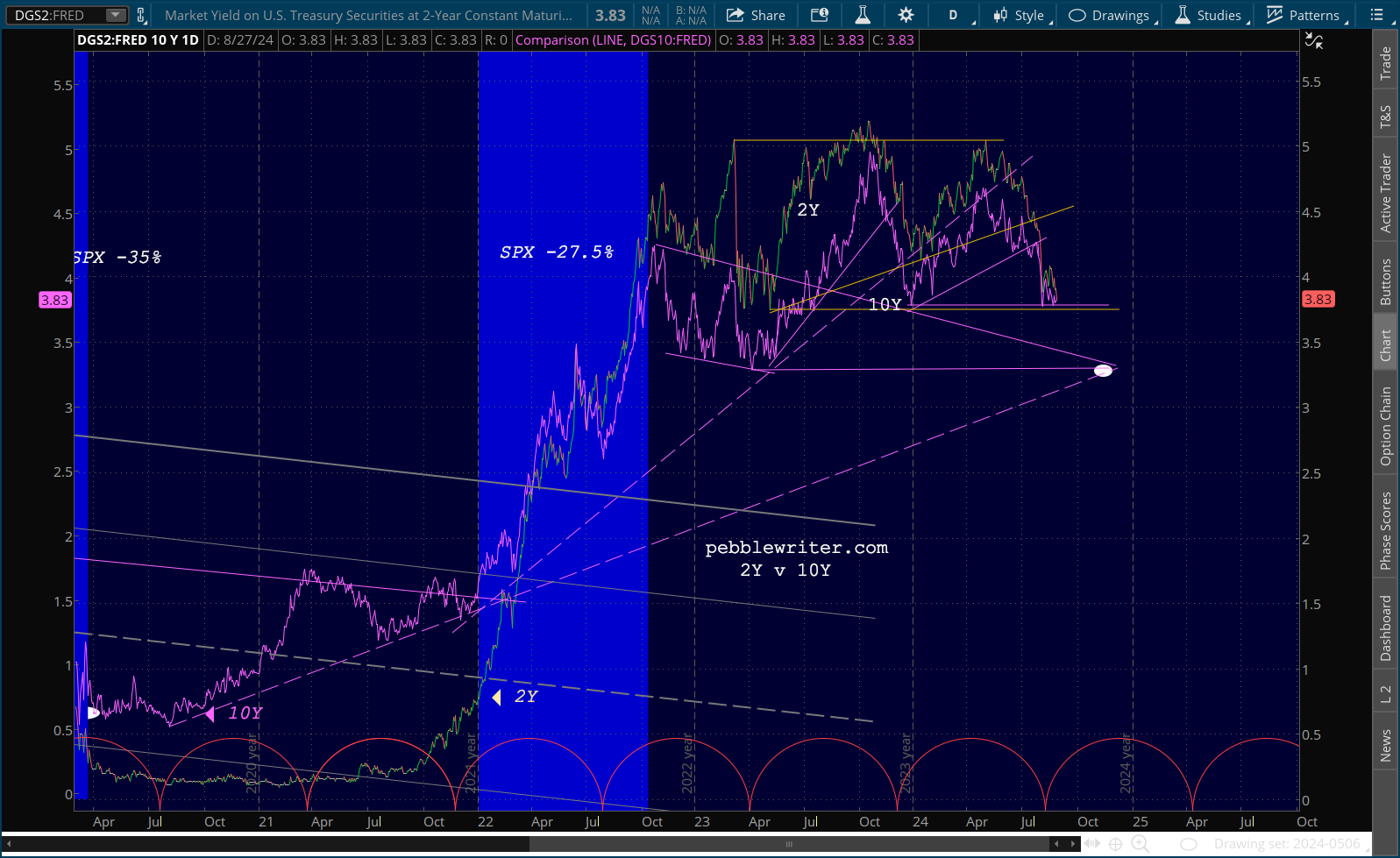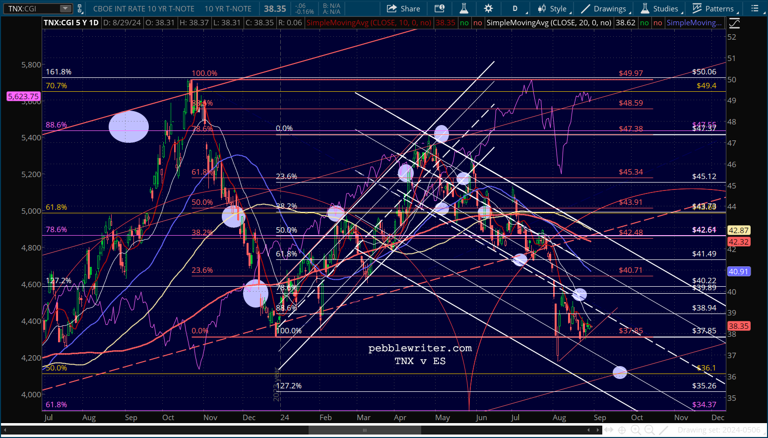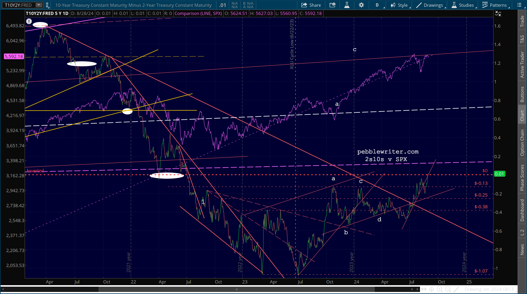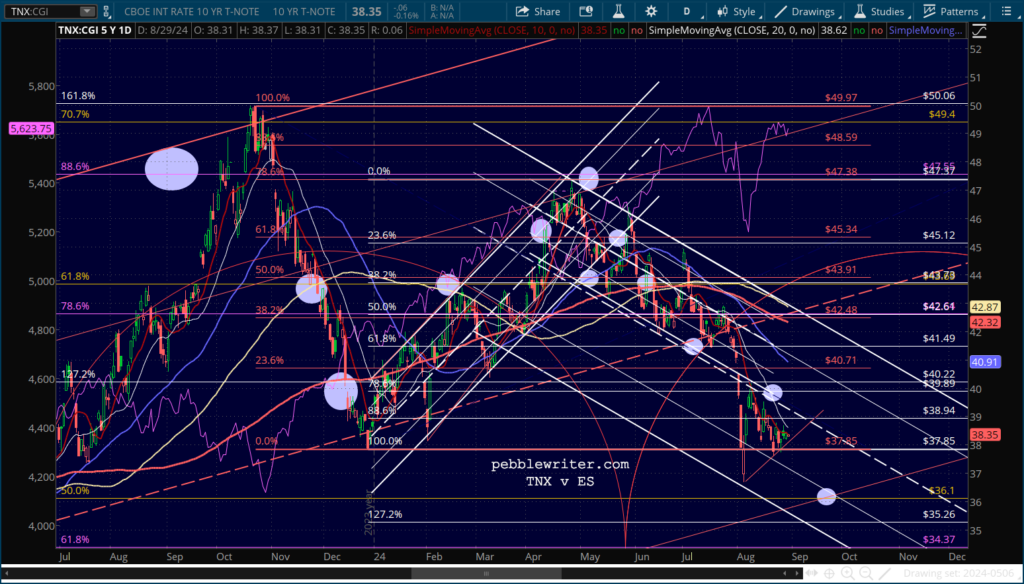 Although, it should be noted that ES has now broken down from its rising white channel just like SPX already had.
