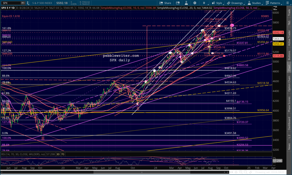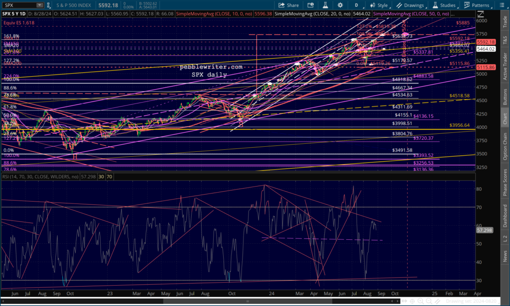 Note that SPX’s RSI is backtesting an internal TL of resistance which has signaled several prior dips.