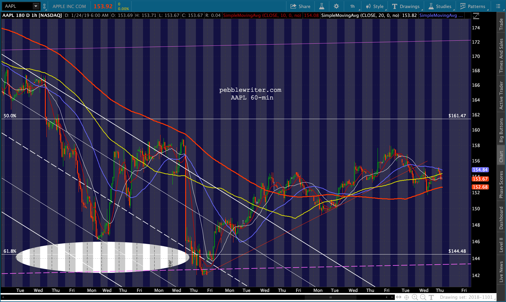 AAPL reached its SMA5 200 yesterday and still needs a backtest. A drop below 152.70 would be a good signal that it’s time to short for a backtest.