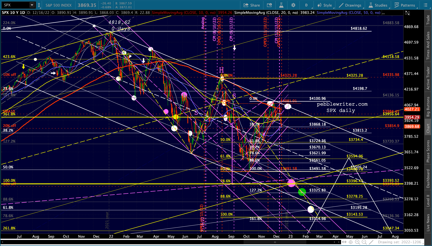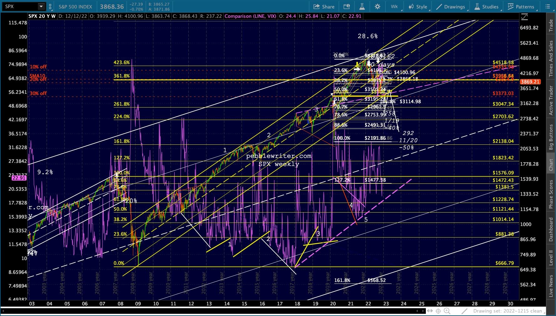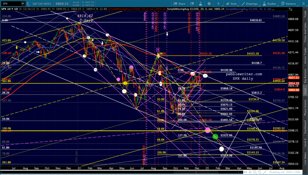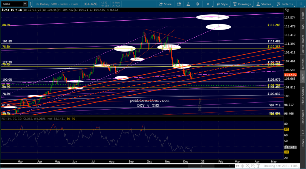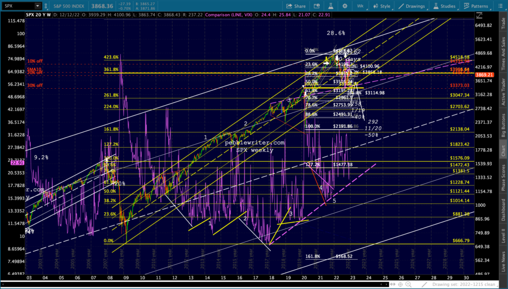 In general, these targets presume that SPX can remain in its rising yellow channel. The only time since 2009 it hasn’t was the pandemic crash in 2020 when central banks and treasuries around the world moved heaven and earth to prevent a greater depression.