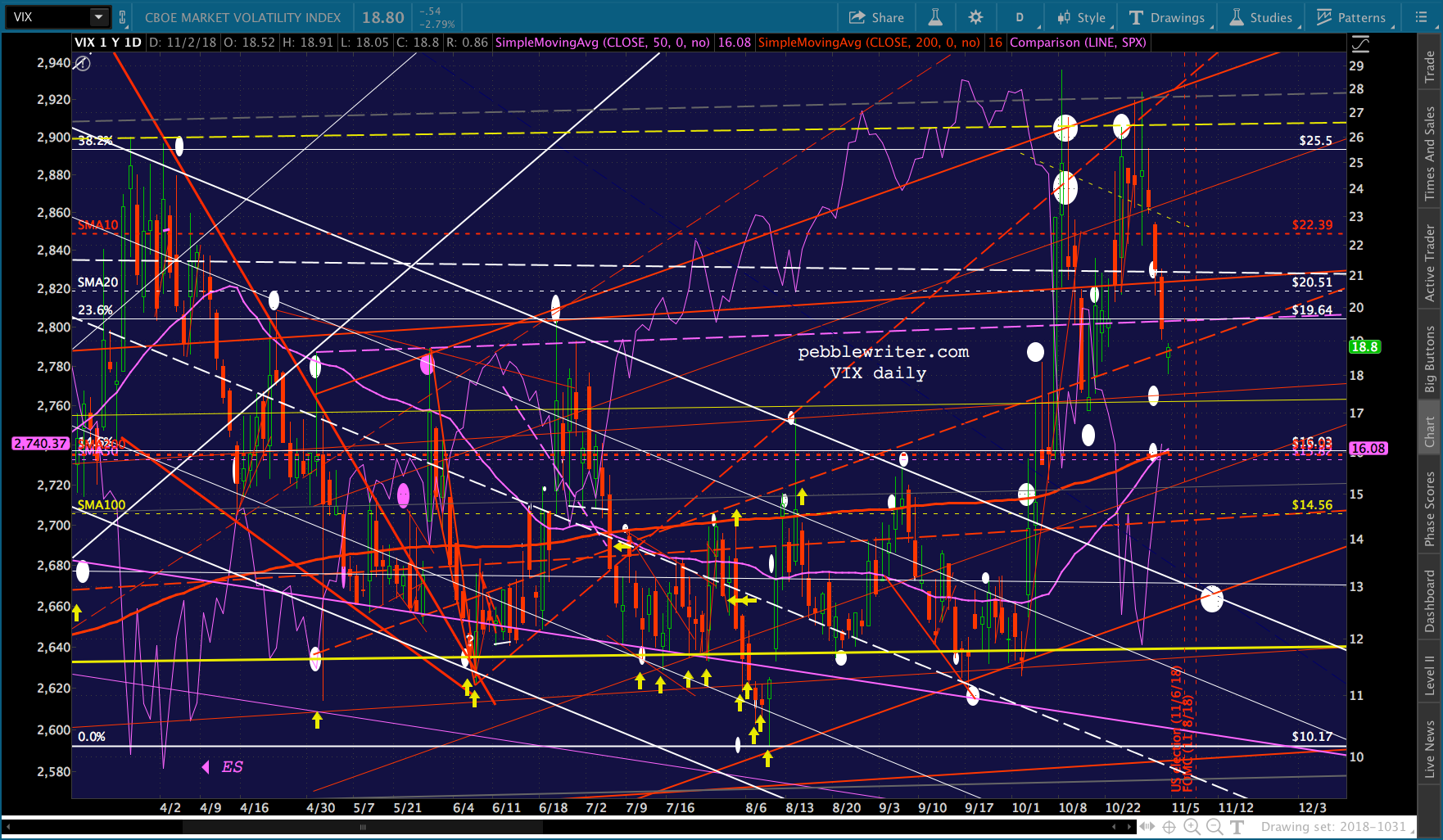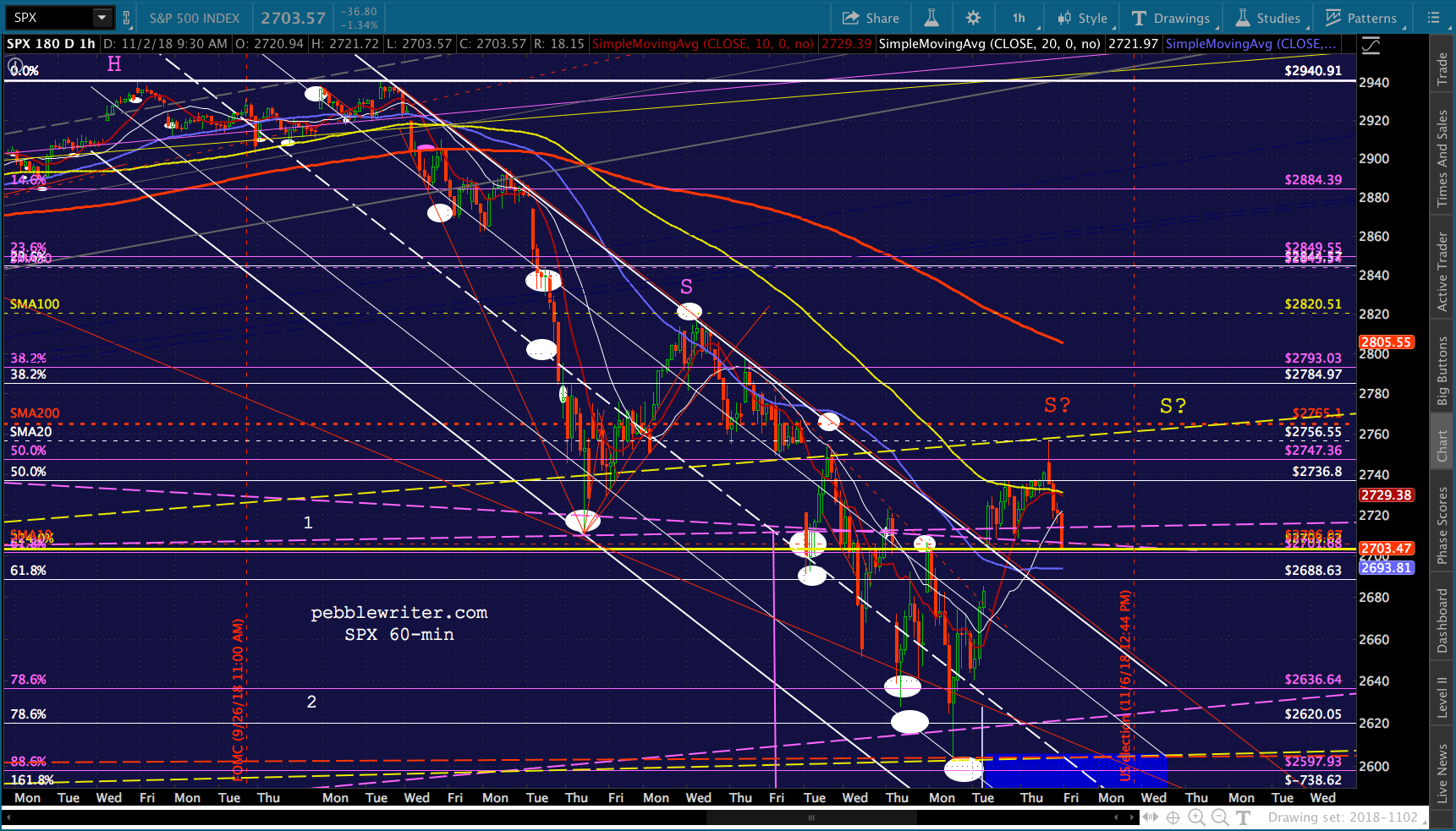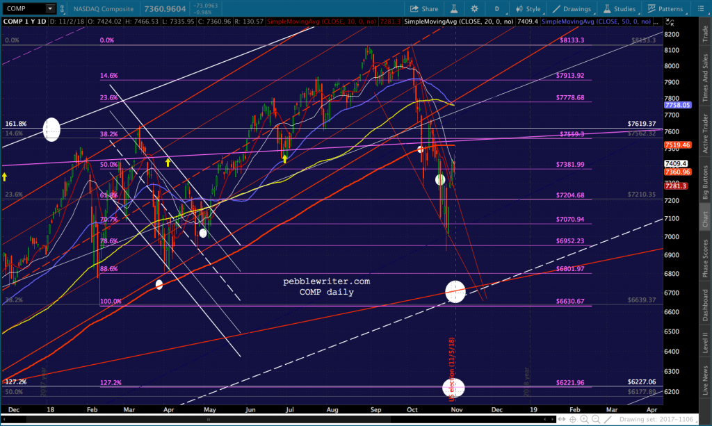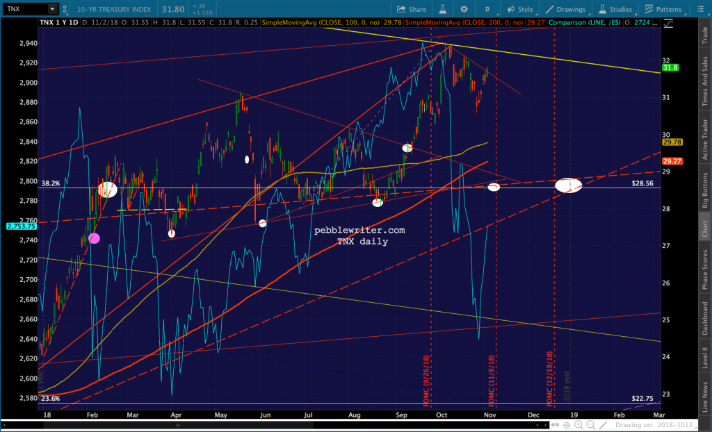 Quick update on SPX, which just reached its 2.24. Needless to say, important support – as is ES’s white channel backtest. The selloff will either pause here and retreat or pause and plunge lower. I feel that that the oil and gas selloff should end by next Tuesday, given that it’s election day.