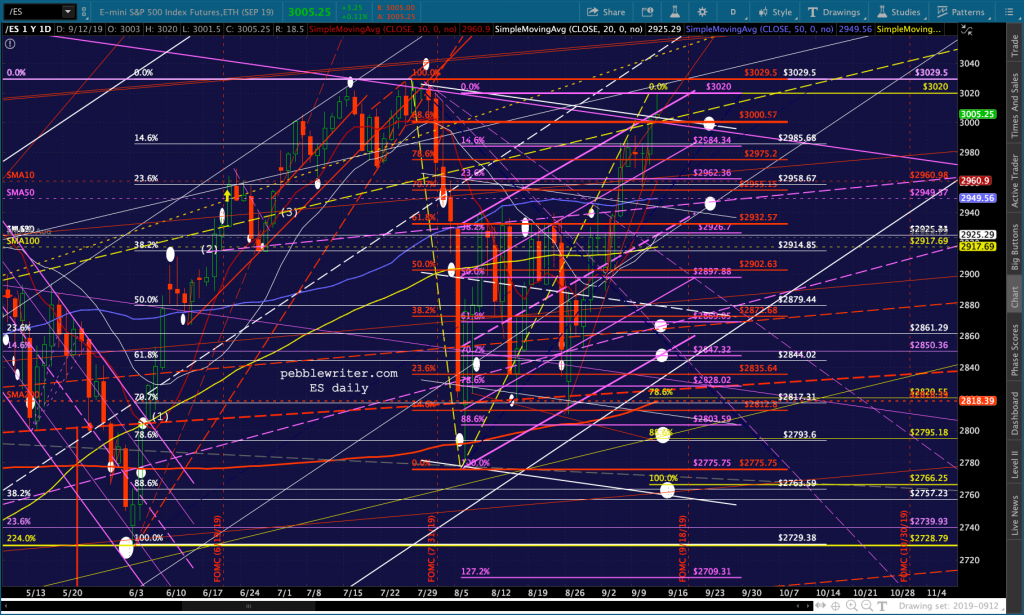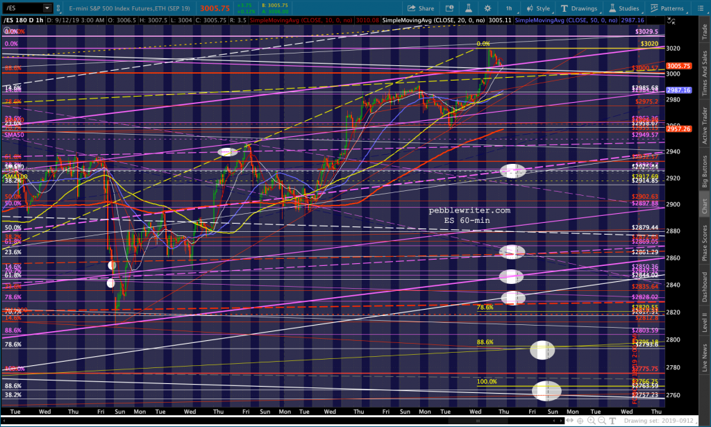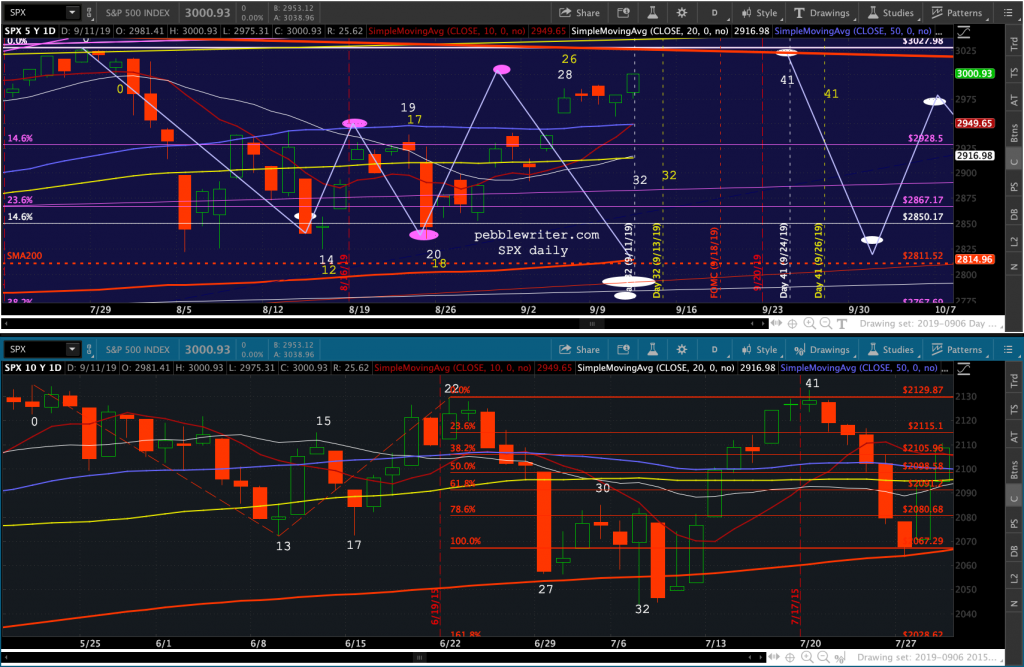 Whether or not the futures can cling to a small gain until the cash market opens is irrelevant to. From a Fib standpoint, yesterday’s finish is close enough. What matters is whether we get the swift downdraft to new cycle lows that the analog forecast in July.