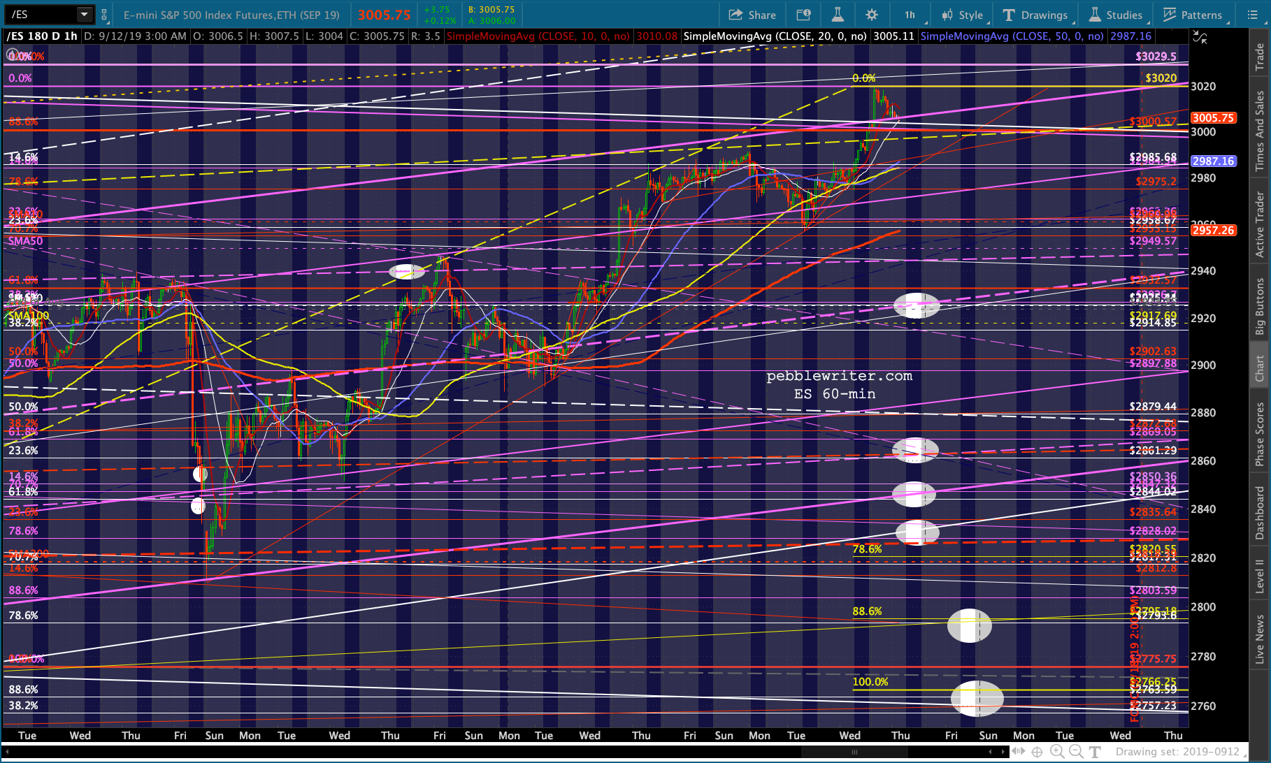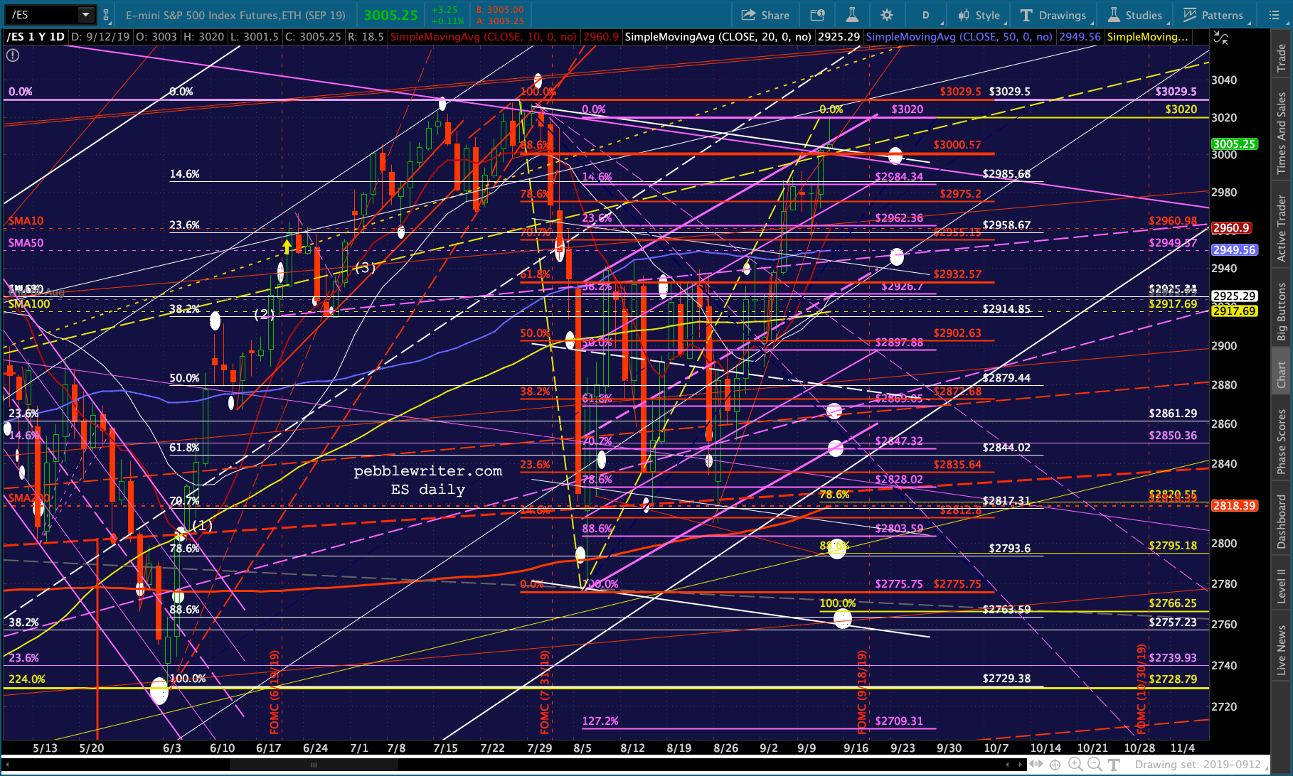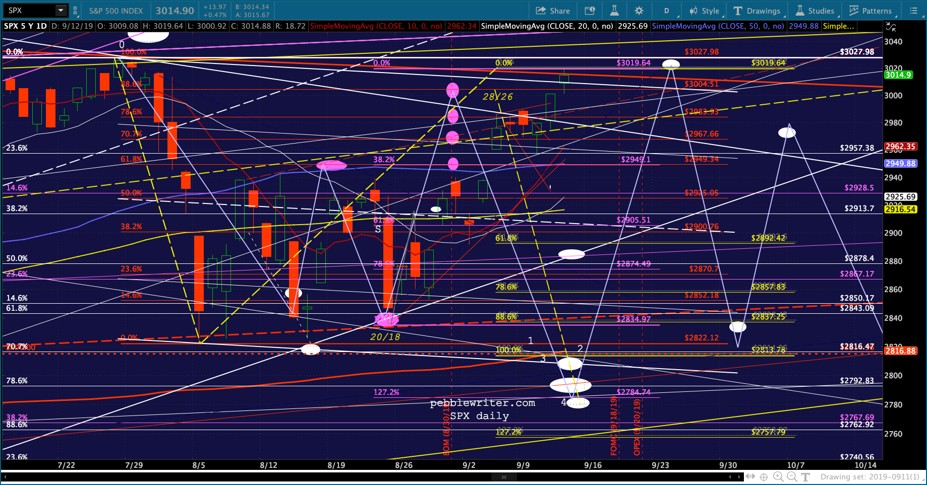 I don’t know how high SPX will pop on the open. But, if it were to reach exactly 3004.51 then the C=A target would be 2798.65 – quite close to the white .786 at 2792.83.