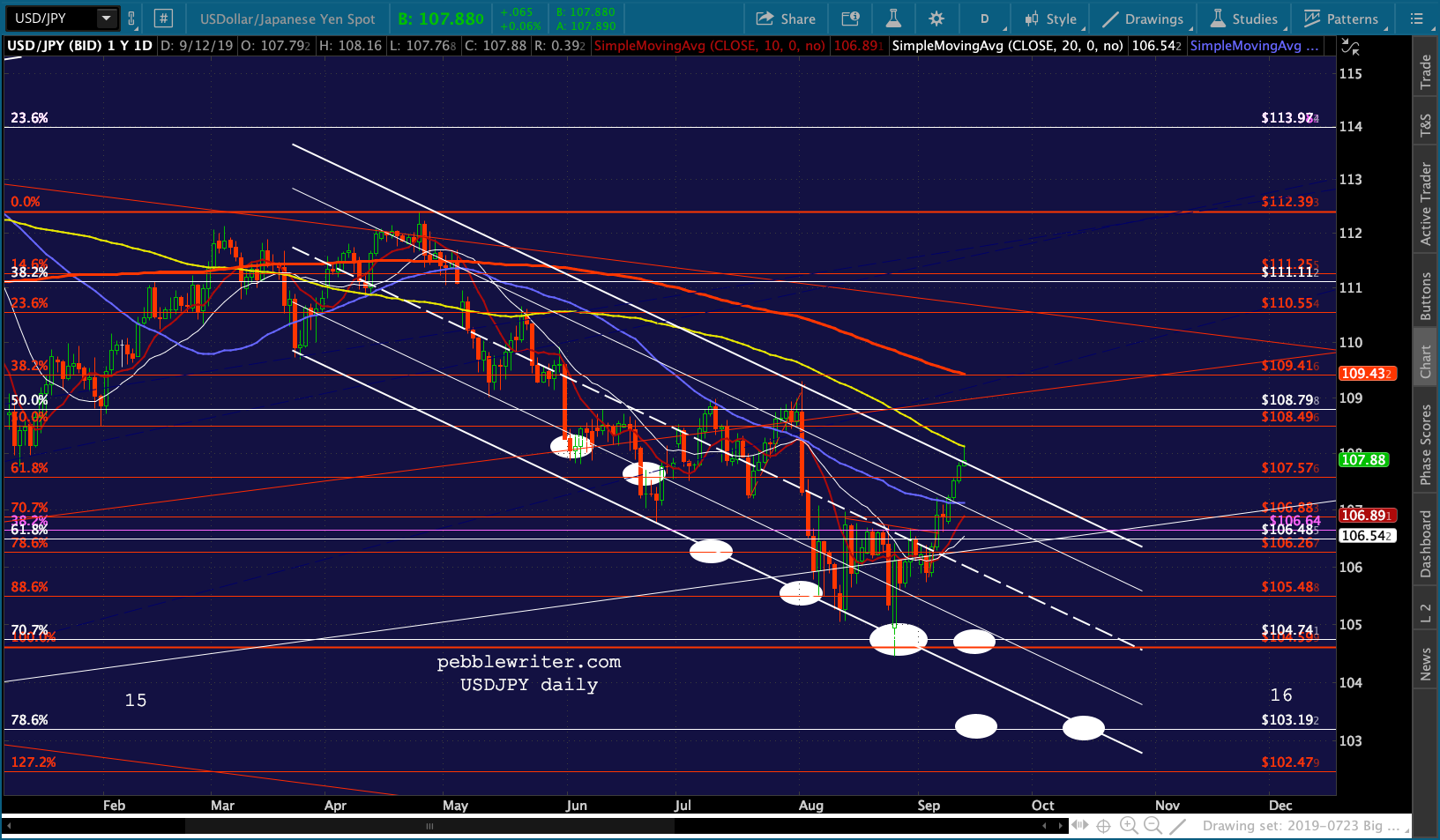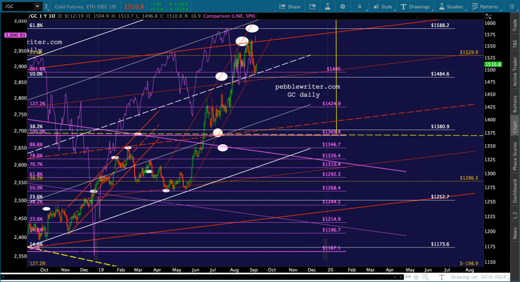 And, gold should get a nice bounce here off the purple midline — ideally reaching the .618 at 1588.20.