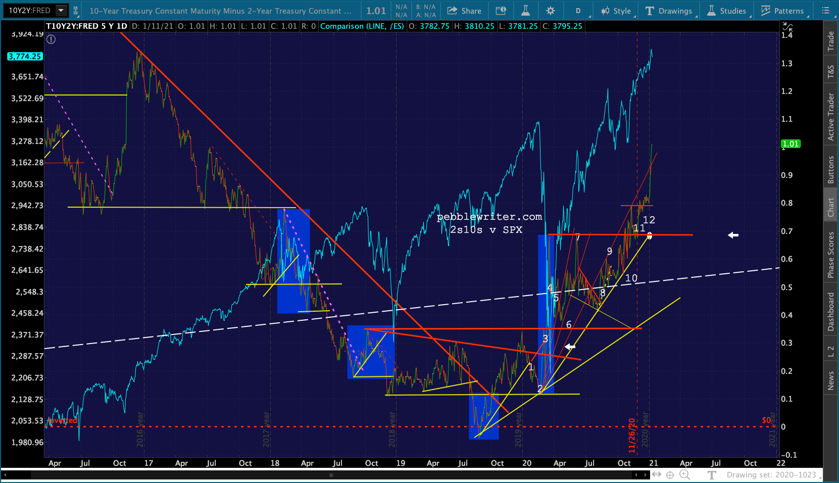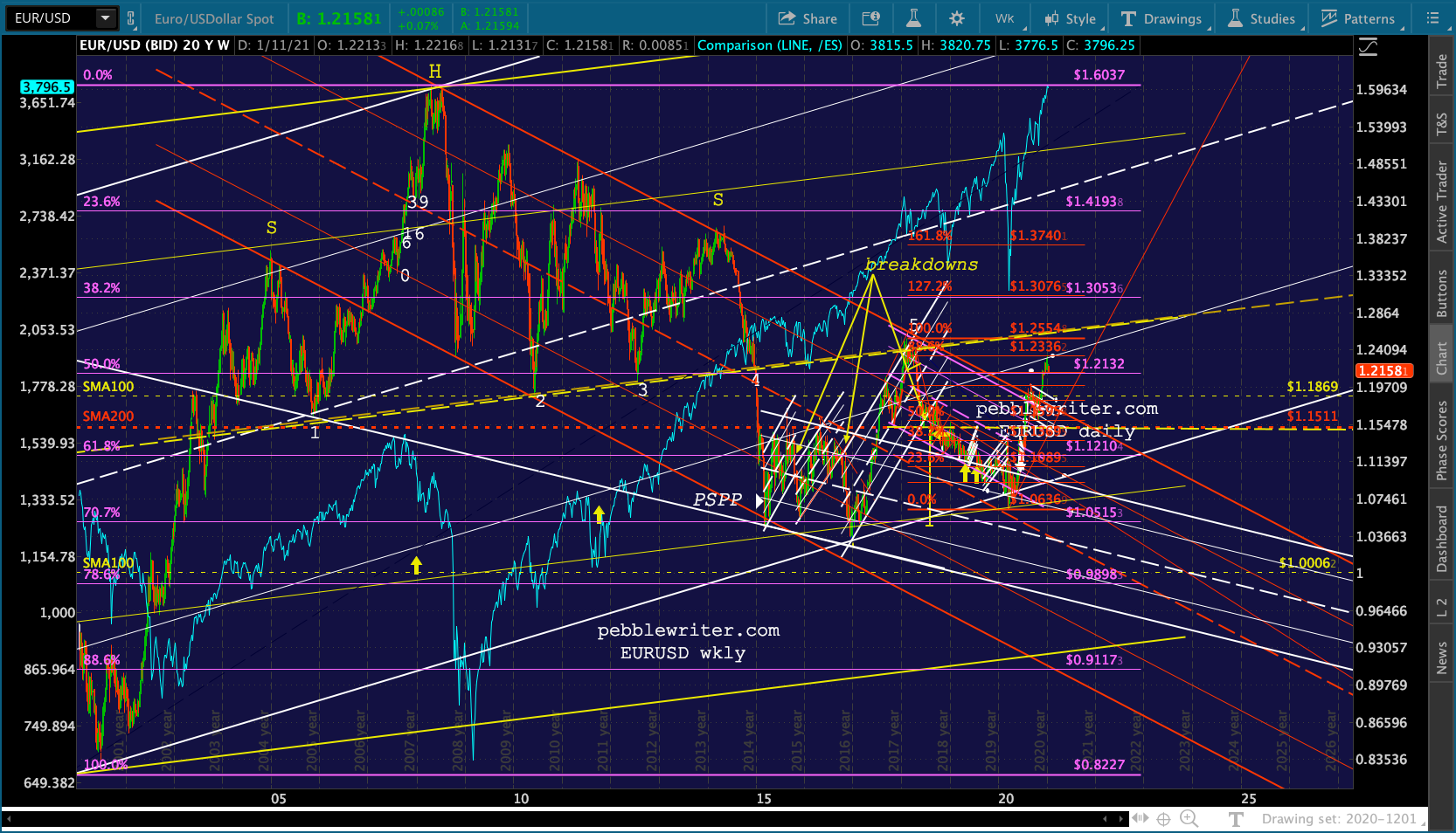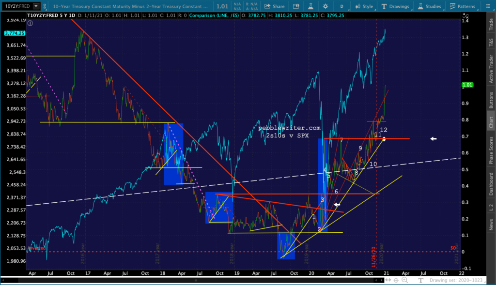 If you were in charge of propping up stocks for the Fed, you’d certainly notice this and would be hesitant to bring it to a halt. Therefore, you enabled a breakout of the red channel going all the way back to 2005 around Dec 1, 2020.