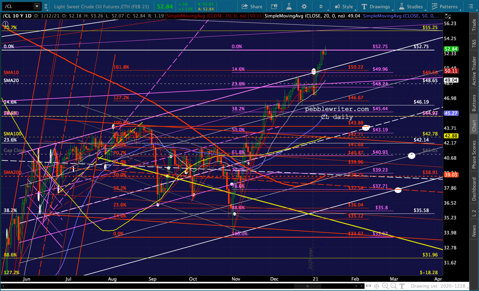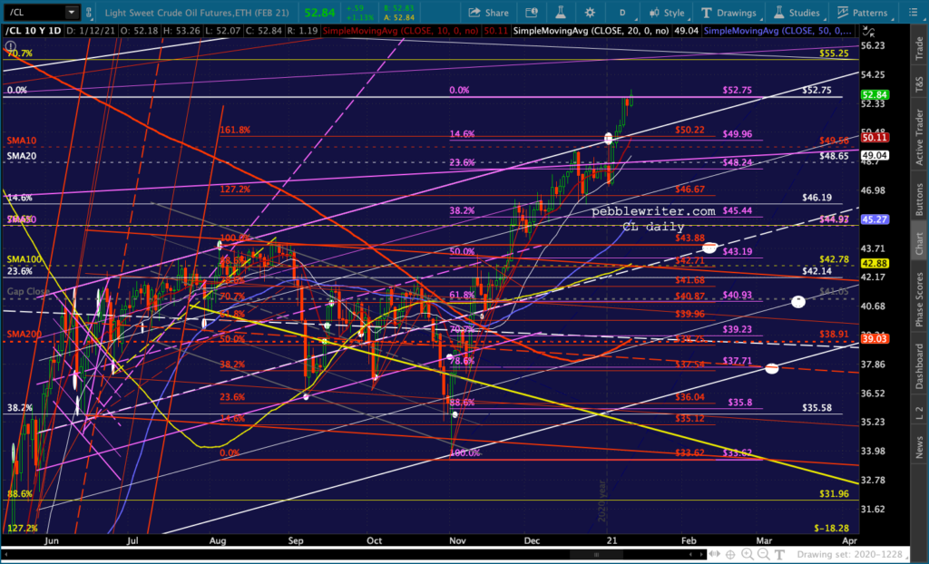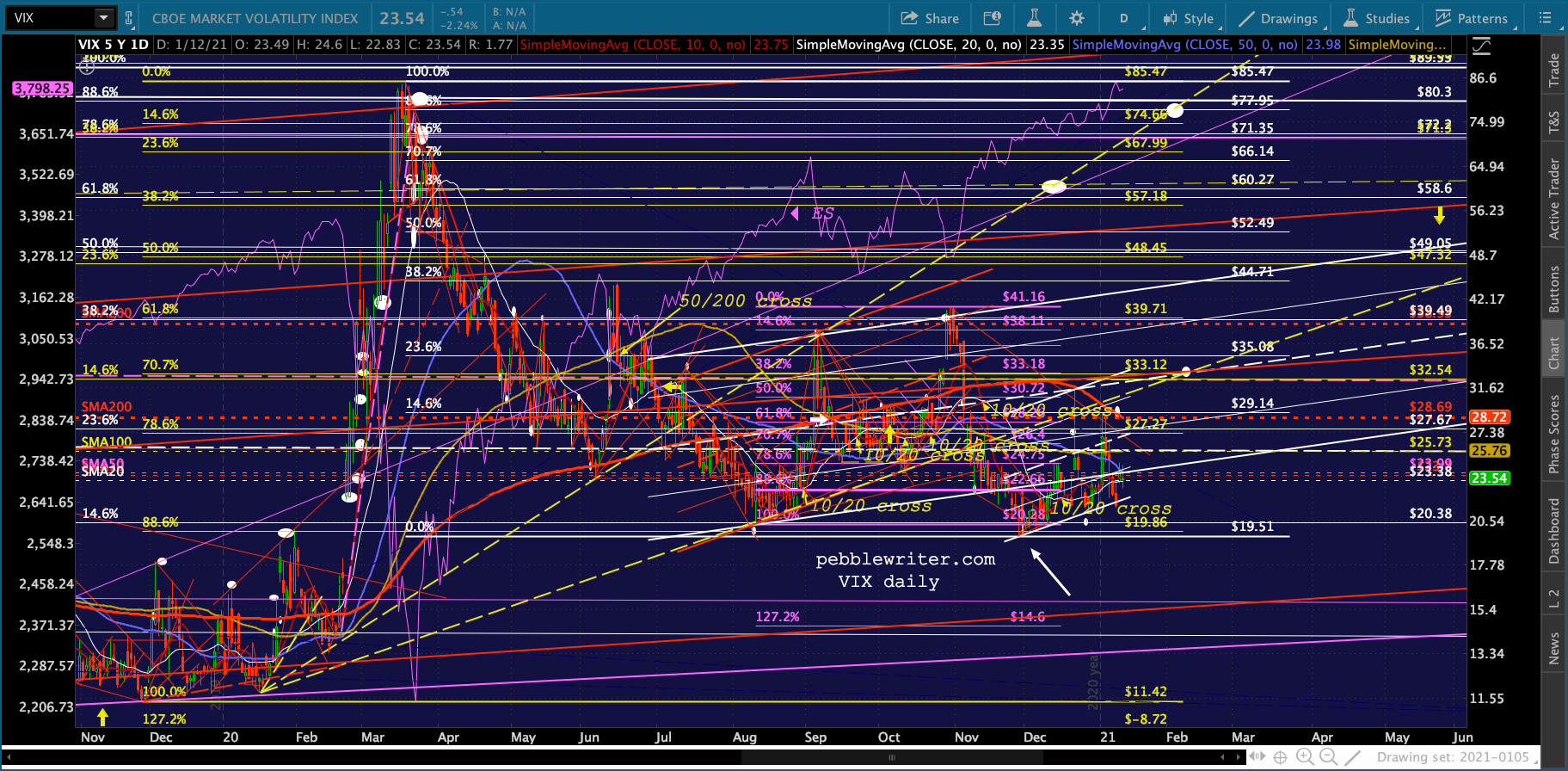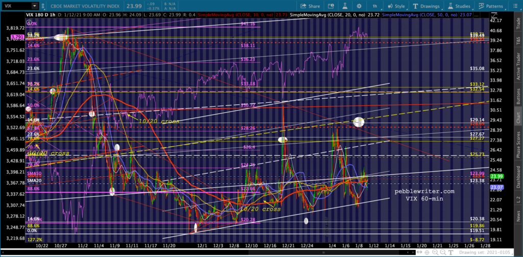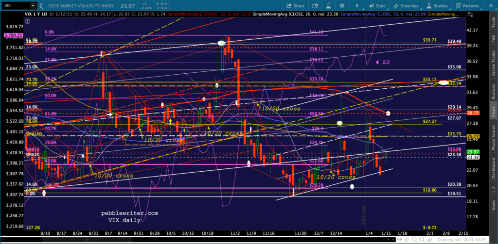 TNX broke out of its rising white channel and purple channel – but to tag a potential reversal at the purple .886 Fib (off the Mar 18, 2020 highs at 1.266.)