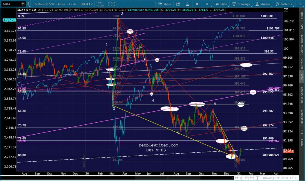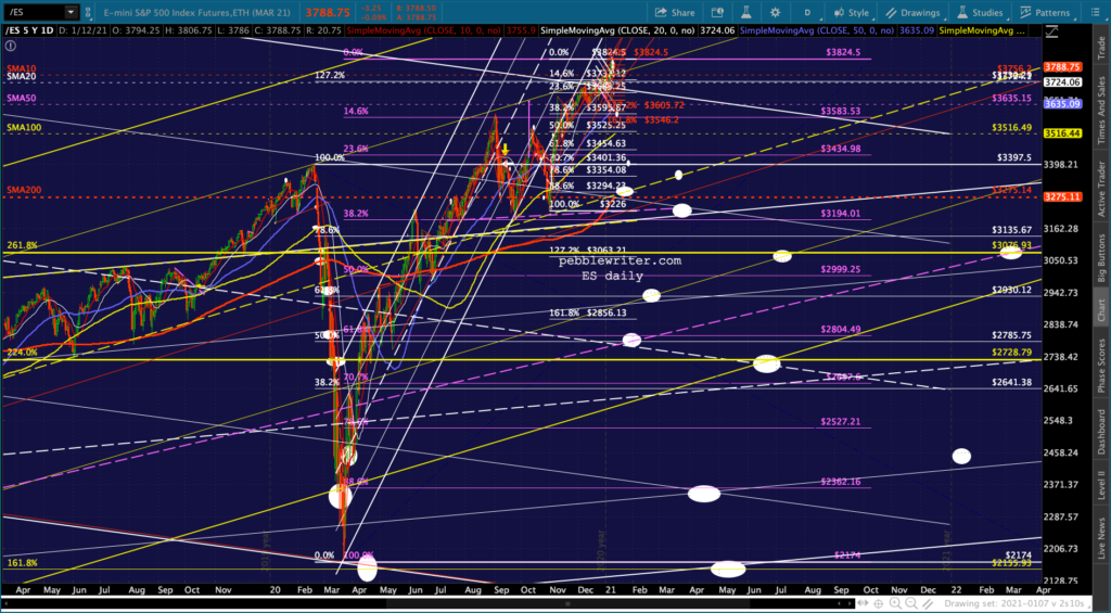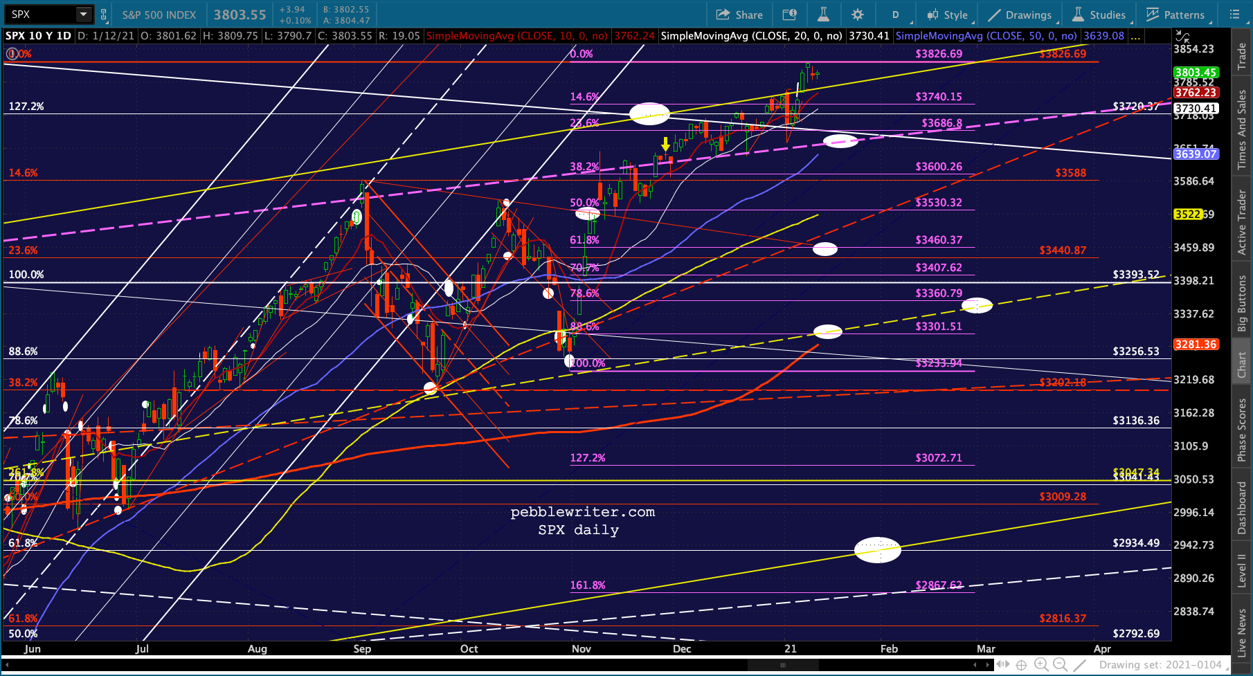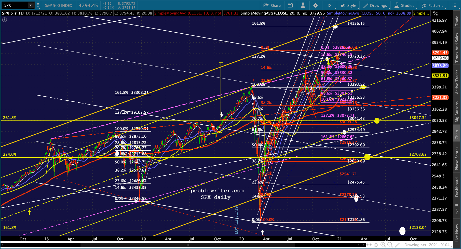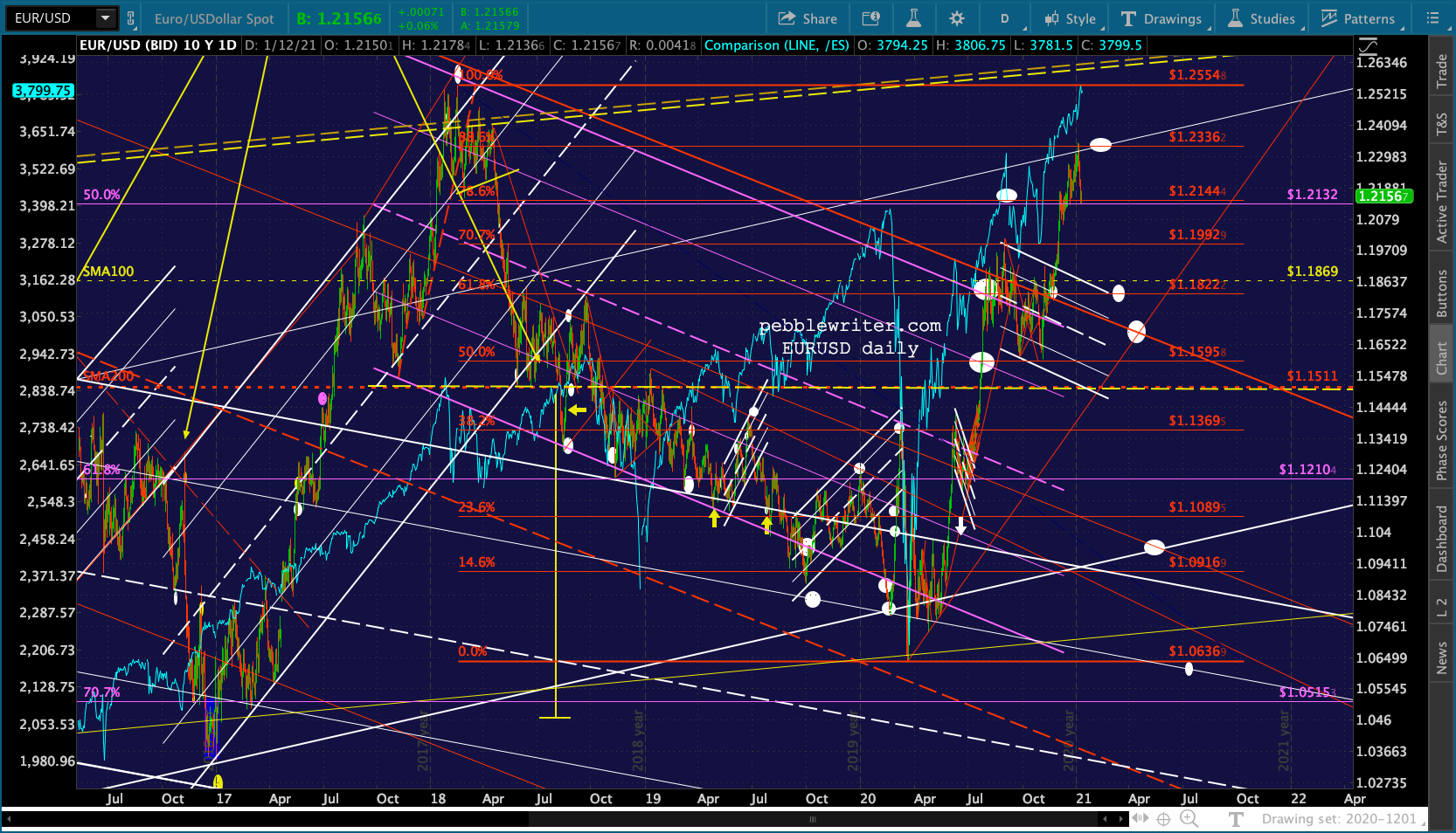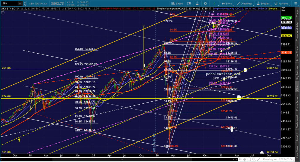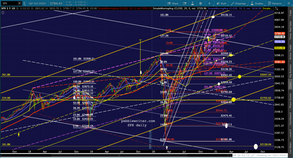The 1.618 at 4136.15 would have been a good target, but the optimal timing would have been when it intersected with the yellow channel top on Dec 22. We’re past that now.