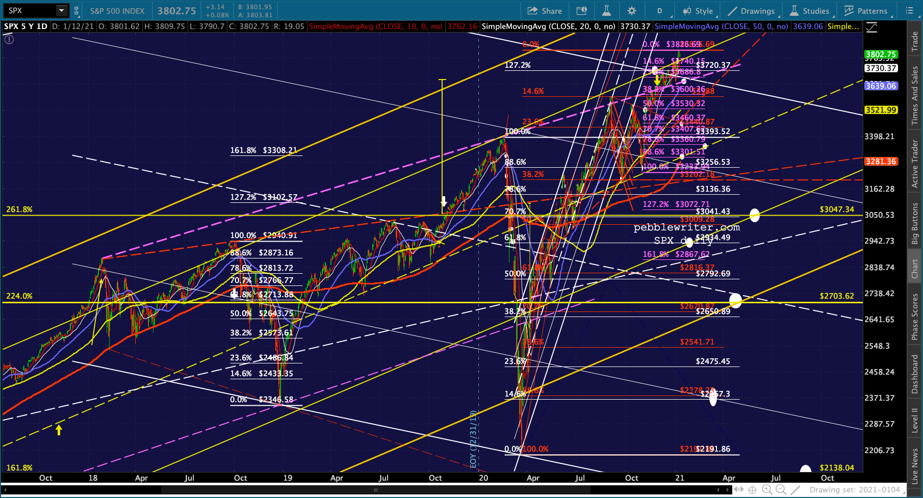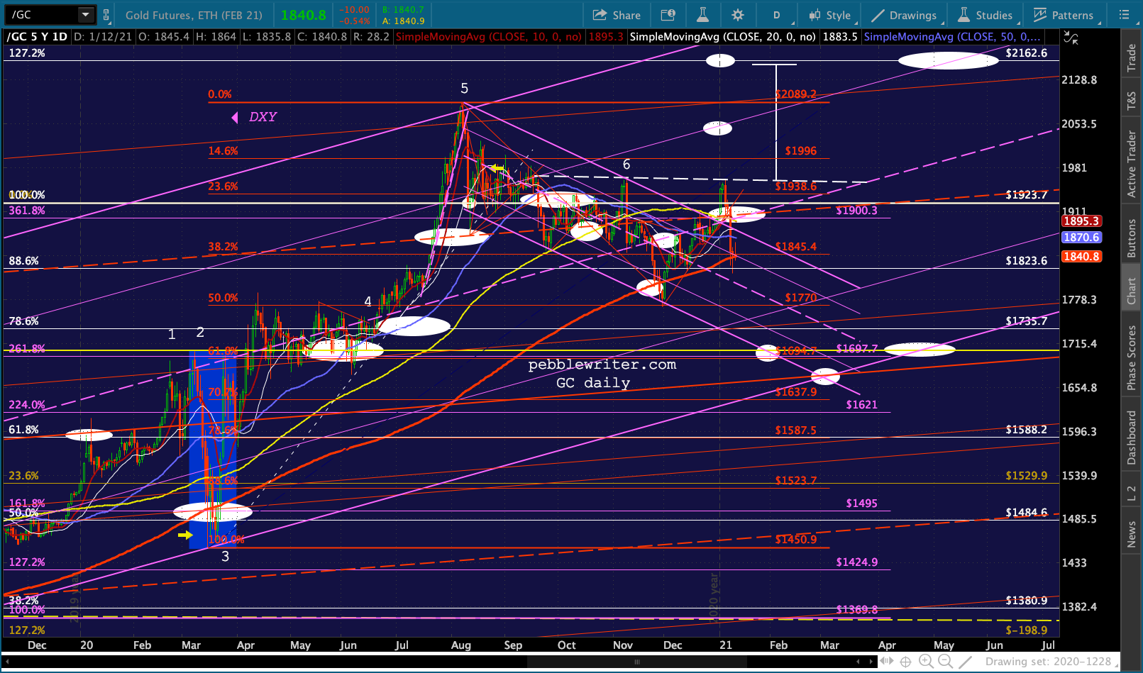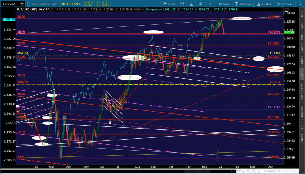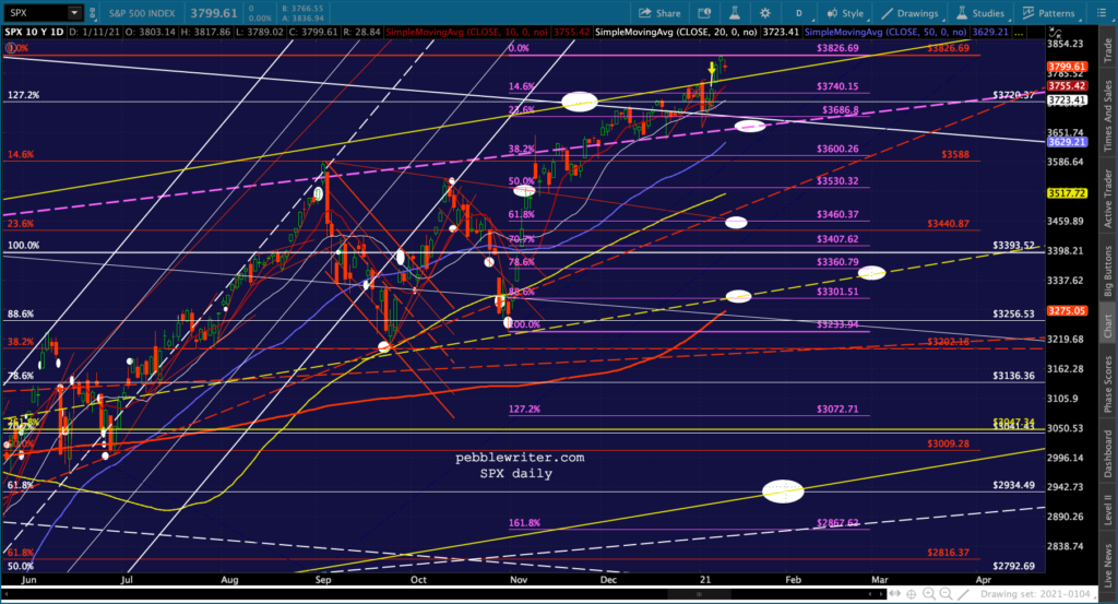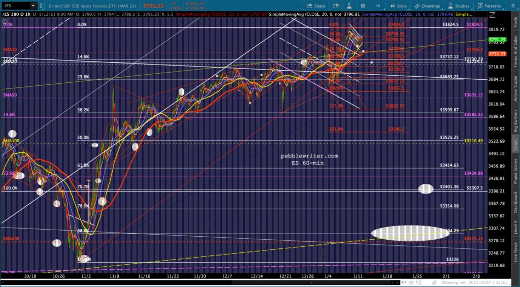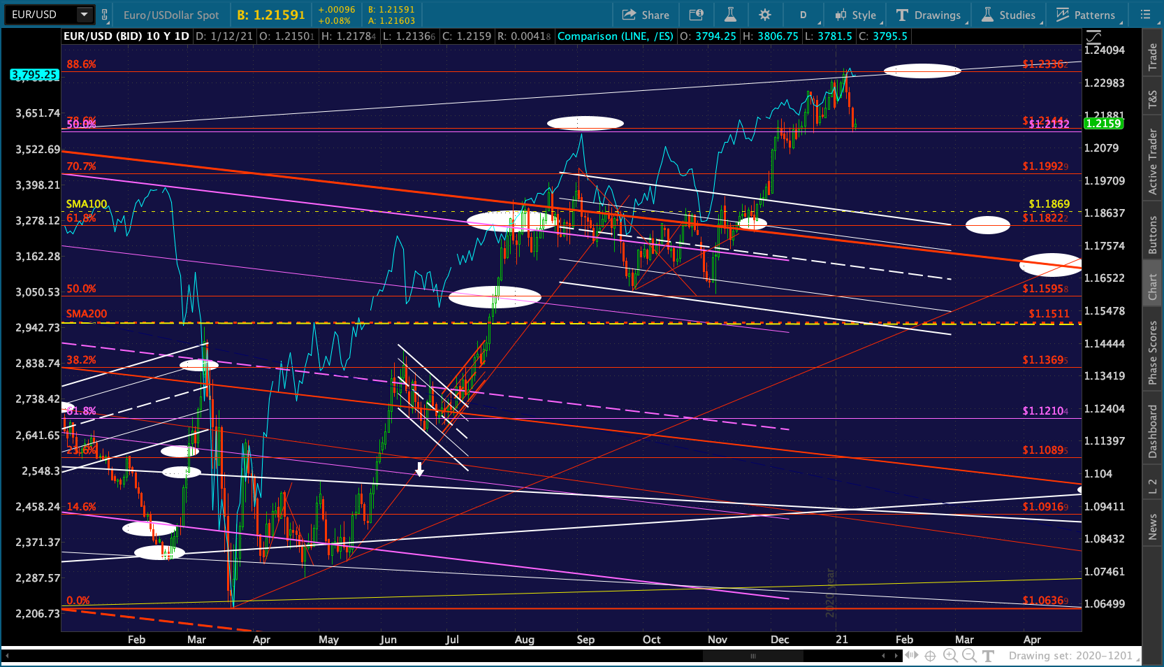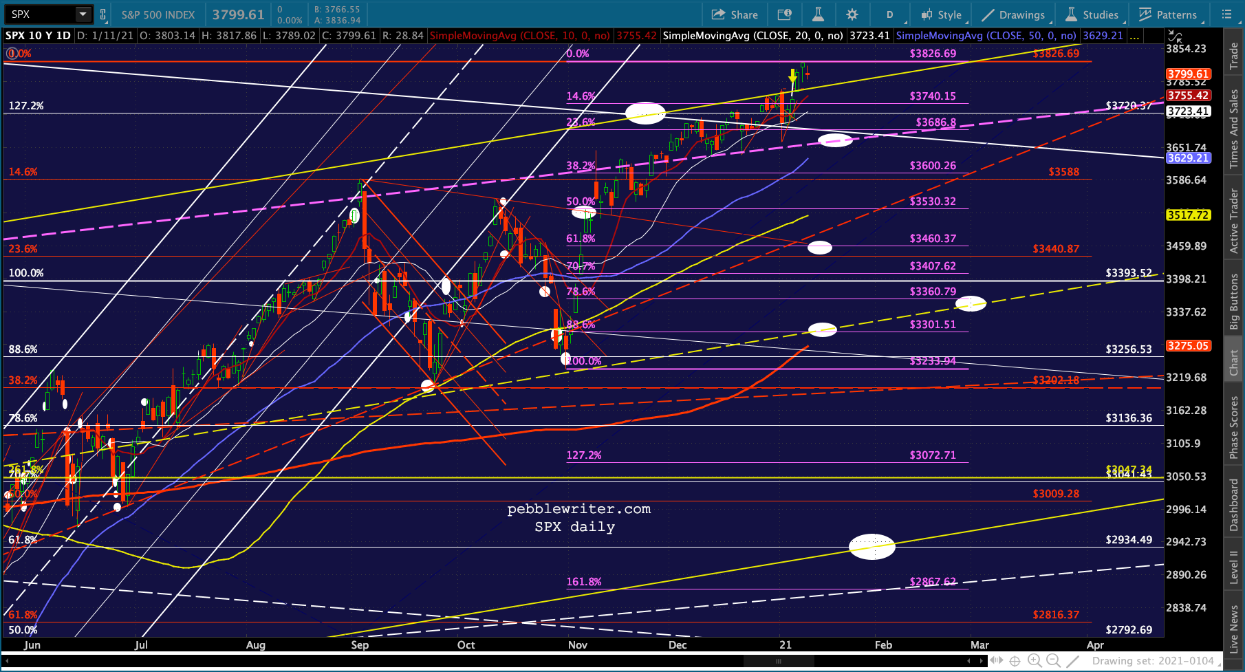 The 1.618 at 4136.15 would have been a good target, but the optimal timing would have been when it intersected with the yellow channel top on Dec 22. We’re past that now.