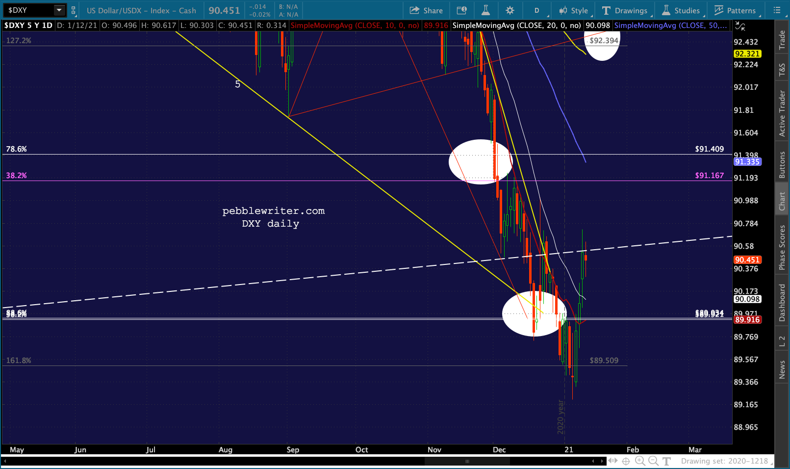 There were, however, fundamental reasons that a drop in DXY was beneficial: (1) it reflected the huge expansion of stimulus and QE; (2) it caused/facilitated the rapid rise in CL prices; (3) it made owning US assets cheaper for foreign buyers.